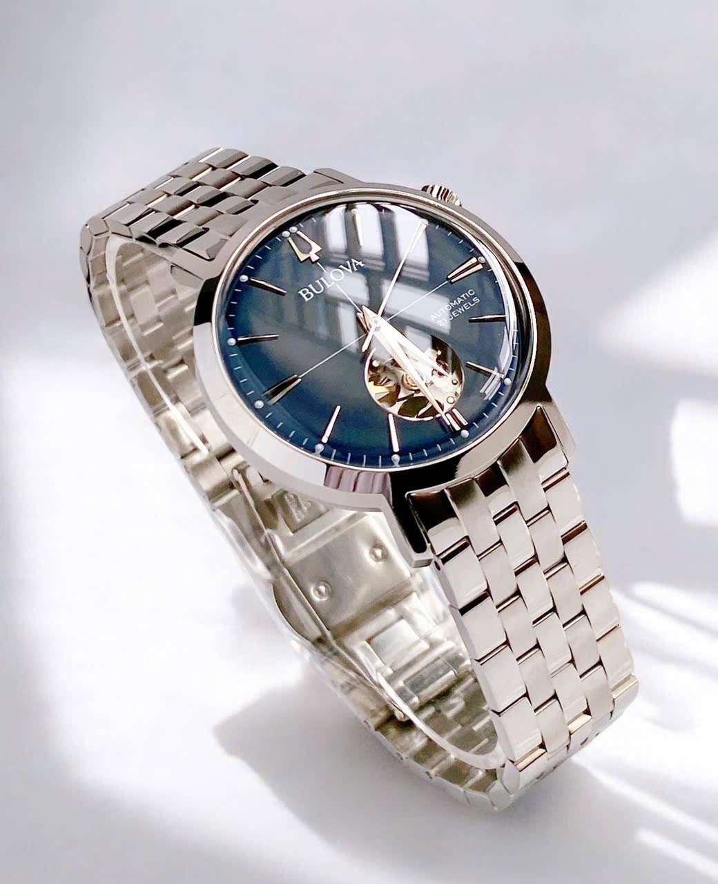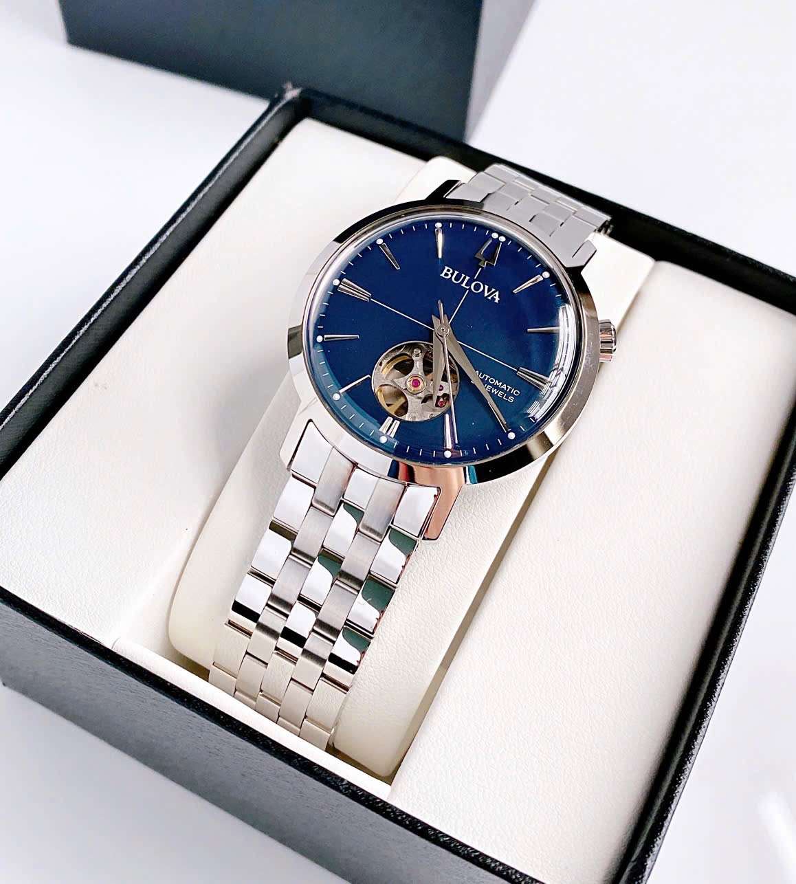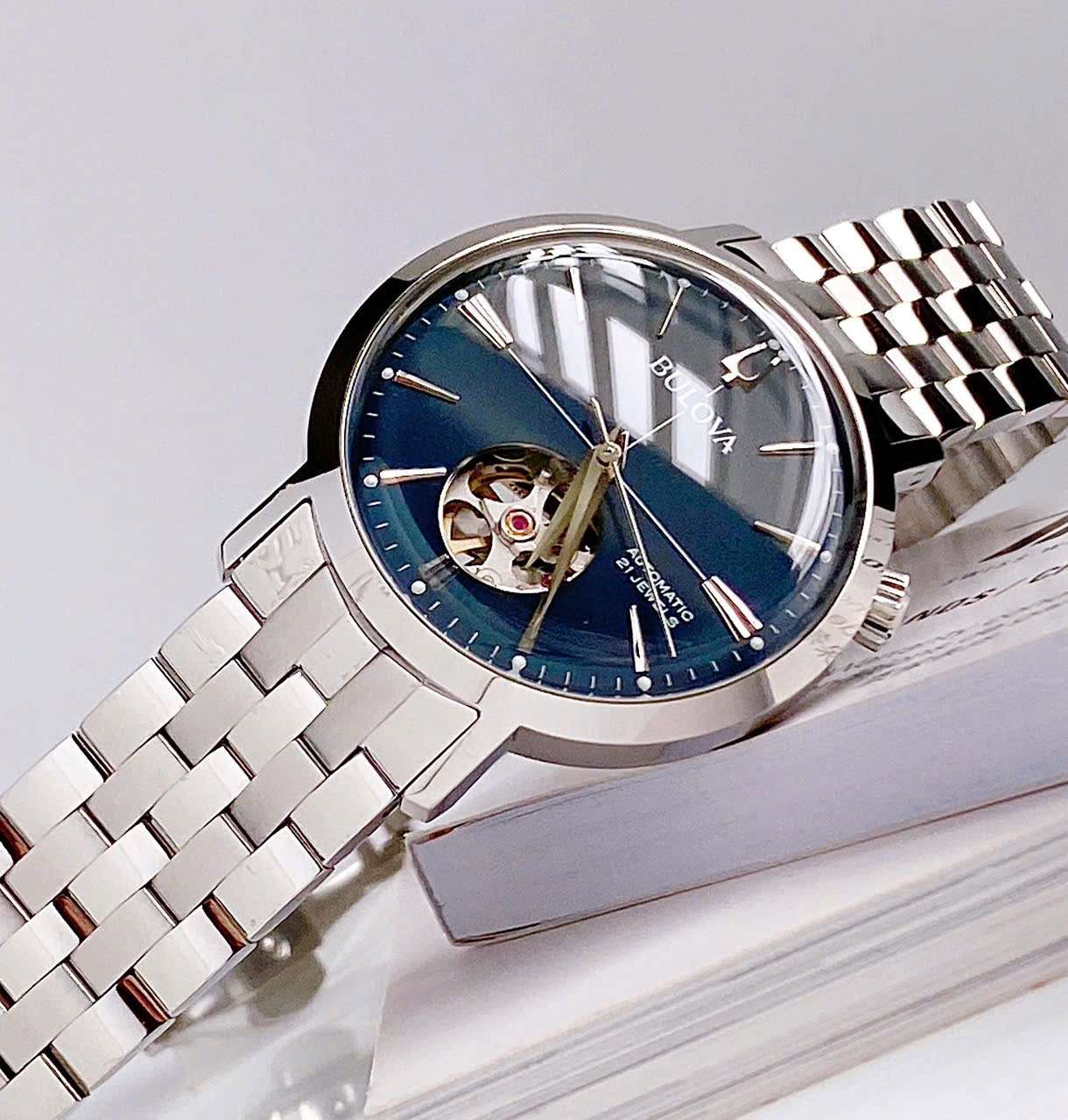 Đồng Hồ Nam Bulova 96A277 Automatic Size 39 Blue Open Heart Dresswatch