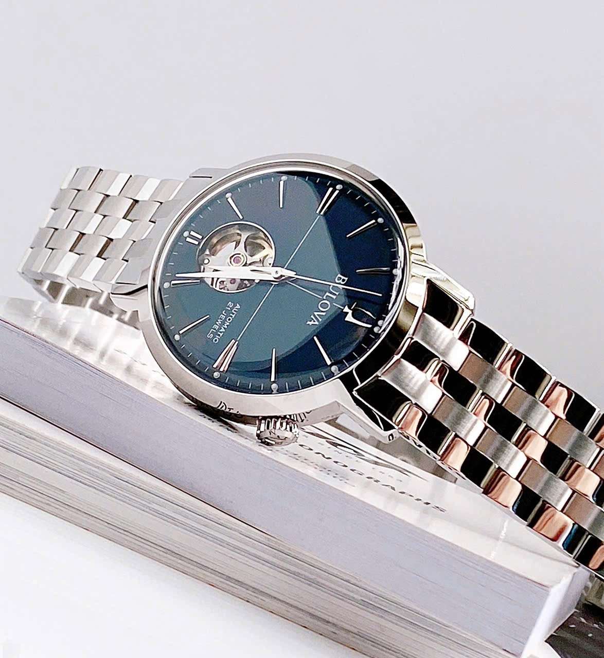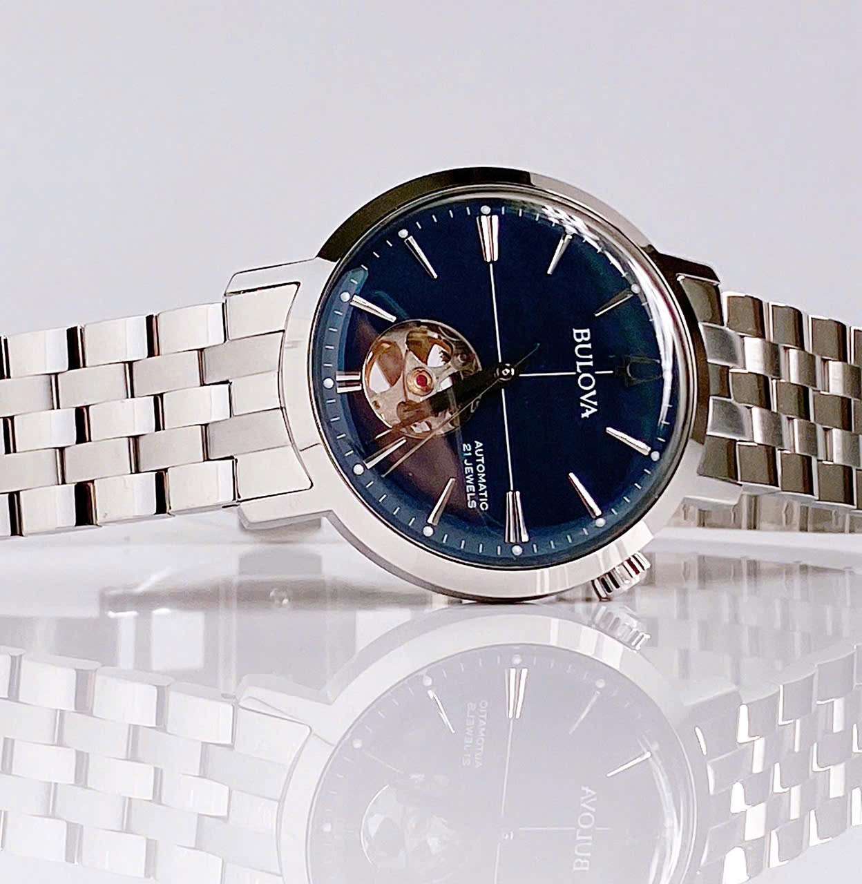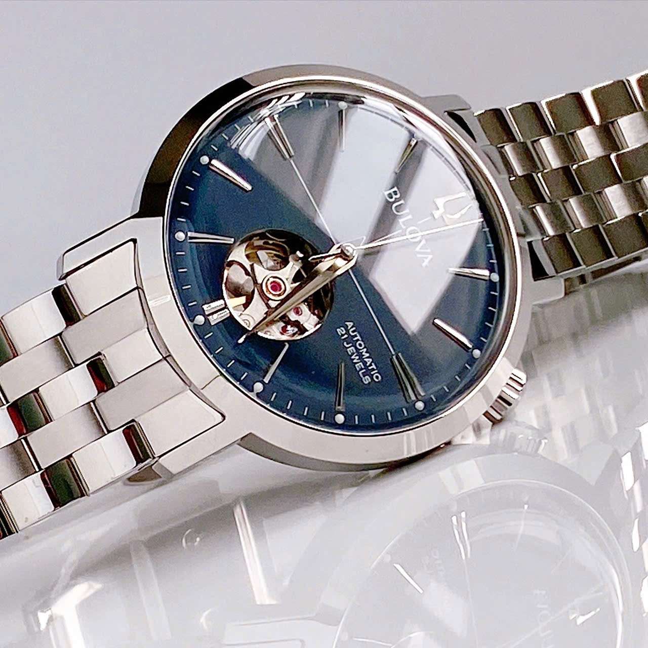 Đồng Hồ Nam Bulova 96A277 Automatic Size 39 Blue Open Heart Dresswatch
