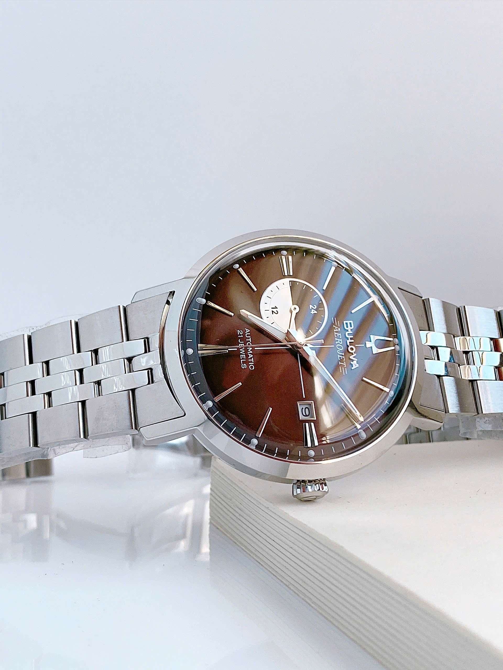 Đồng hồ Bulova Automatic Aerojet 96B375 là một mẫu đồng hồ với thiết kế sang trọng và tinh tế, phù hợp với những người yêu thích sự hiện đại và phong cách.