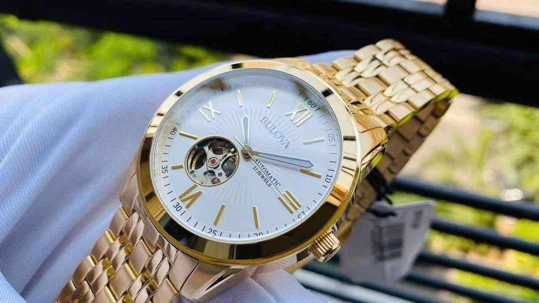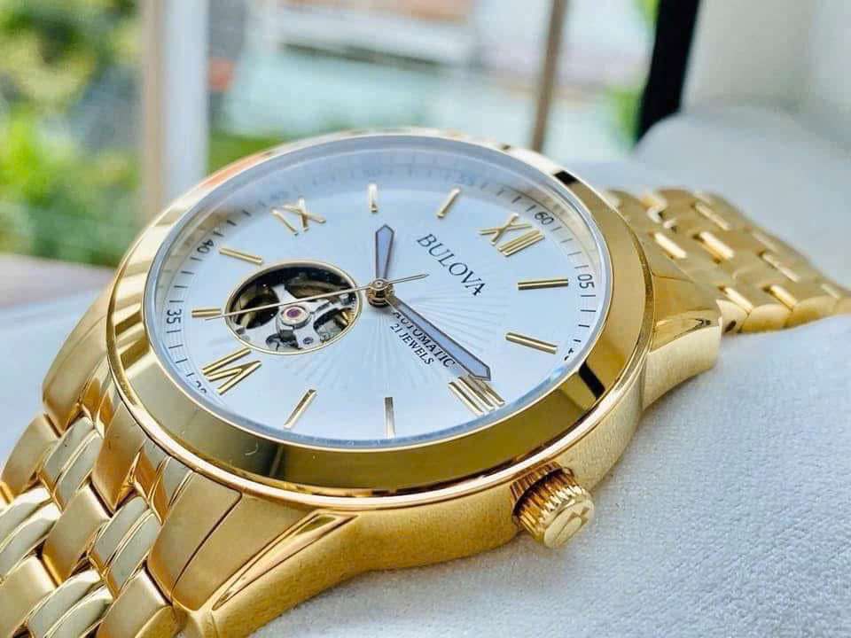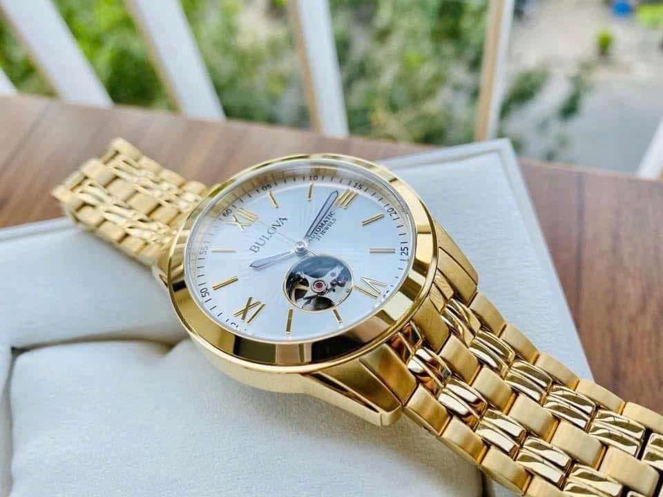 Đồng Hồ Nam Bulova 97A130 Automatic Size 42 Open Heart Gold Case