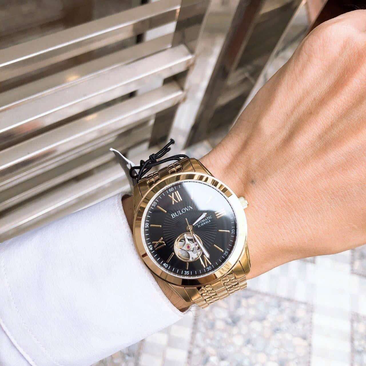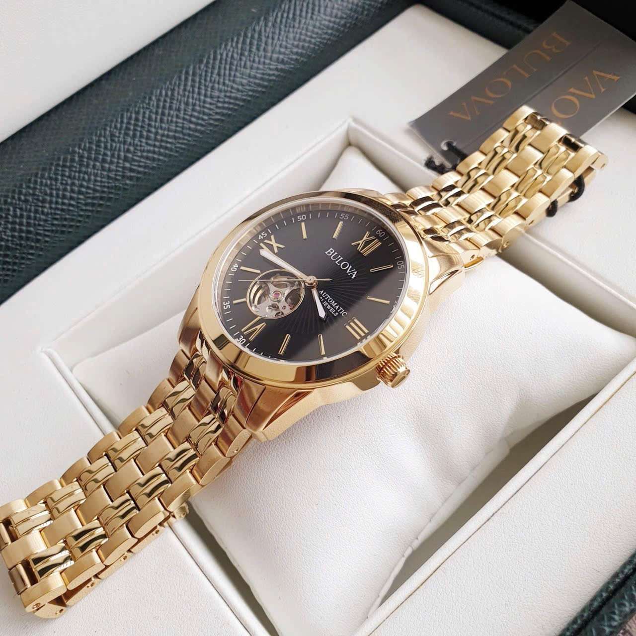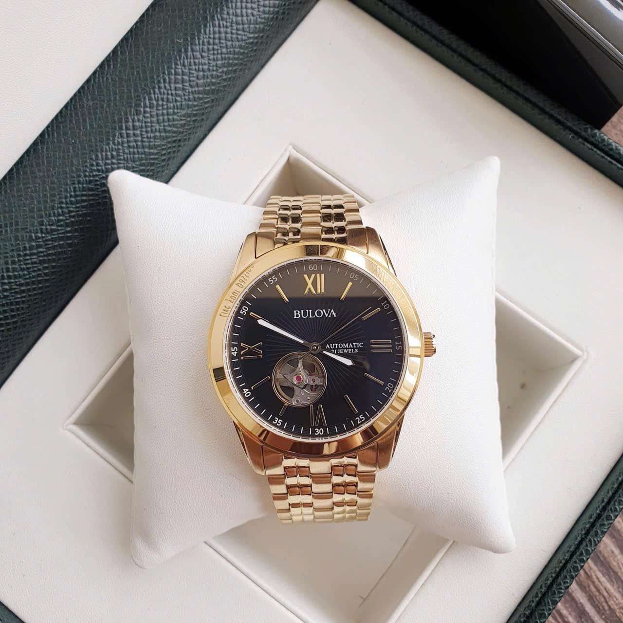 Đồng Hồ Nam Bulova 97A132 Automatic Size 42 Gold Tone Open Heart