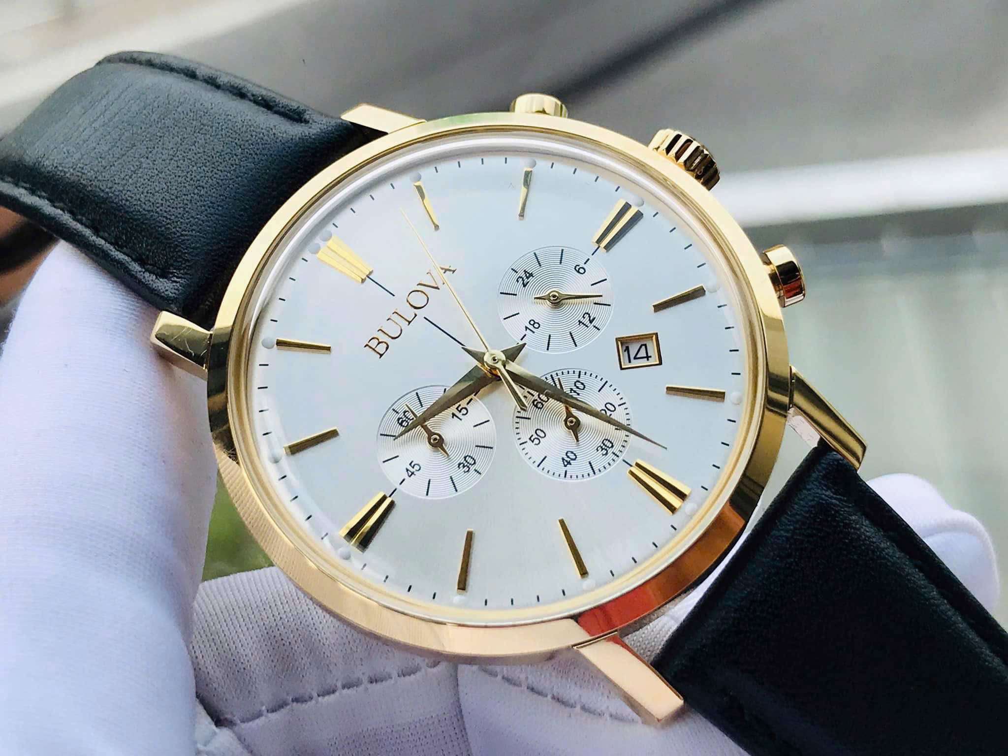 Đồng Hồ Nam Bulova 97B155 Quartz Size 40 Chronograph Gold Case