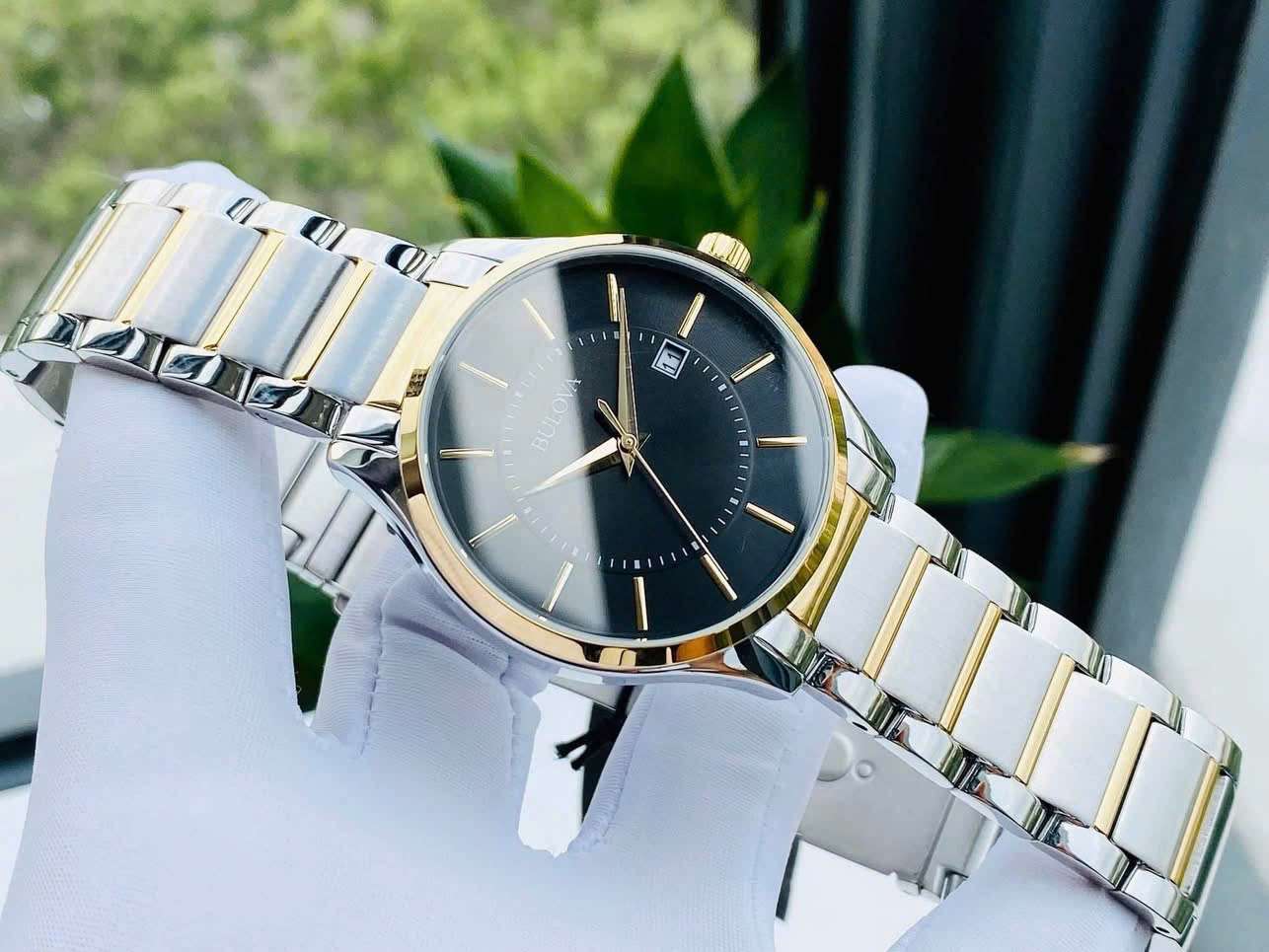 Đồng Hồ Nam Bulova 98B290 Quartz Size 40 Black Dial Demi Gold