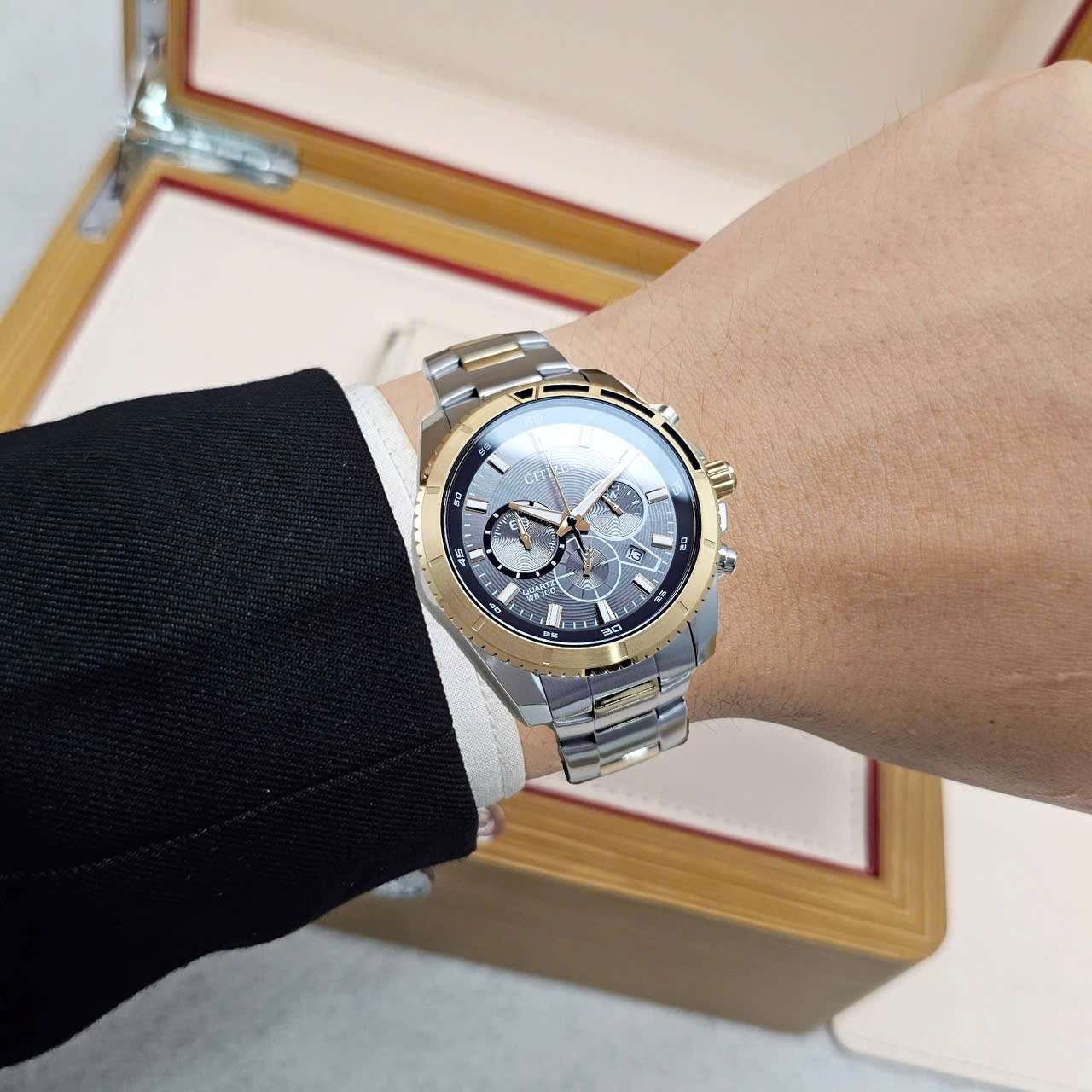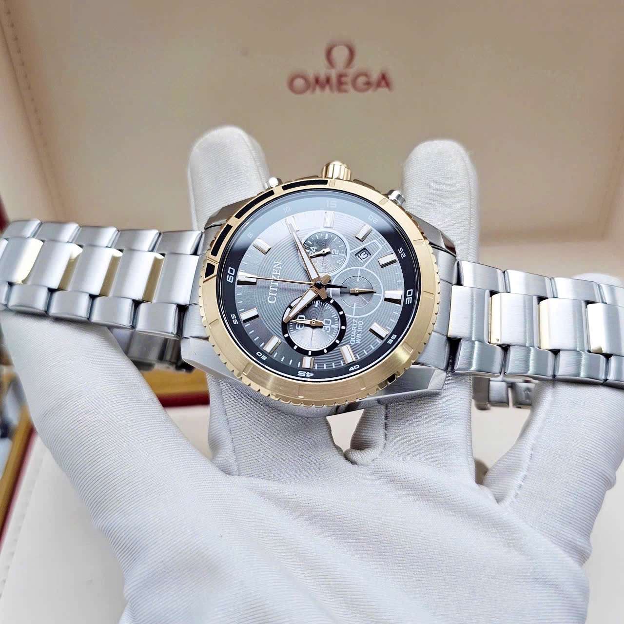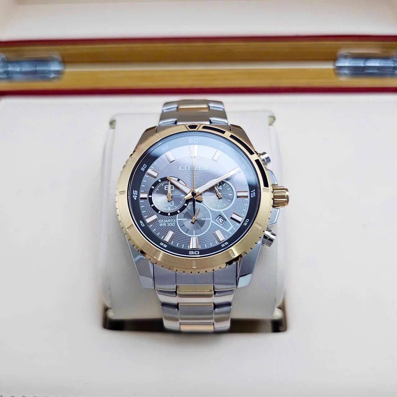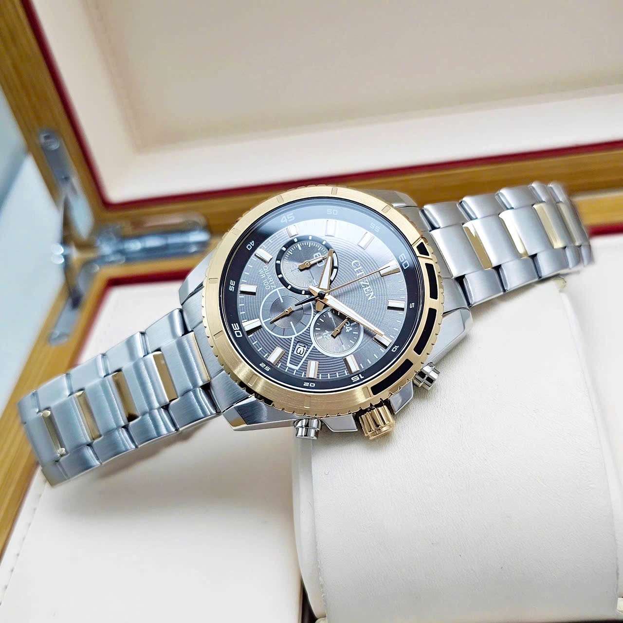 ⌚ Đồng Hồ Nam Citizen Quartz Chronograph AN8204-59H  Dây Thép Demi Vàng Hồng Mặt Xám
