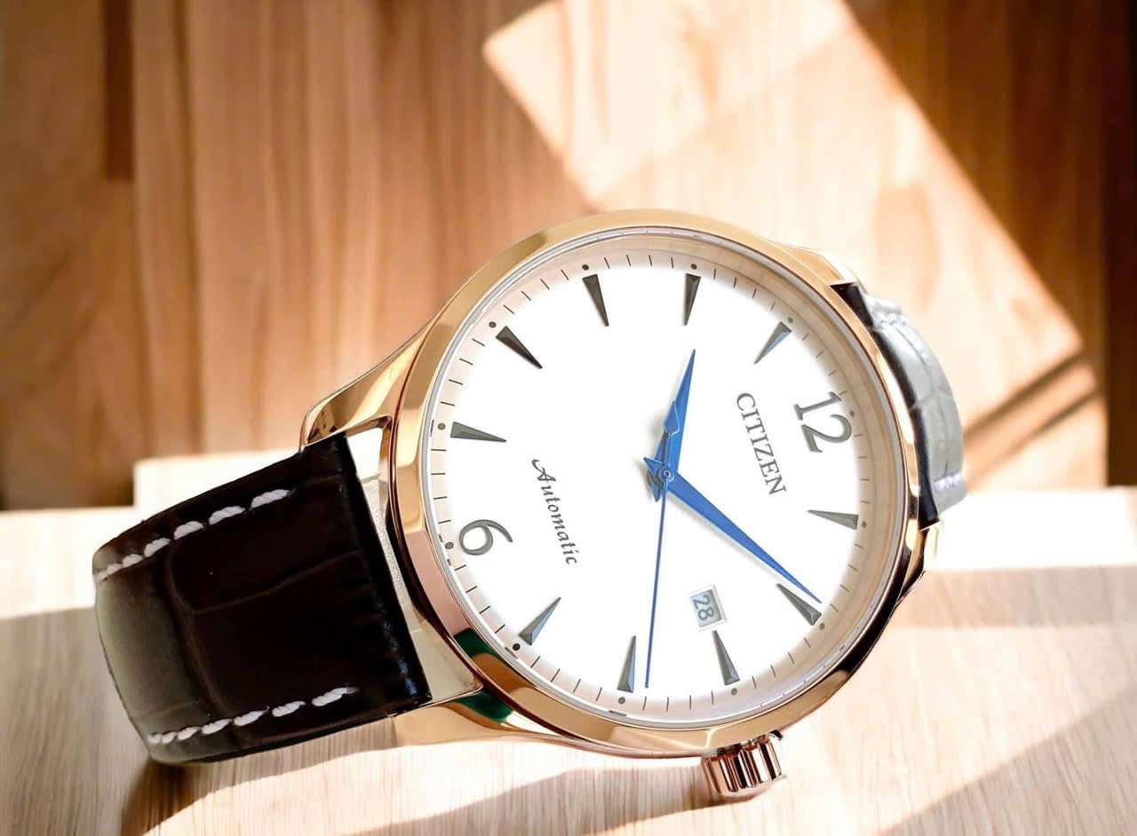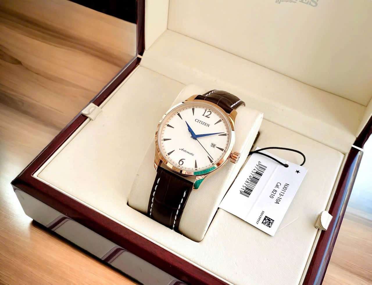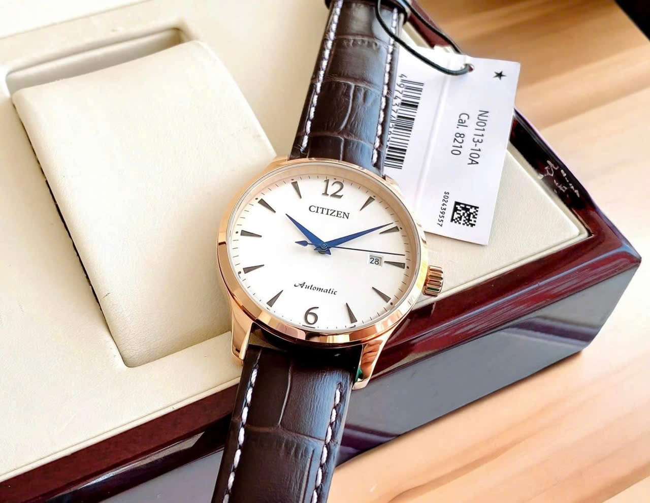 ĐỒNG HỒ NAM CHÍNH HÃNG Citizen NJ0113-10A Automatic White Dial Blue Hands Brown Leather For Men