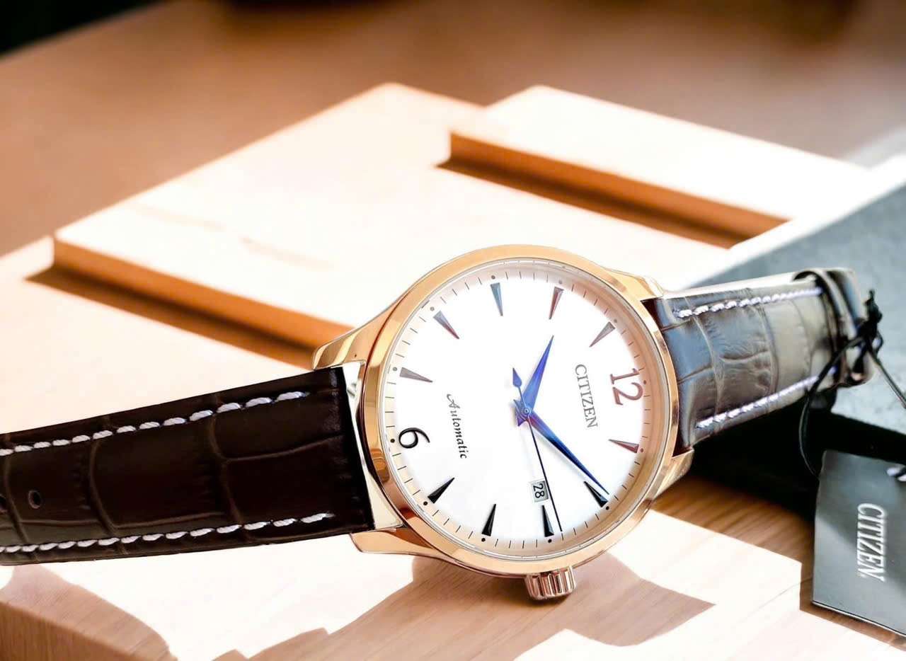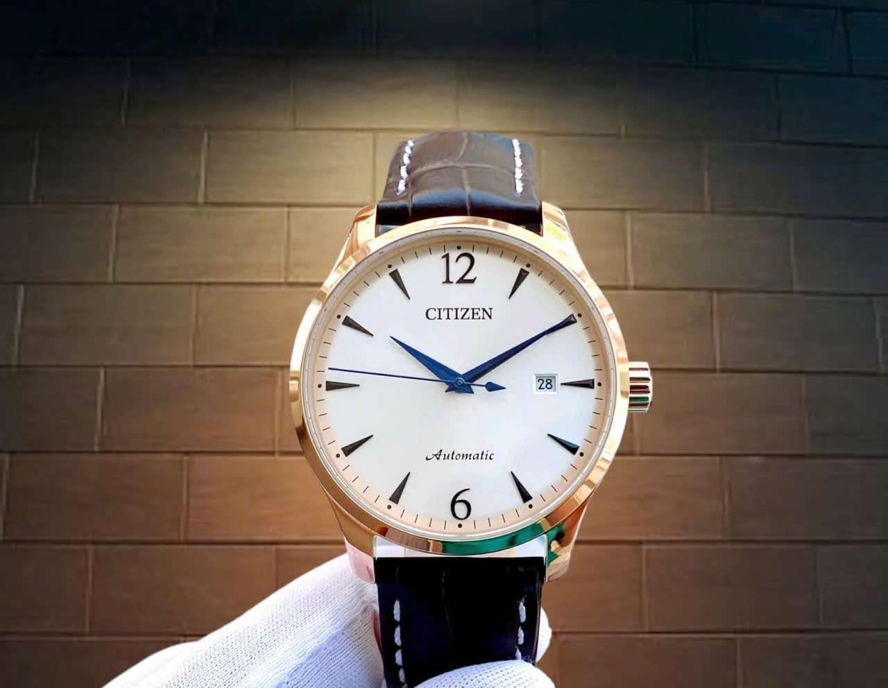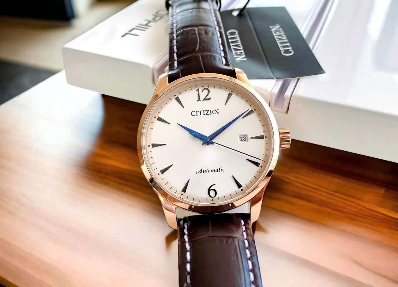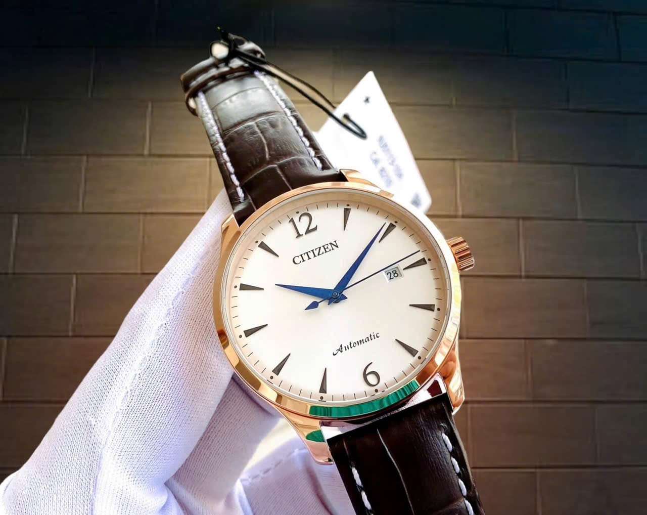 ĐỒNG HỒ NAM CHÍNH HÃNG Citizen NJ0113-10A Automatic White Dial Blue Hands Brown Leather For Men