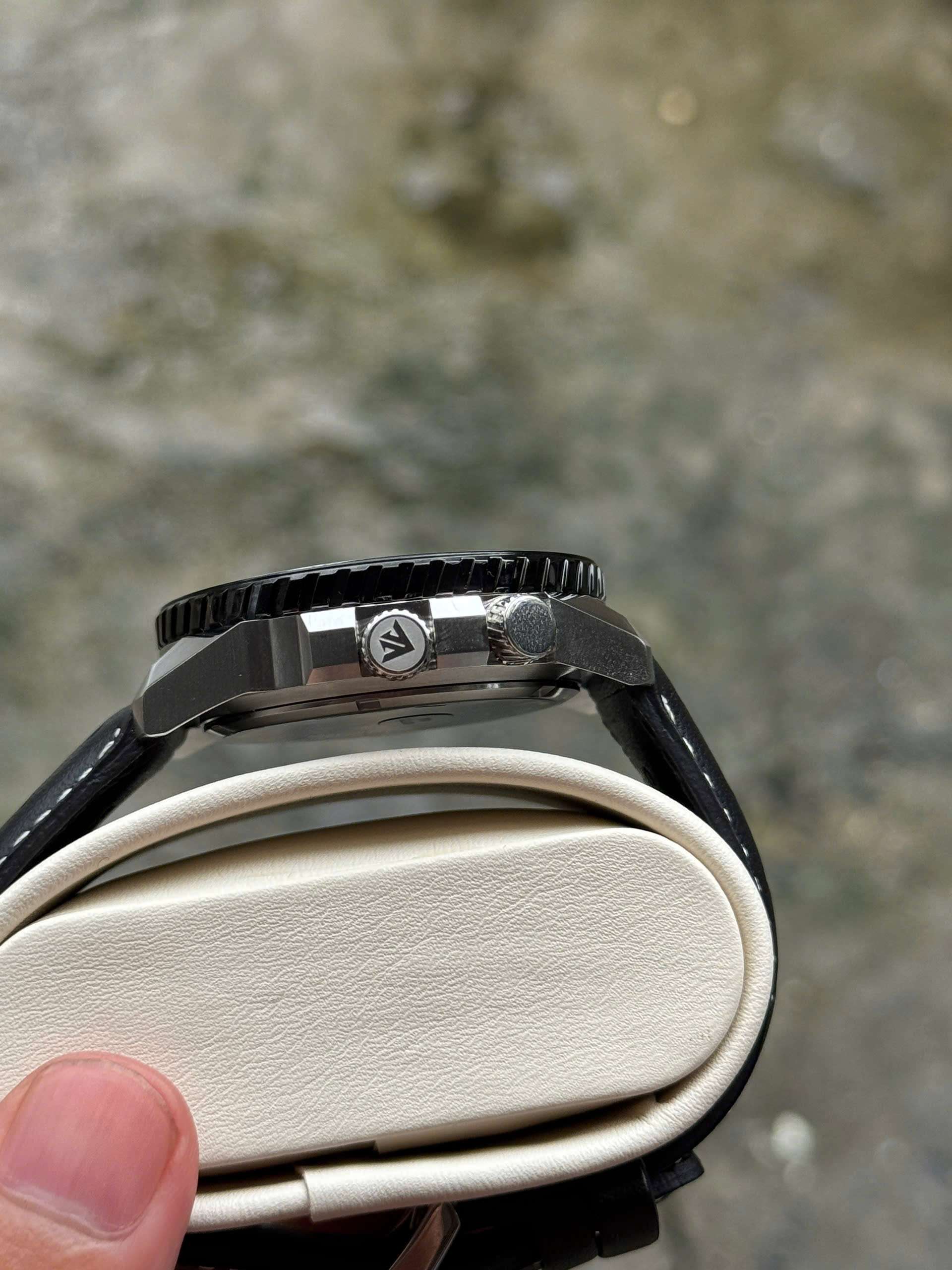 Khi tắm biển, cát và nước muối sẽ chui vào các khe gioăng ở kính, đắy và đặc biệt là núm. Khi nước biển khô đi ,muối và cát biển còn đọng lại trong núm làm cộm gioăng dẫn đến tạo khe hở lớn cho nước vào đồng hồ. Vì vậy, không nên đeo đồng hồ khi tắm biển, nếu có đeo thì phải tráng rửa lại bằng nước ấm với xà phòng.