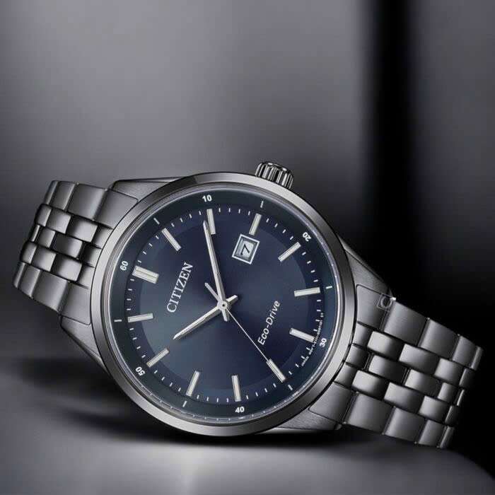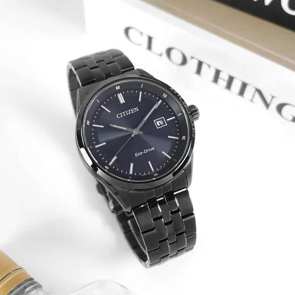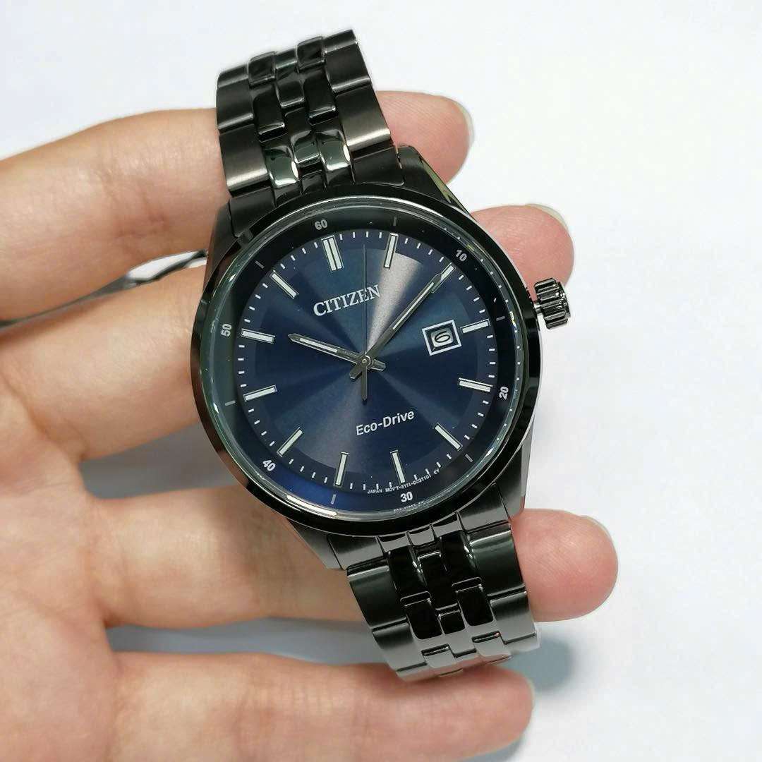 Đồng Hồ Nam Citizen BM7567-50L Eco Drive Size 41 Blue Dial Dây Thép Đen