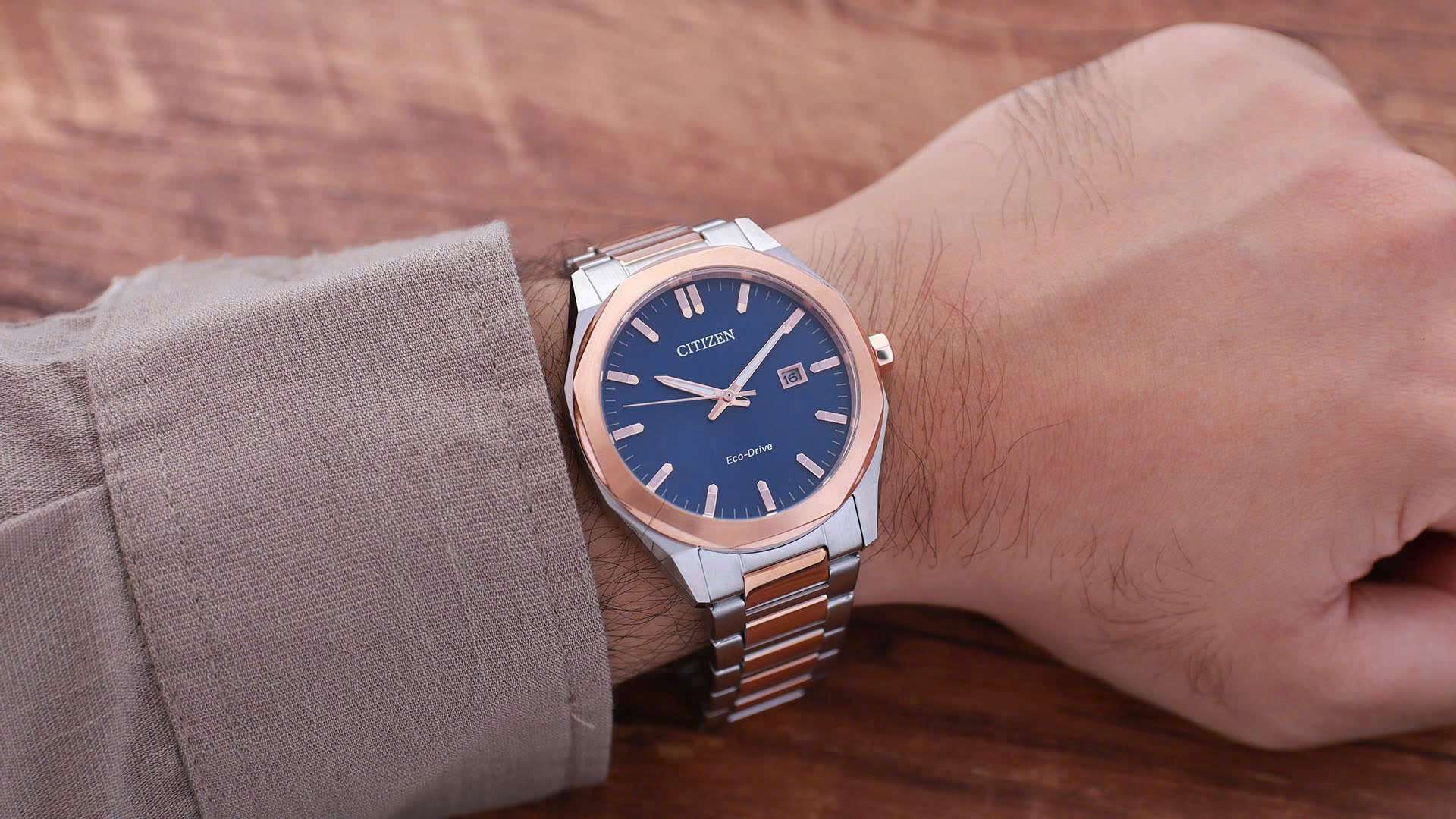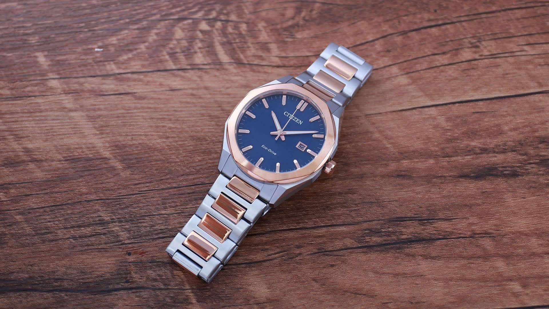 Đồng Hồ Nam Citizen BM7606-84L Quartz Size 41 Blue Dial Demi Rose Gold