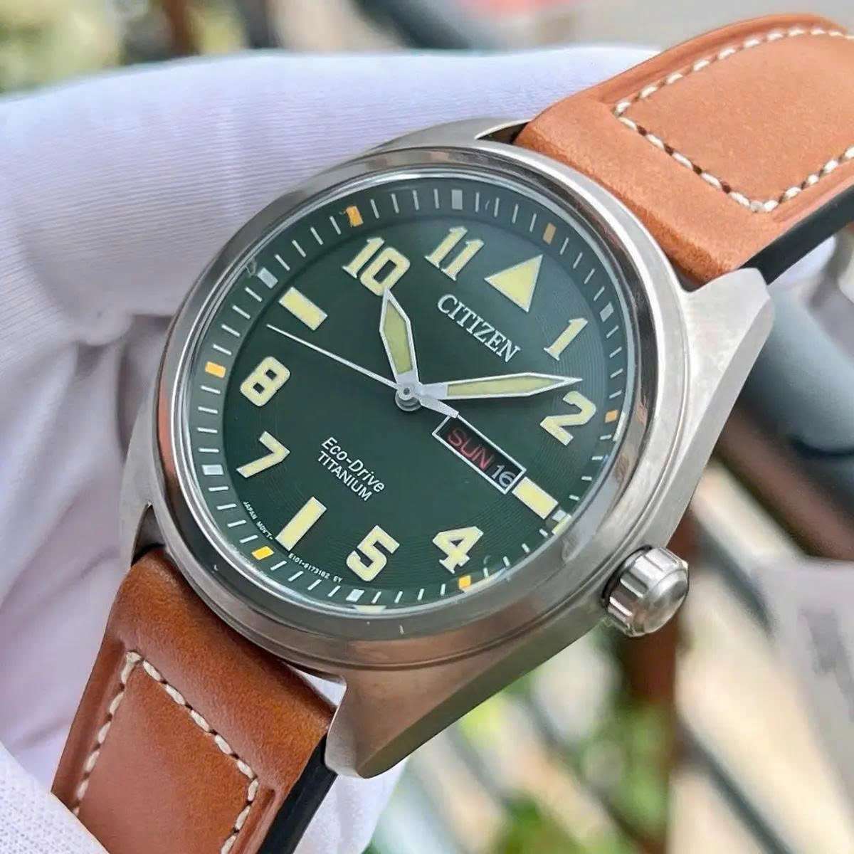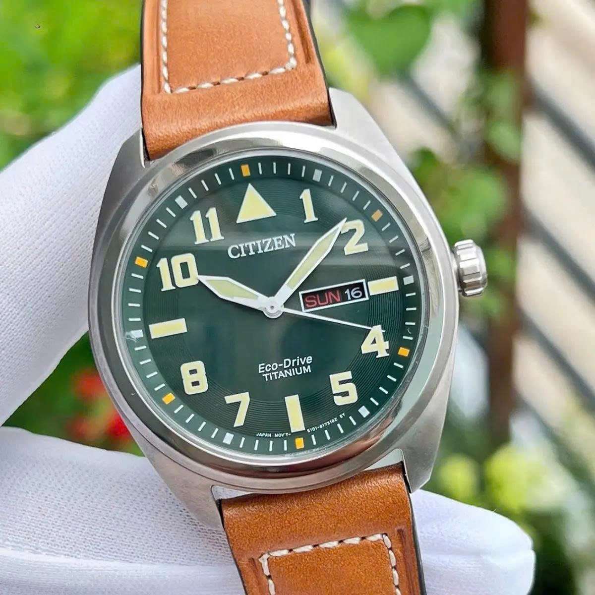 Đồng Hồ Nam Citizen BM8560-02X Eco-Drive Size 42 Green Dial Vỏ Titanium