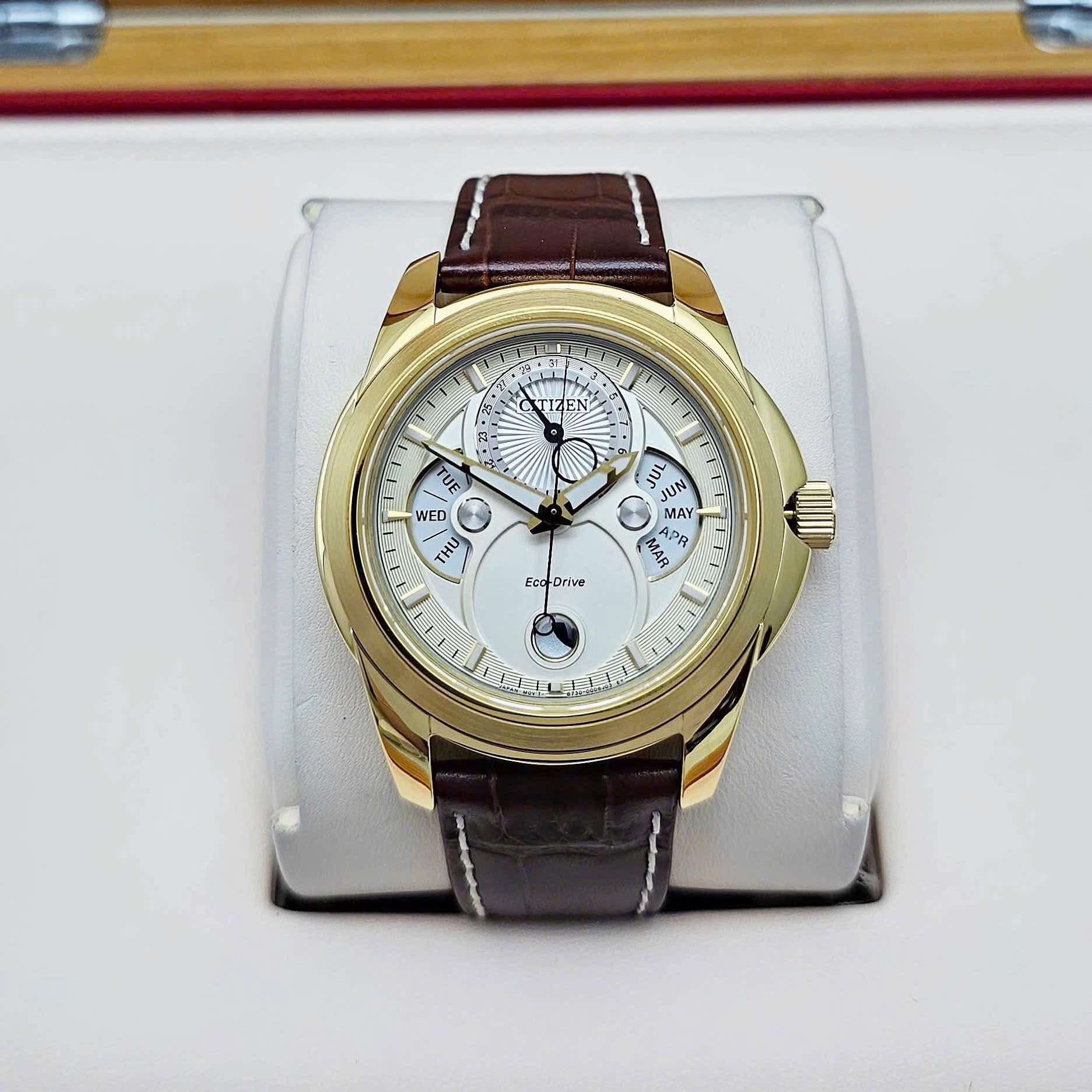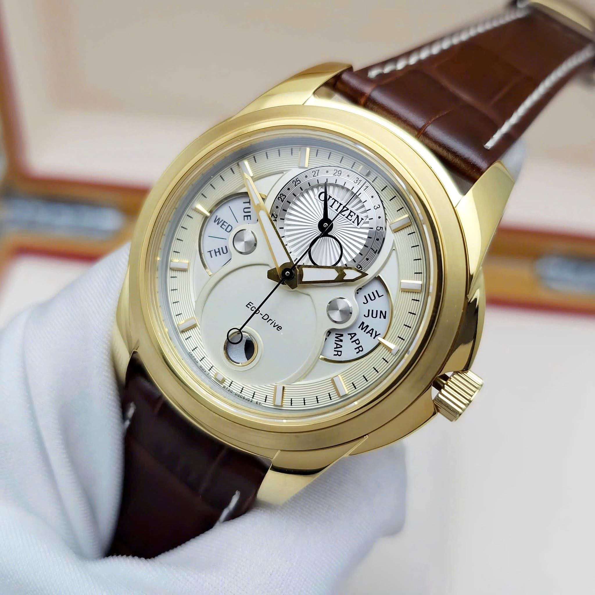 Đồng Hồ Nam Citizen BU0082-06P Eco-Drive Size 41.8 Calendrier Moon Phase Gold Dây Da