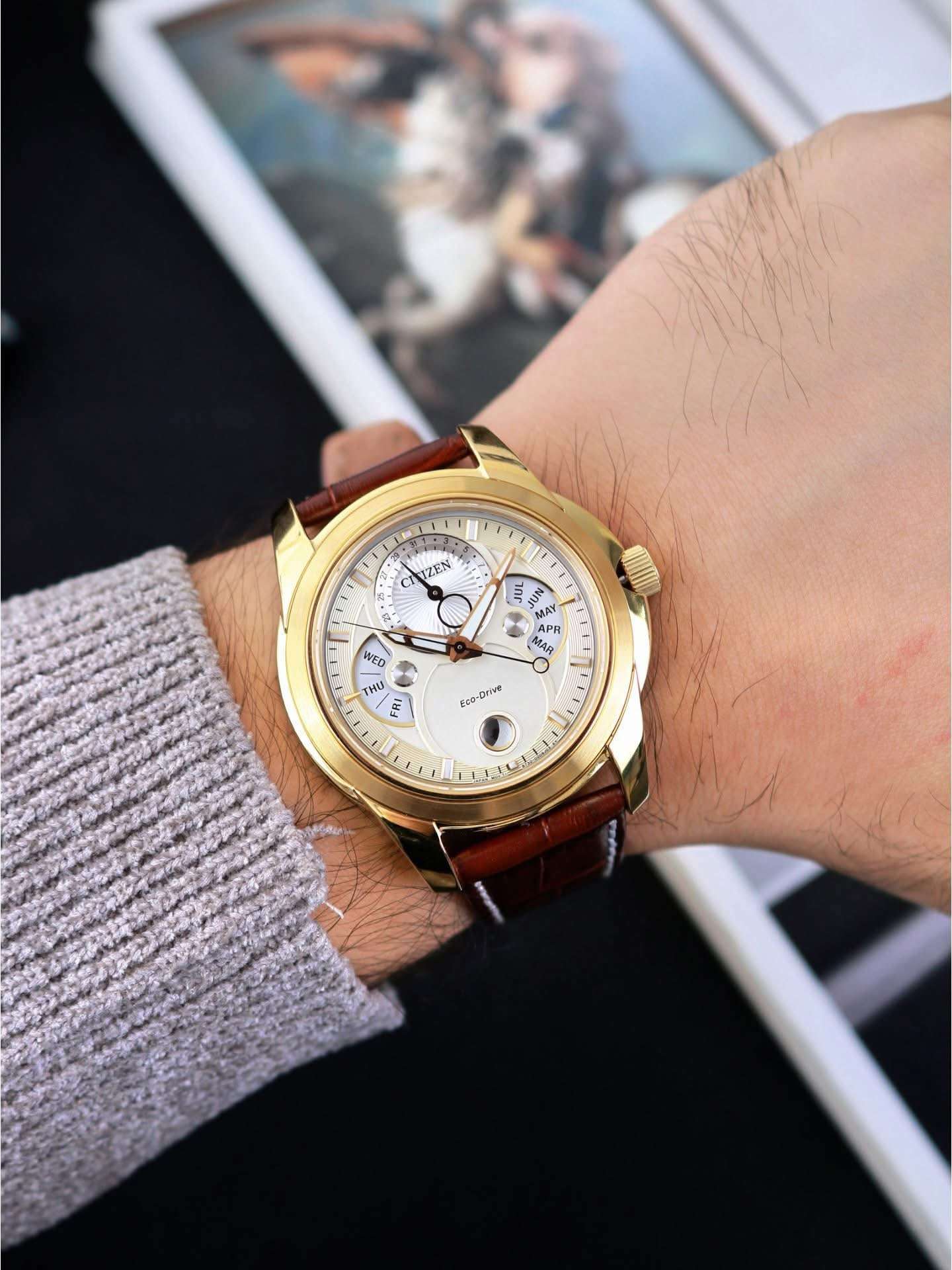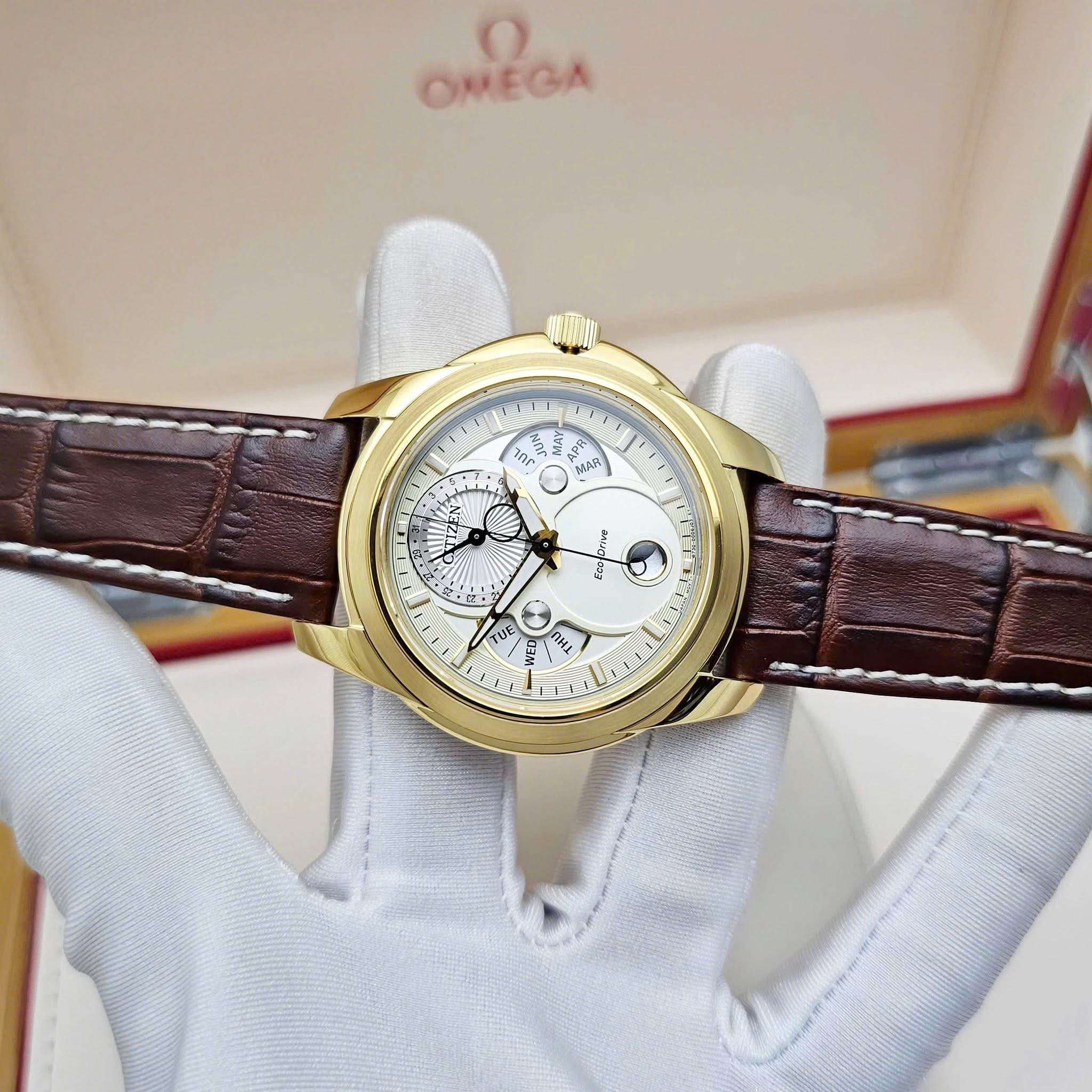 Đồng hồ nam Citizen Quartz Eco-Drive Calendrier Moon Phase Gold là một mẫu đồng hồ sang trọng và chức năng, phù hợp với những người đàn ông yêu thích phong cách hiện đại và tinh tế.