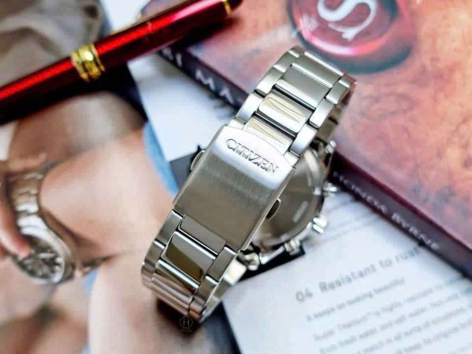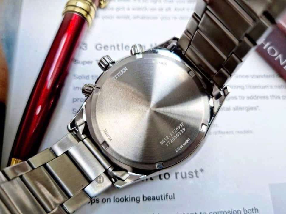 - Máy Eco-Drive chronograph, chạy bằng năng lượng ánh sáng, không cần thay pin