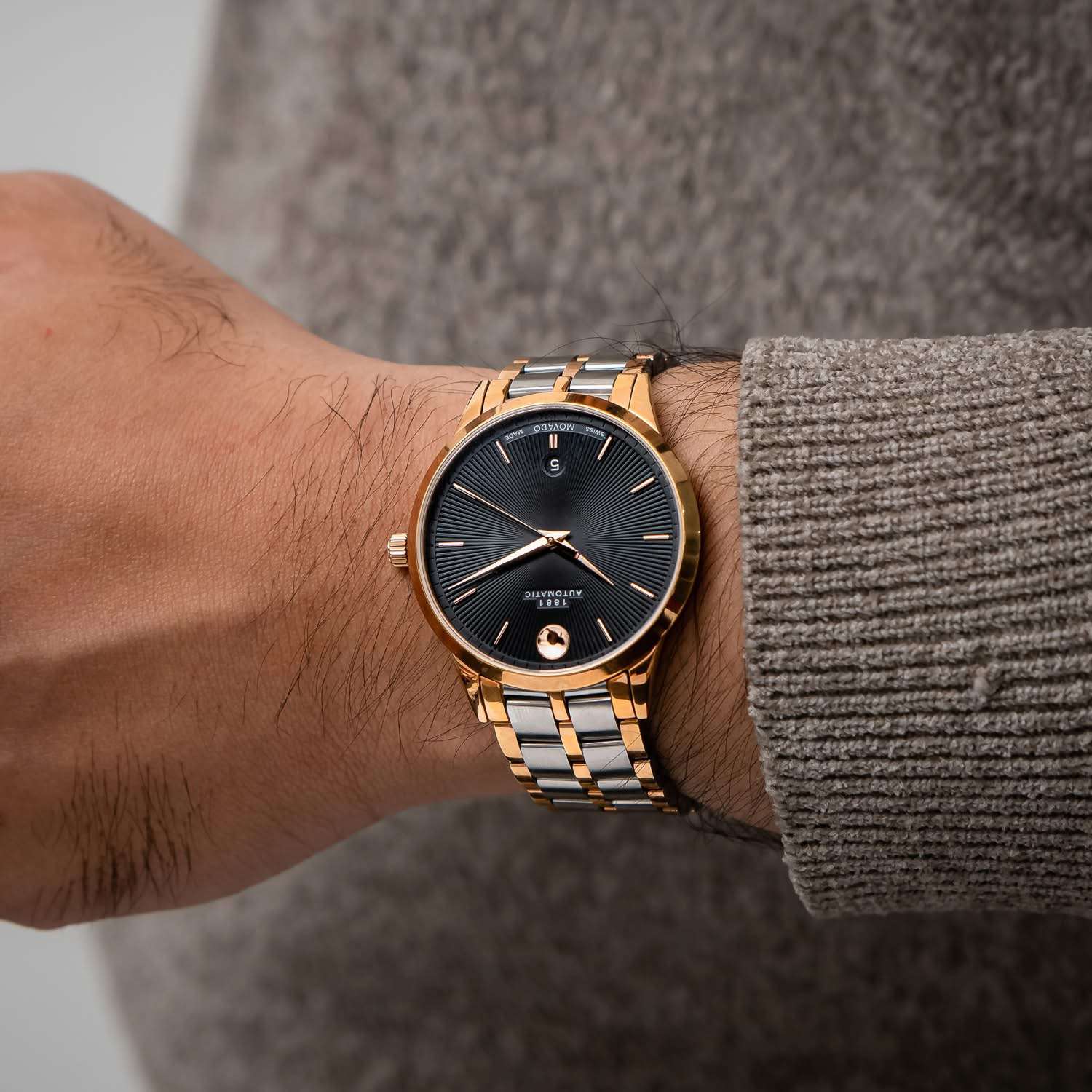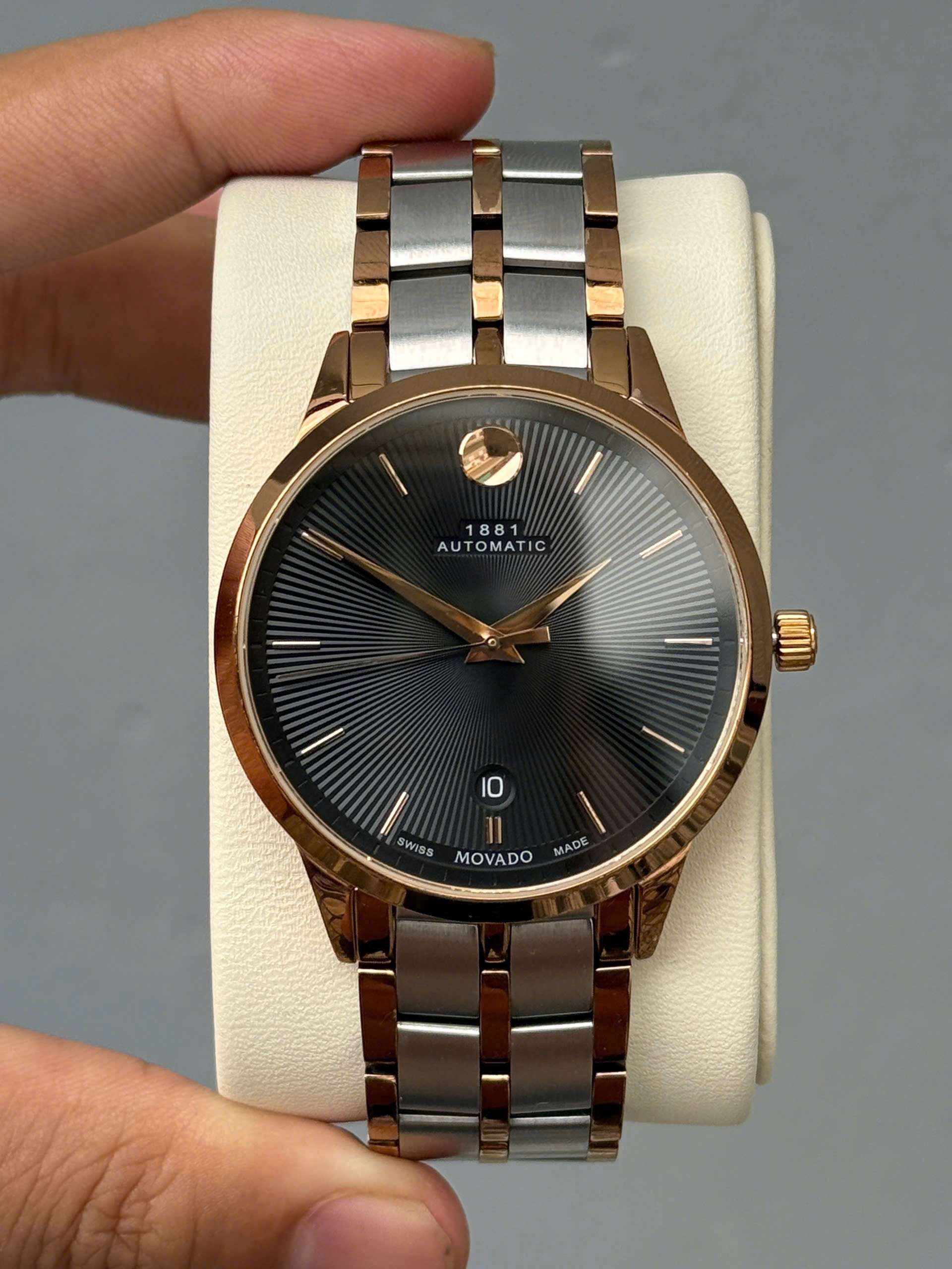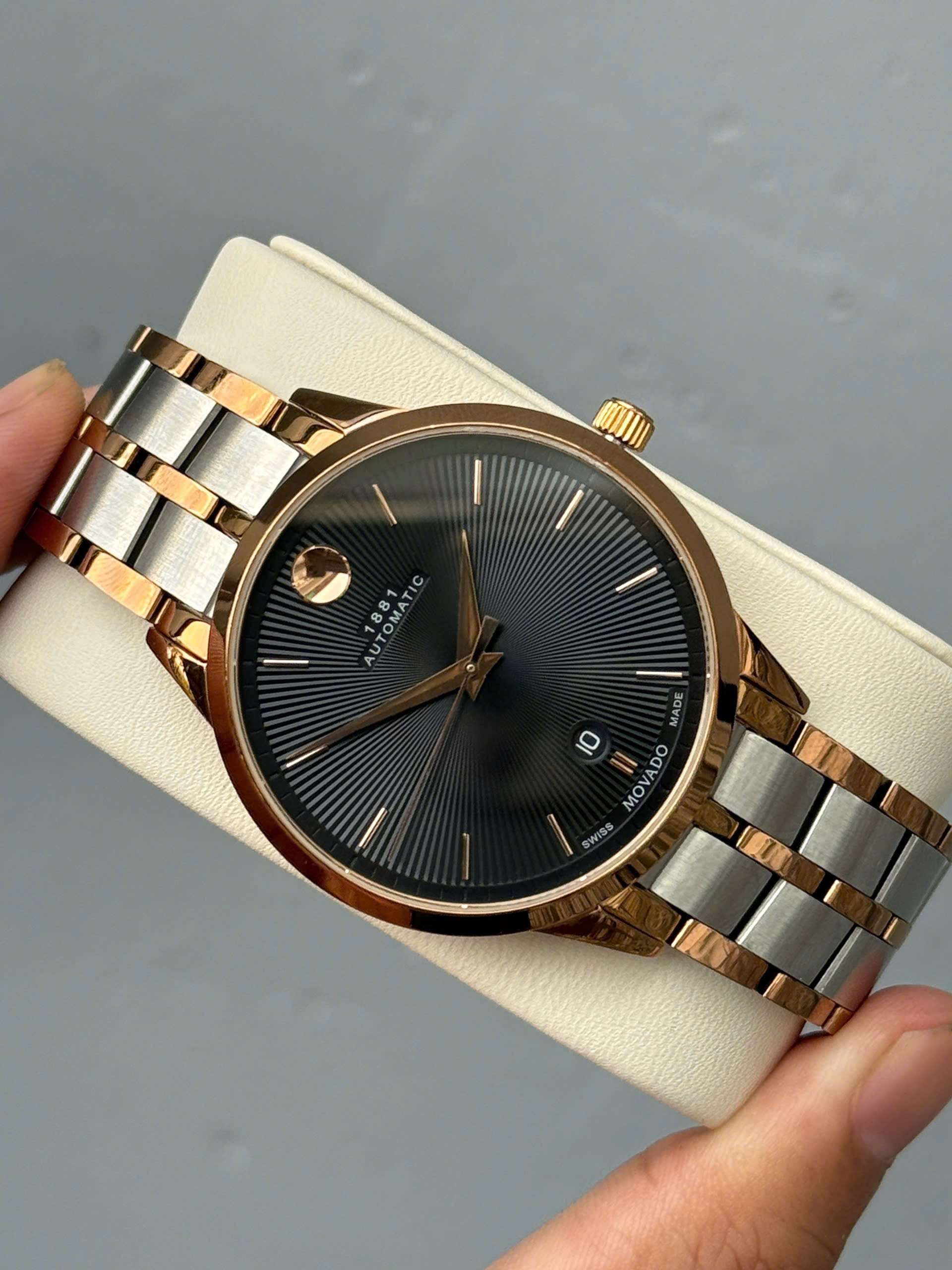 Đồng Hồ Nam Movado 0607464 Automatic Size 39.5 Sunray Sapphire Demi Rose Gold Like New