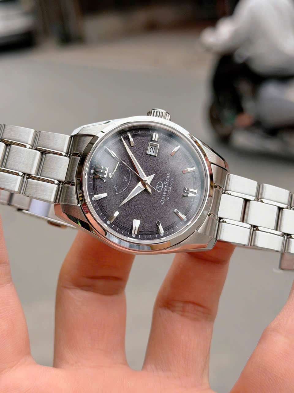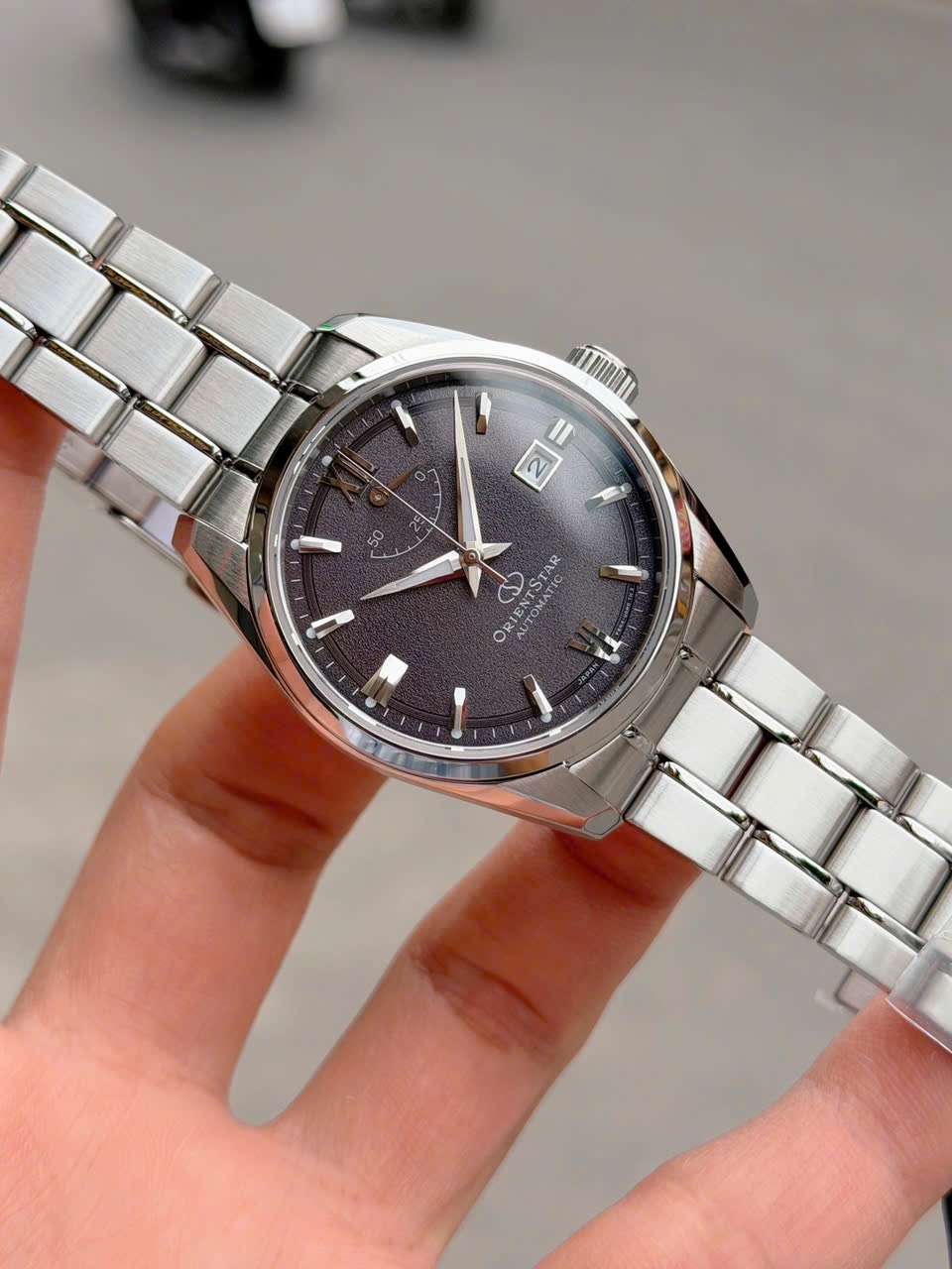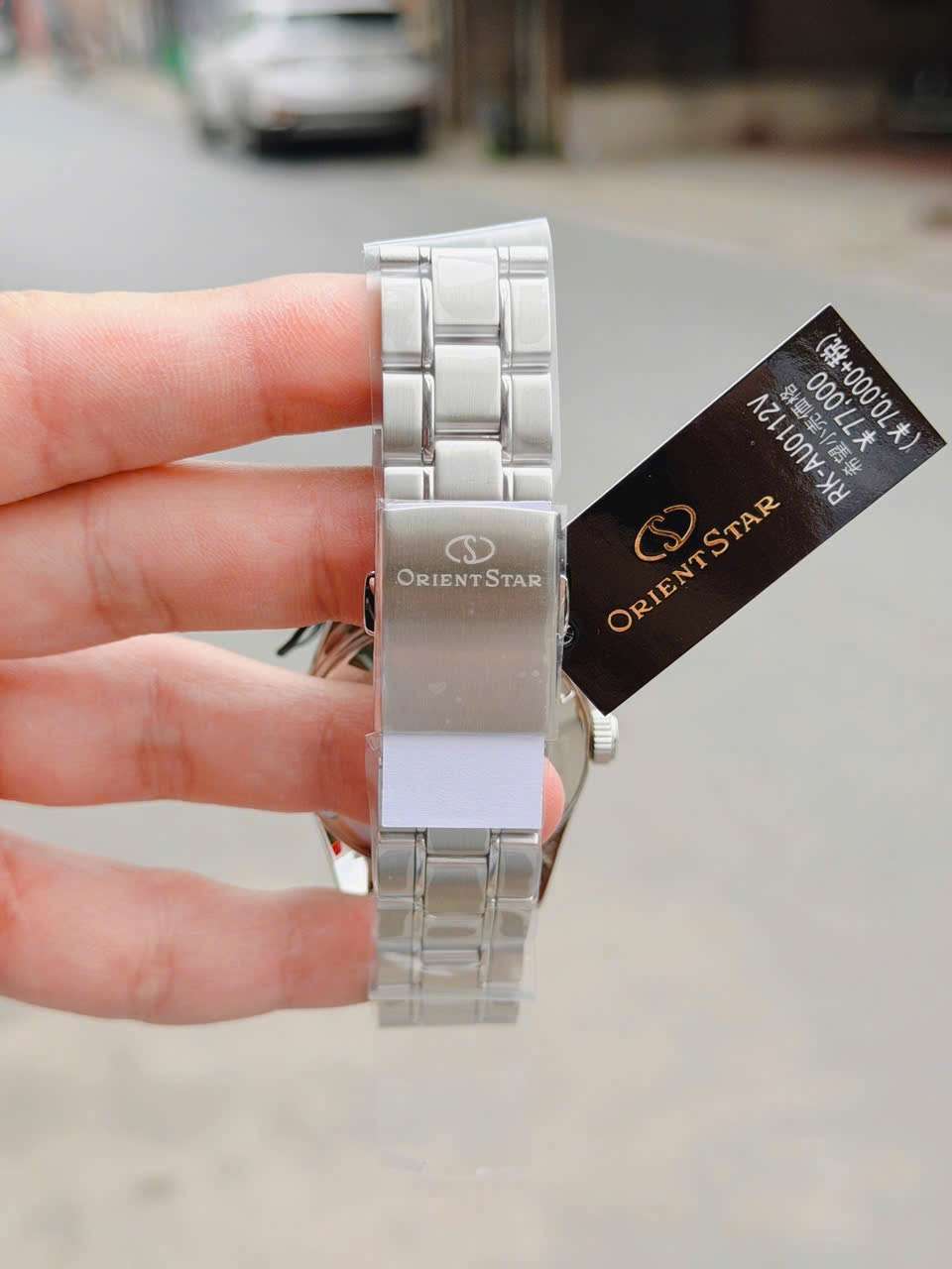 Vỏ & dây: Thép 316L chống gỉ, khóa gập logo Orient Star