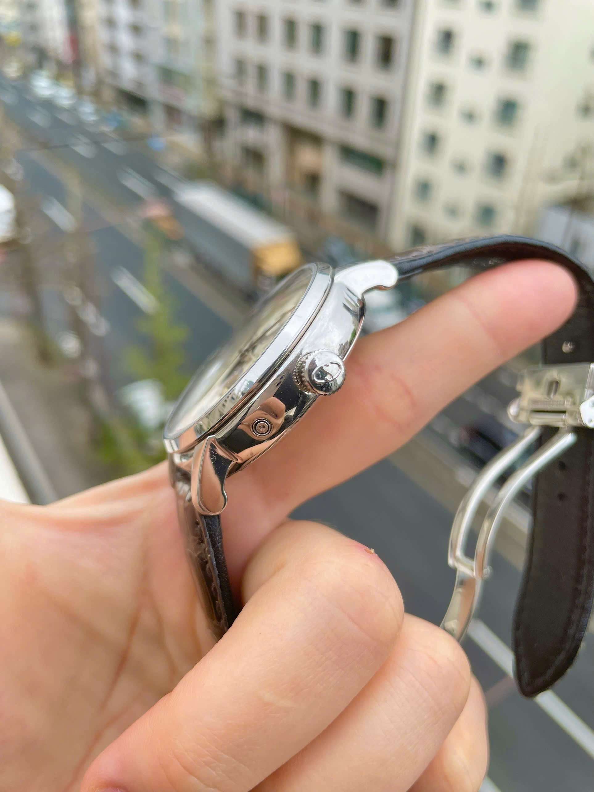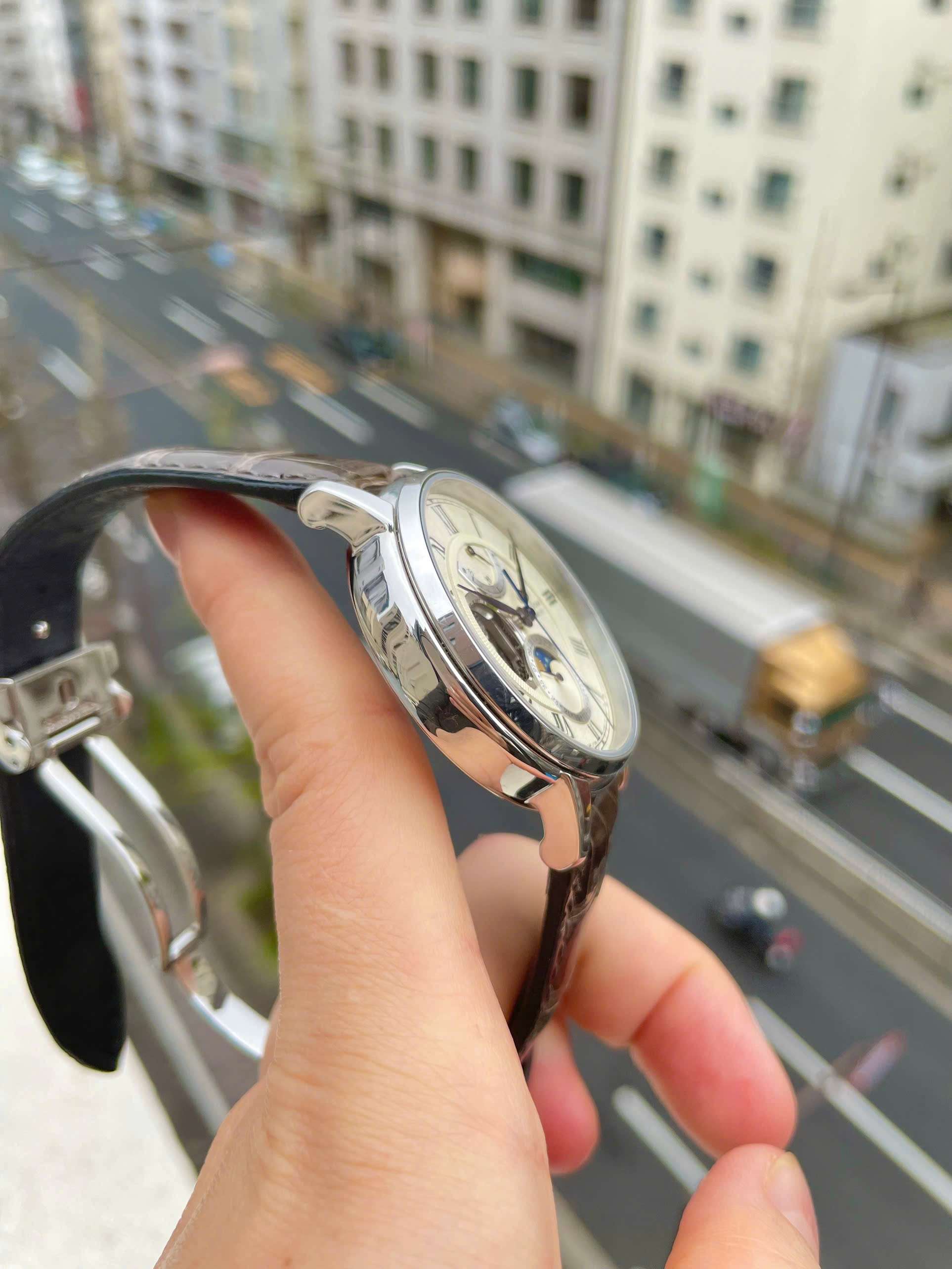 Mặt số: Trắng ngà + kim xanh, moonphase 6h