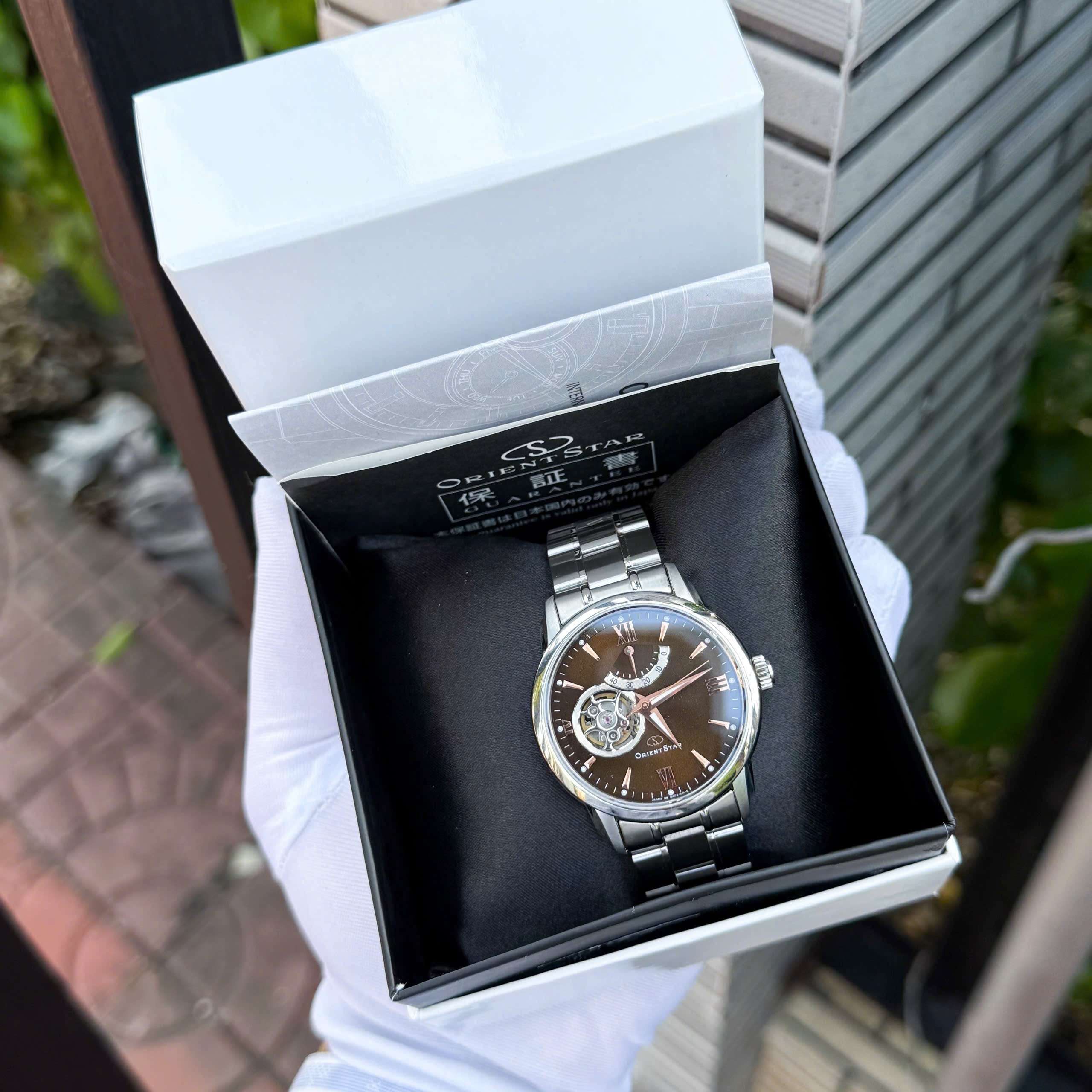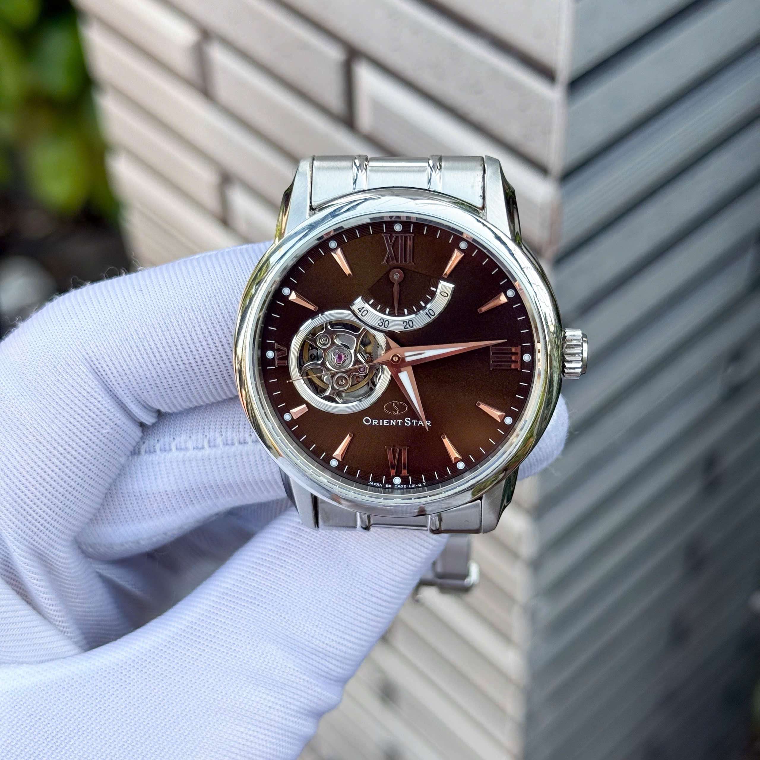 Đồng Hồ Nam Orient Star WZ0071DA Automatic Size 39.5 Open Heart Brown Sapphire Like New