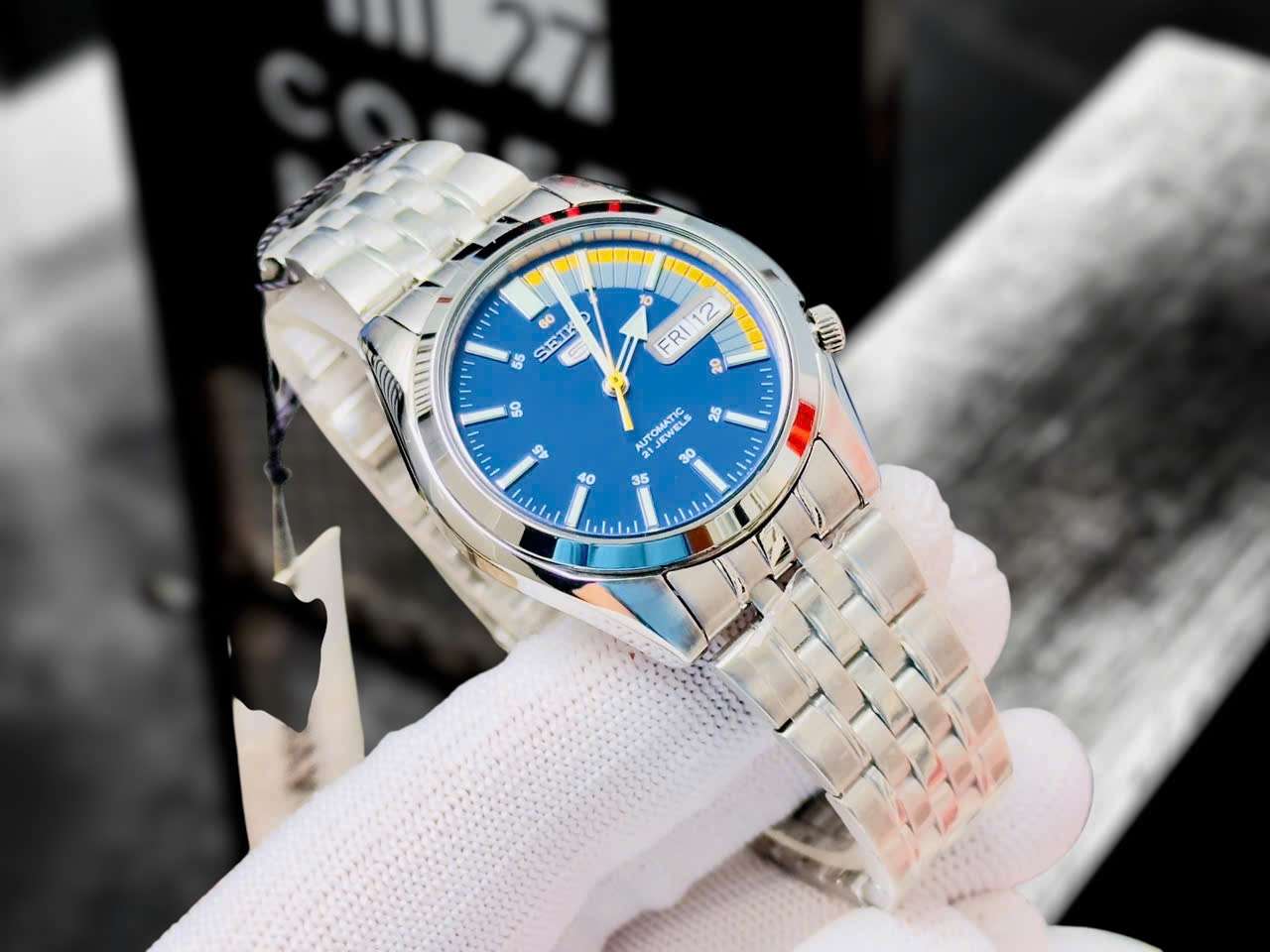 Với bộ máy Automatic Seiko 7S26, Seiko 5 SNK371K1 mang lại độ chính xác cao và khả năng dự trữ năng lượng lên đến 40 giờ. Thiết kế mặt số màu xanh với kim và chỉ số phát sáng tạo nên sự sang trọng và dễ đọc.
