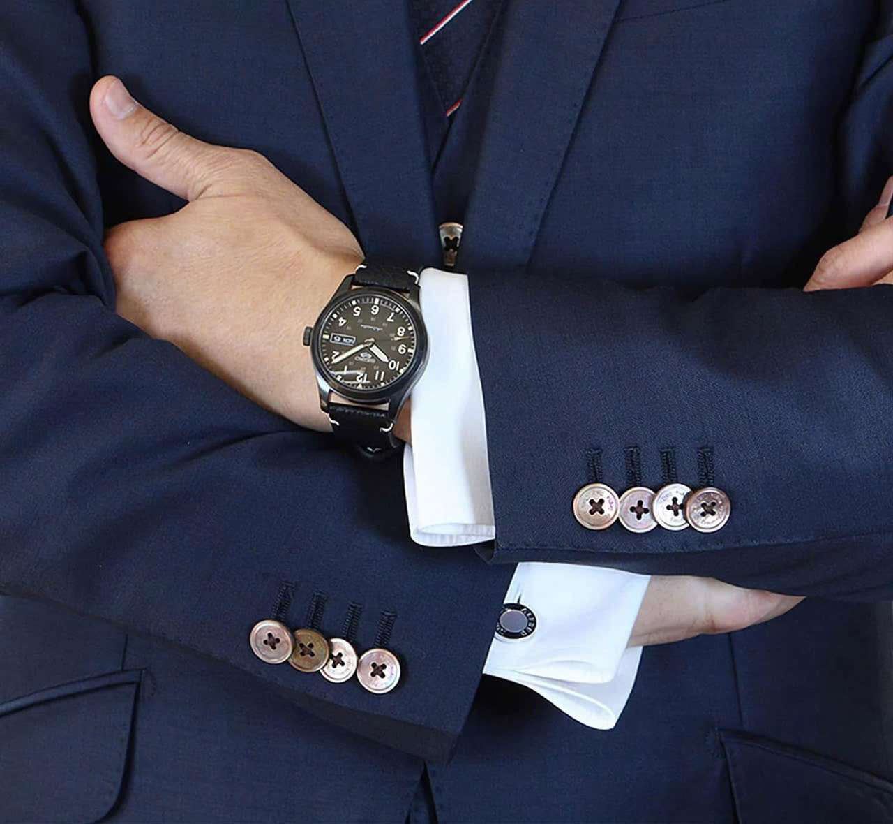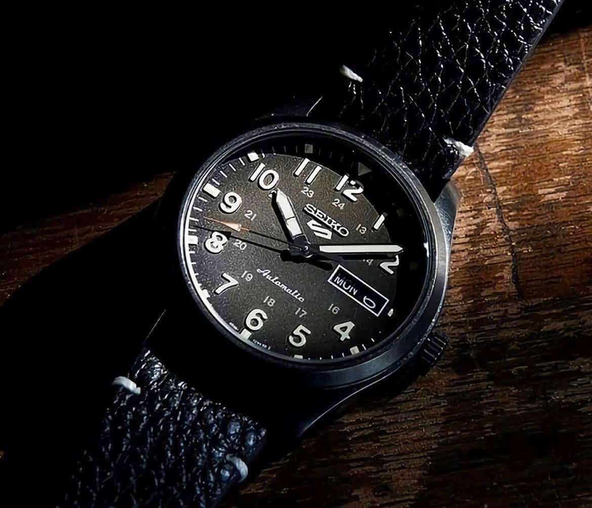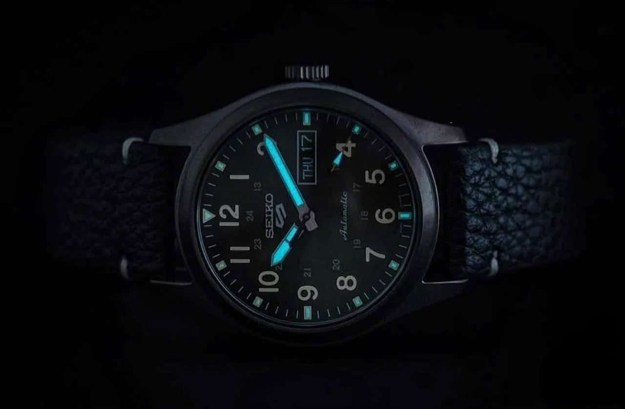 - *Mặt số:* Nền đen với kim chỉ và cọc chấm dạ quang