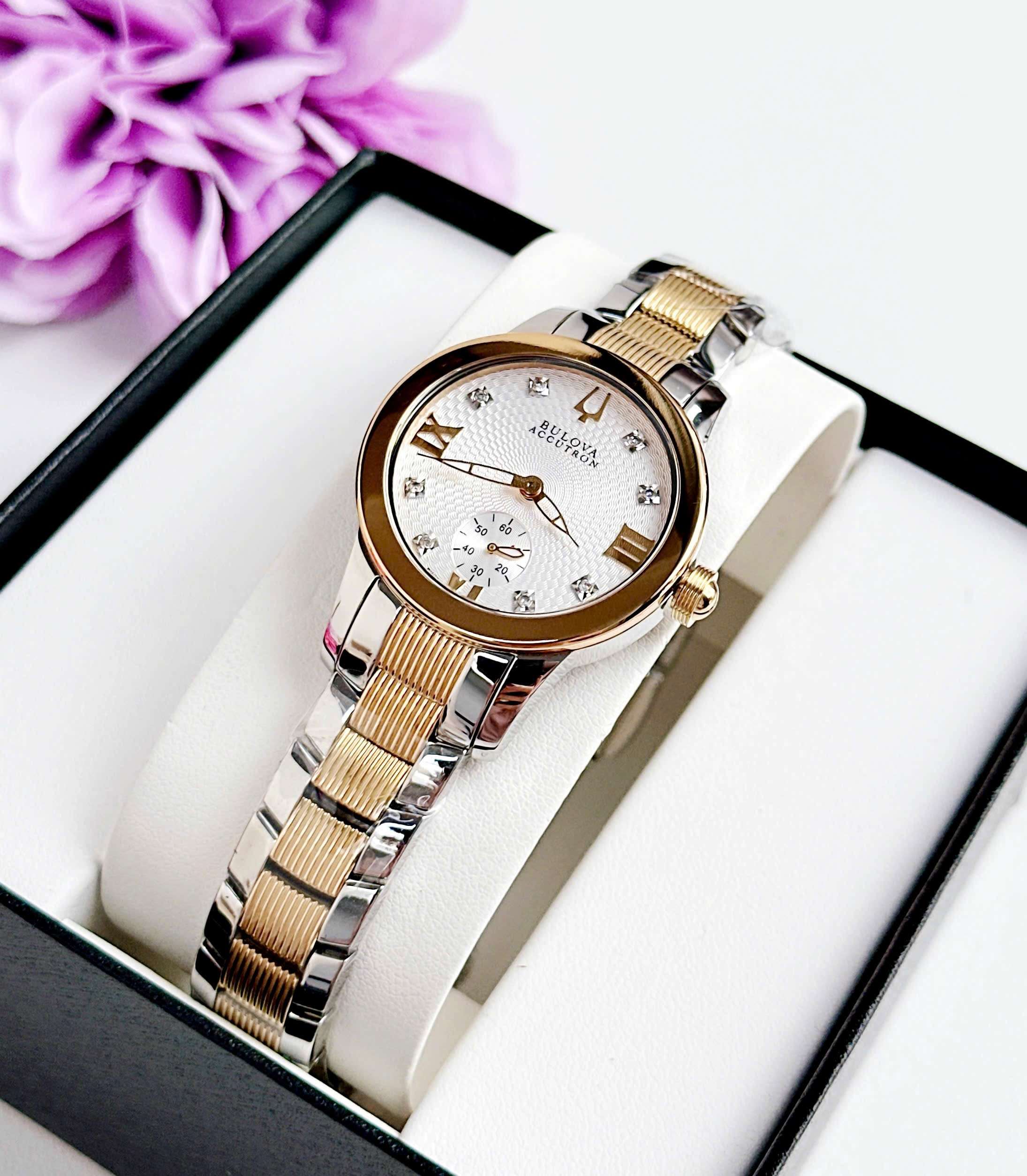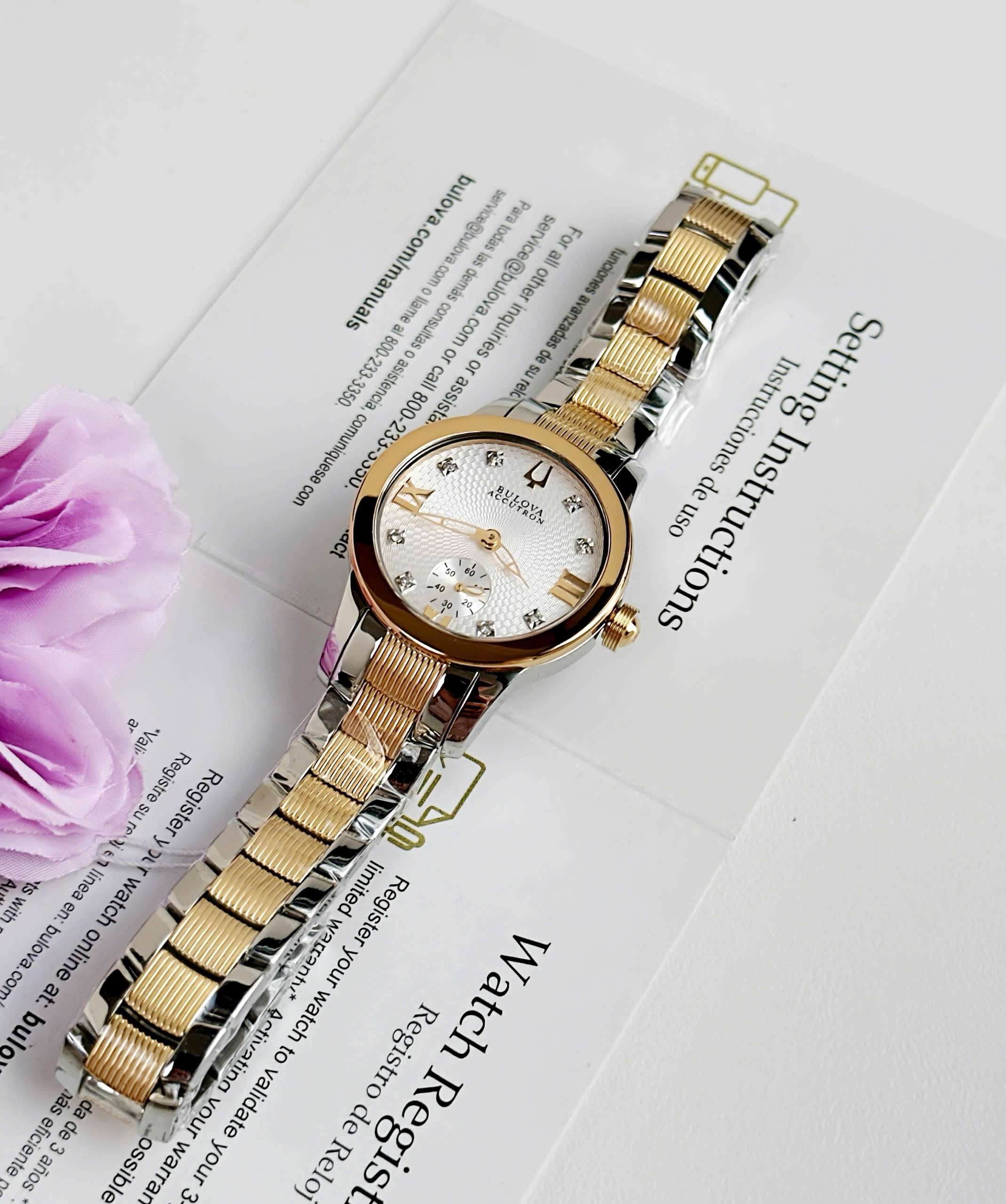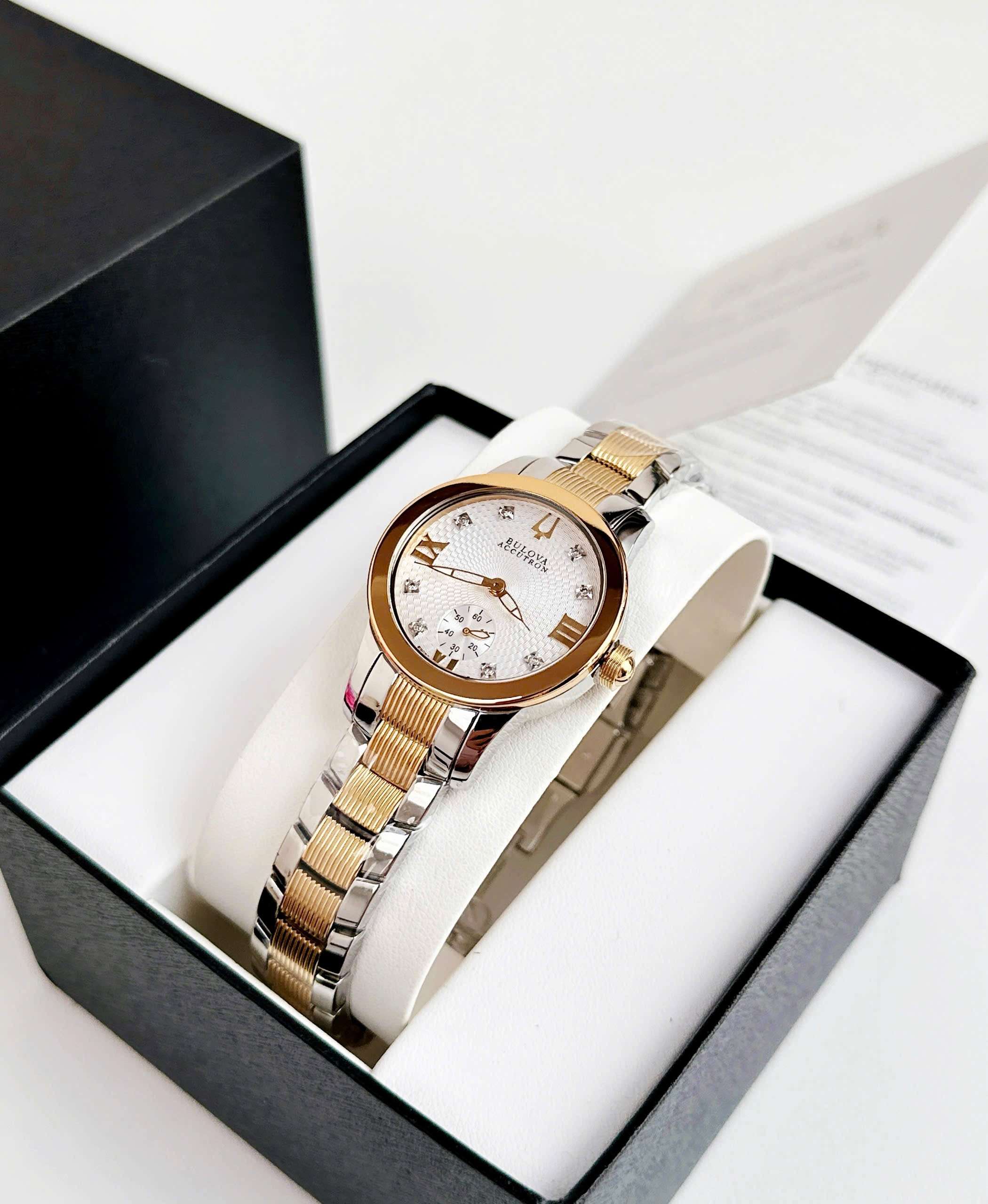 Đồng Hồ Nữ Bulova 65P100 Quartz Size 31 Gold Accutron Masella Diamond