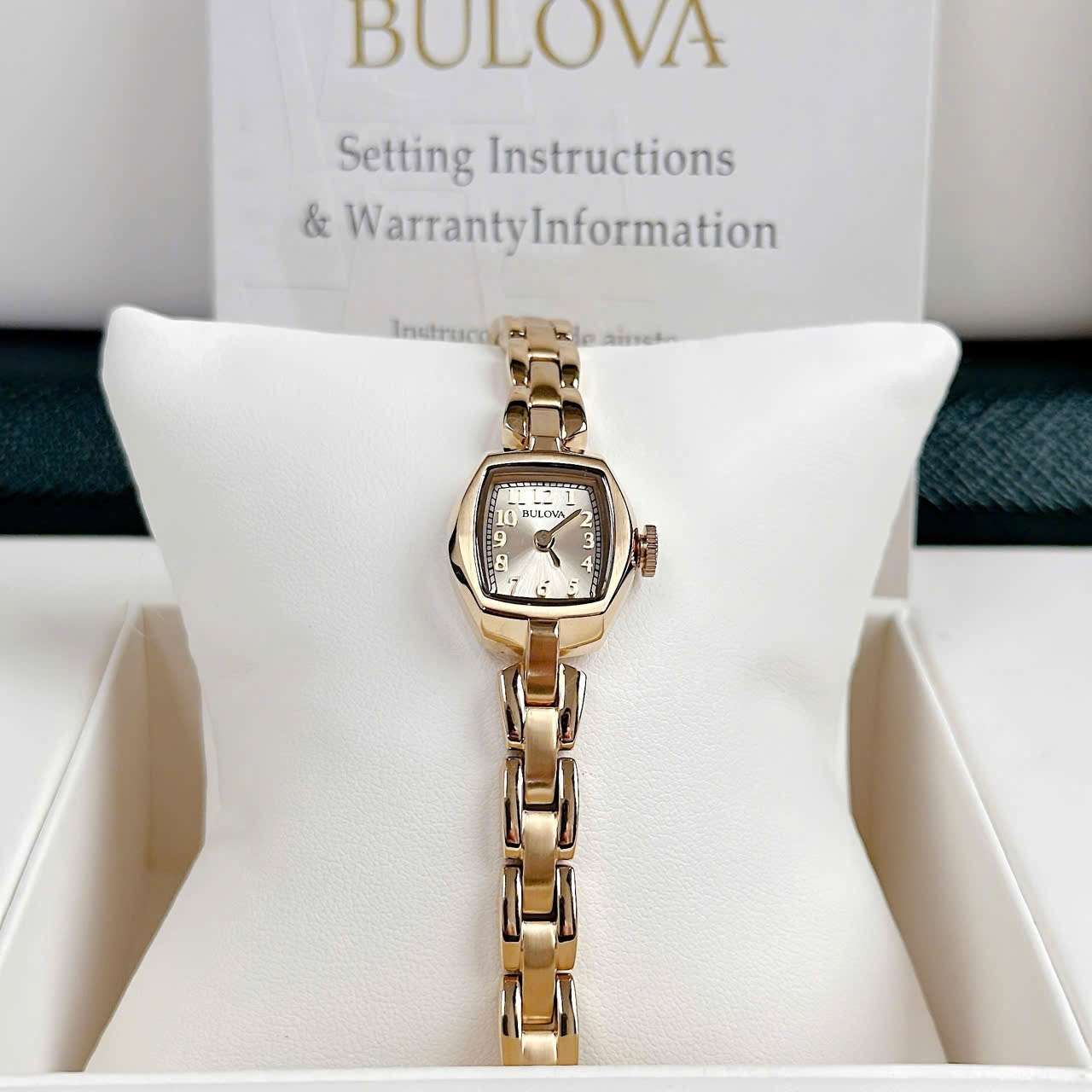 Đồng Hồ Nữ Bulova 97L155 Quartz Size 18 Gold Case & Dial Mặt Vuông