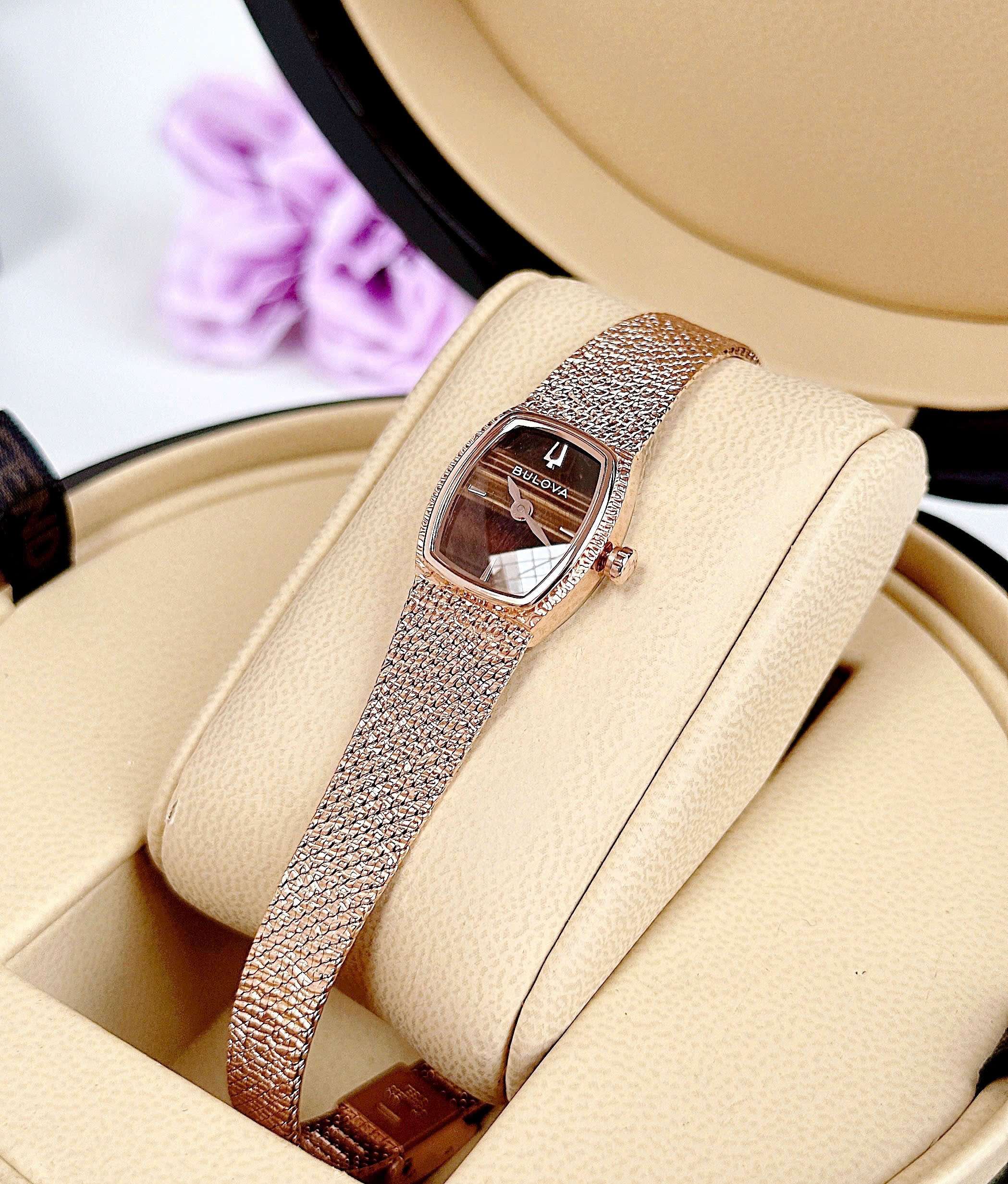 Đồng Hồ Nữ Bulova 97L185 Quartz Size 17 Brown Tiger Eye