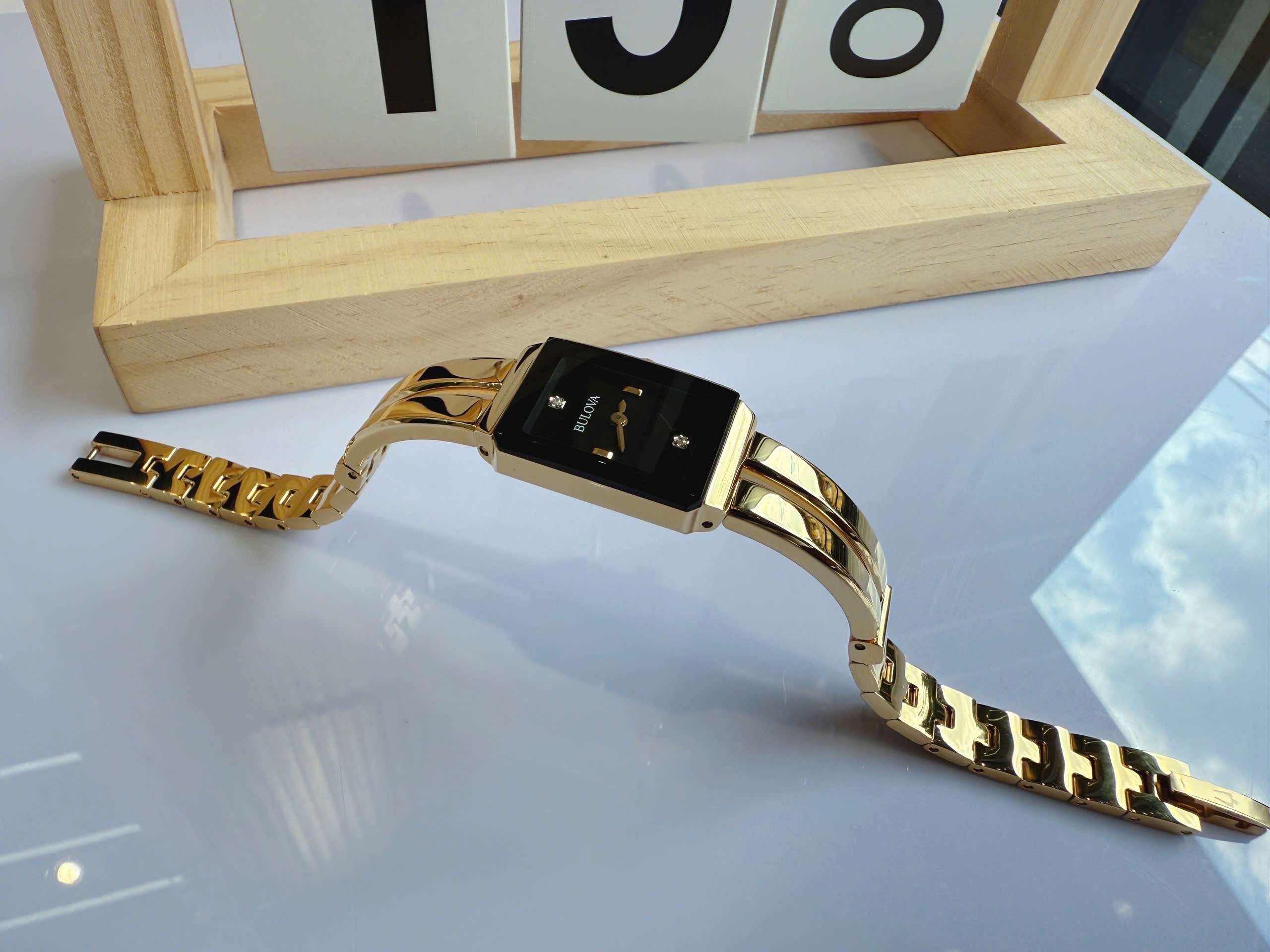 Đồng hồ Bulova 97P168 là một sản phẩm cao cấp, mang đến cho người dùng một phong cách sang trọng và tinh tế. Sản phẩm này có thiết kế mặt số sunburst đen rực rỡ, điểm nhấn tông vàng và cọc số kim cương tinh xảo.