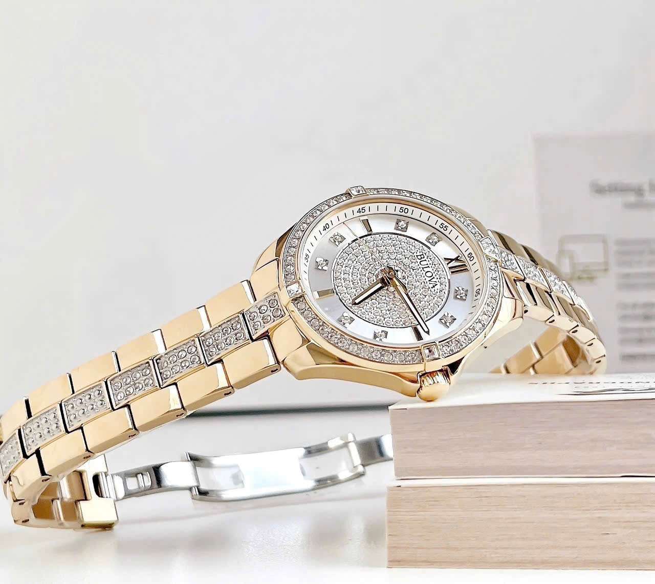 Bulova 98L228: Demi Gold Đính Đá Sáng Choang Cho Phái Đẹp