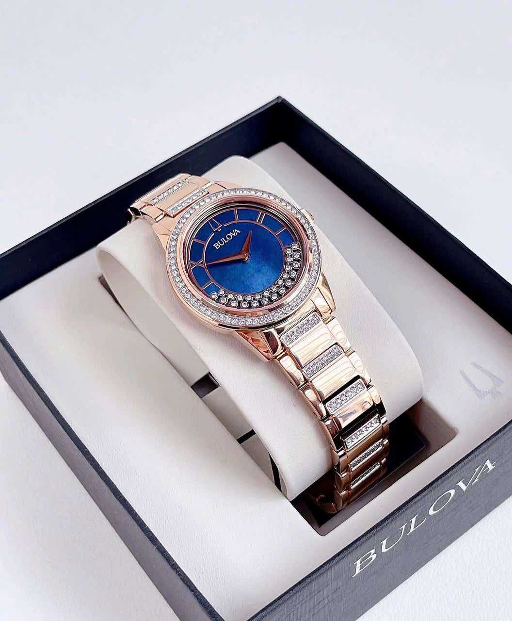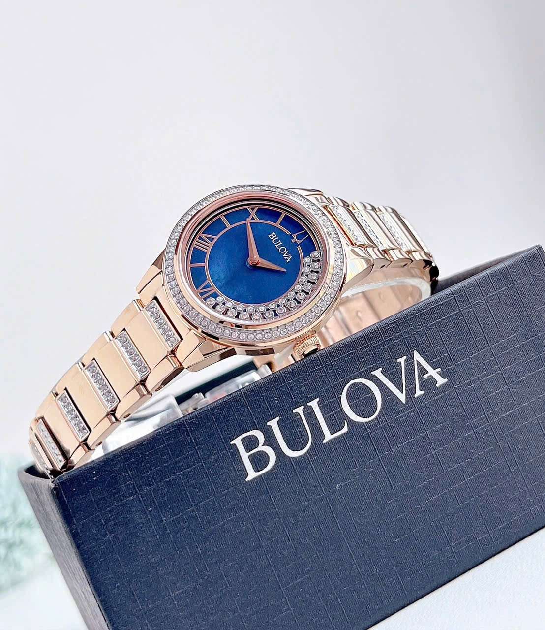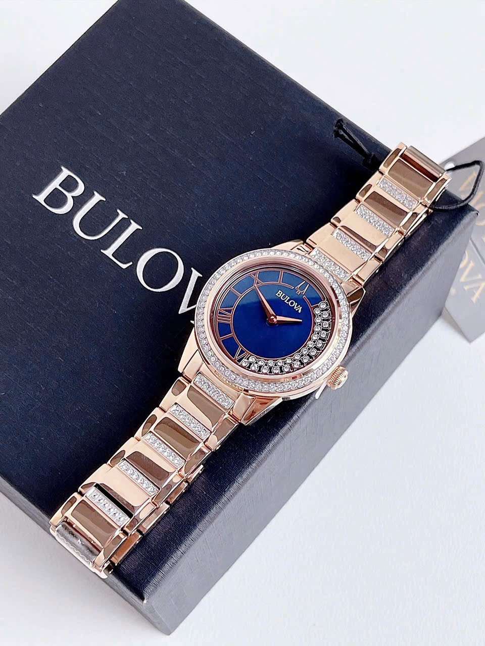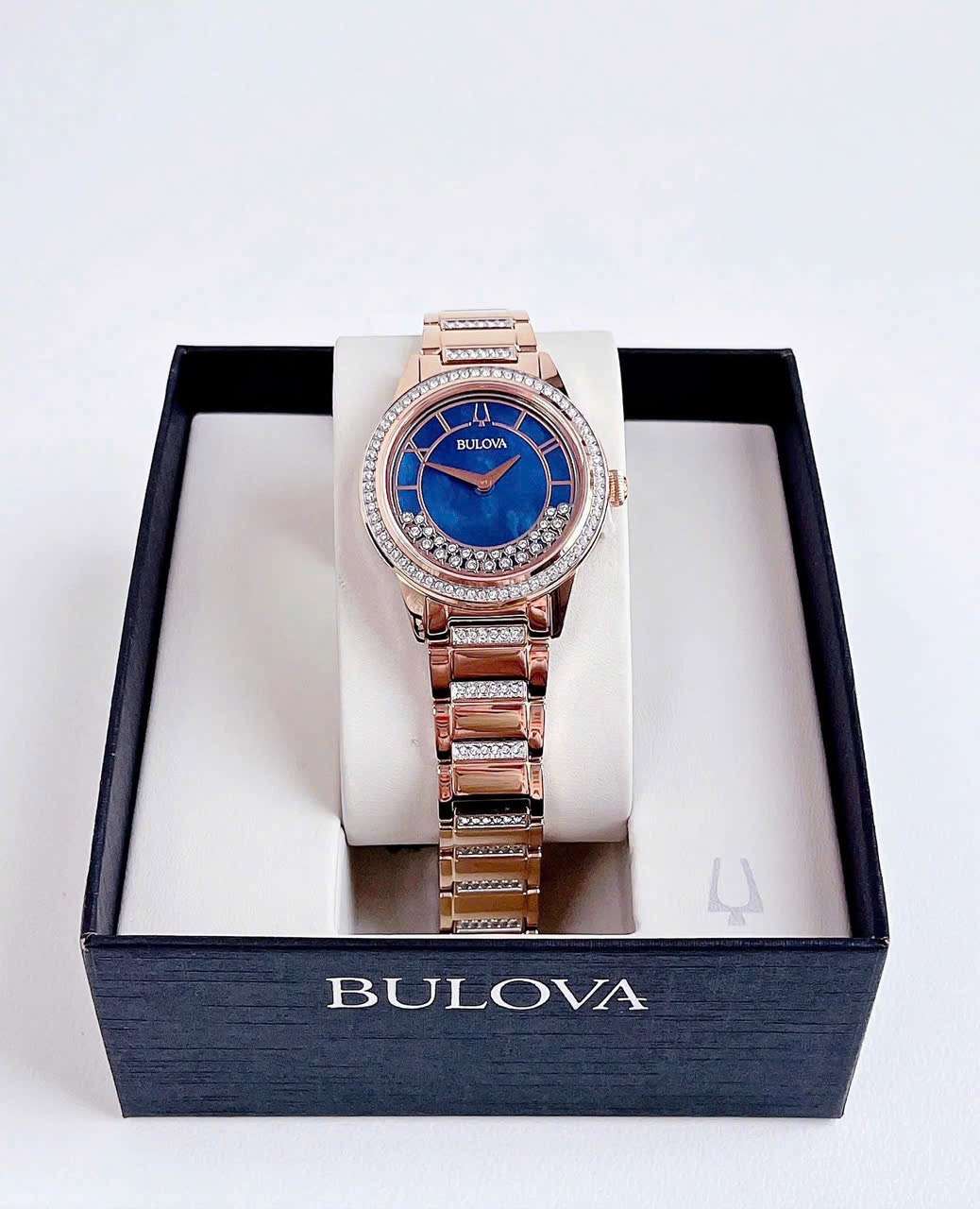 Đồng Hồ Nữ Bulova 98L247 Quartz Size 33 Swarovski Blue Rose Gold
