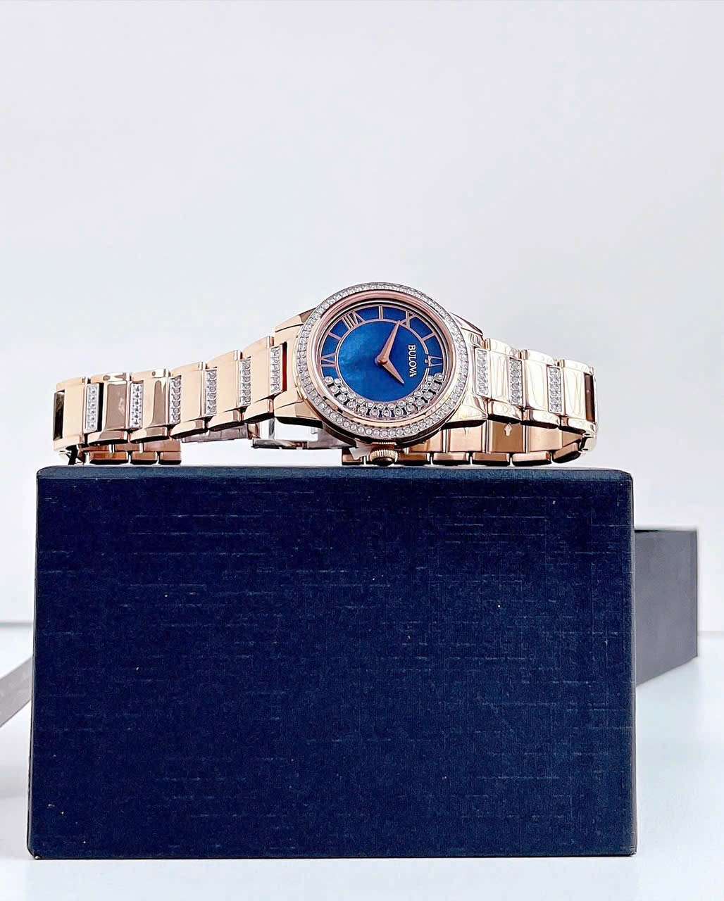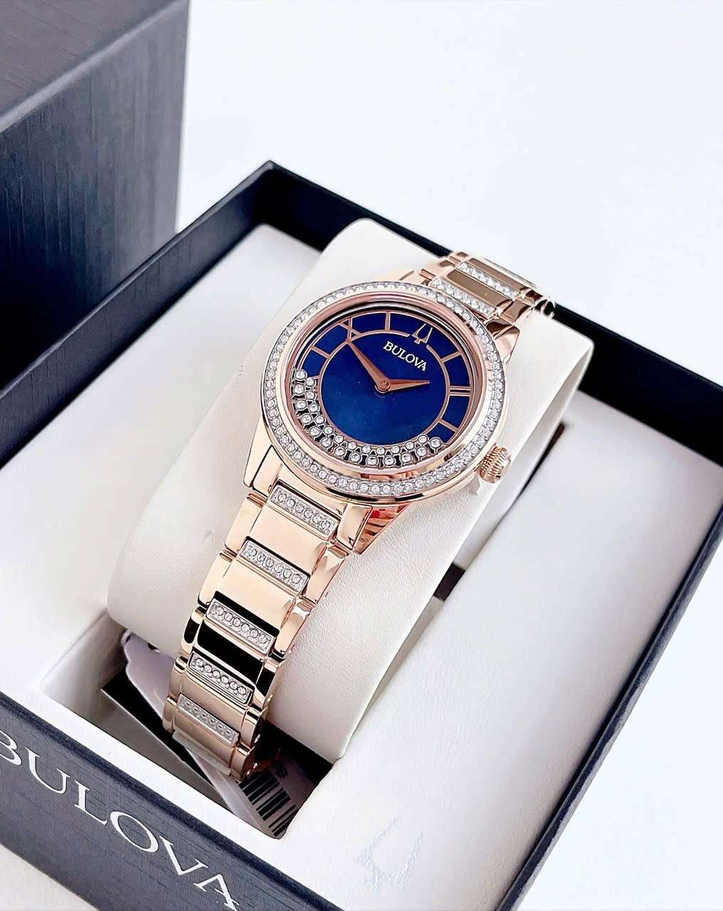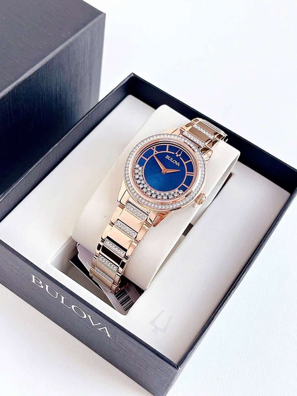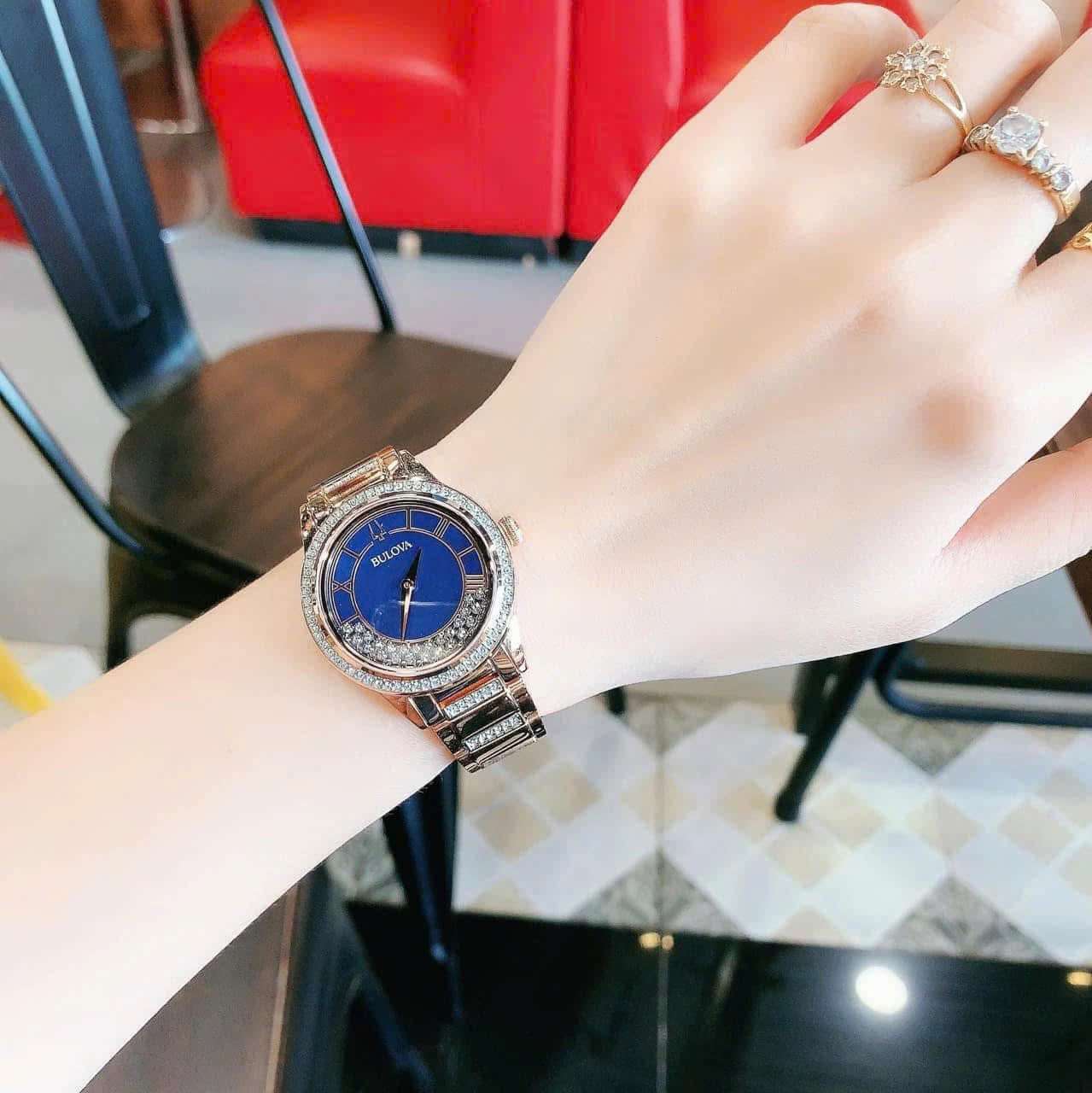 Đồng Hồ Nữ Bulova 98L247 Quartz Size 33 Swarovski Blue Rose Gold