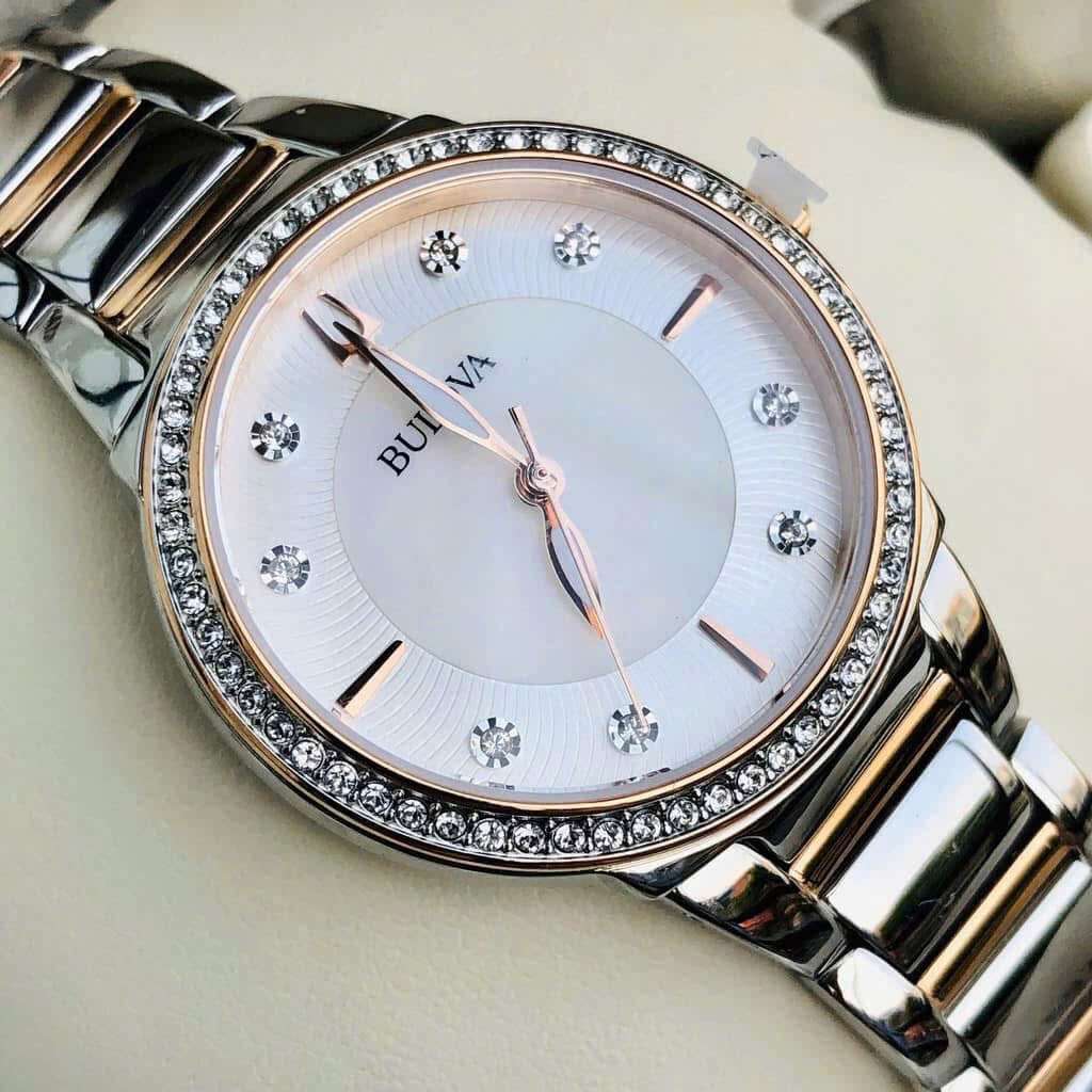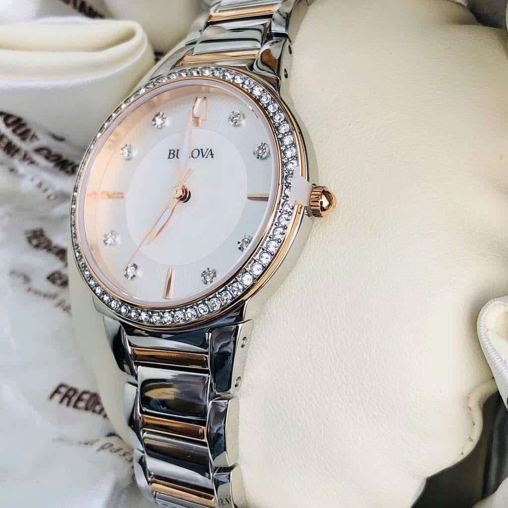Bulova Women's Quartz Crystal Accents Two-Tone Bracelet 32mm Watch 98L258 quá xịn xò!