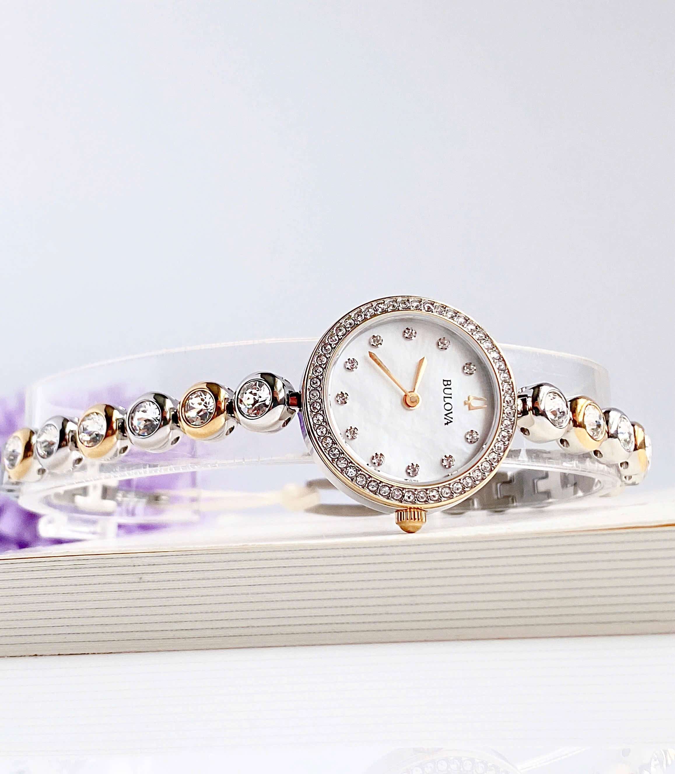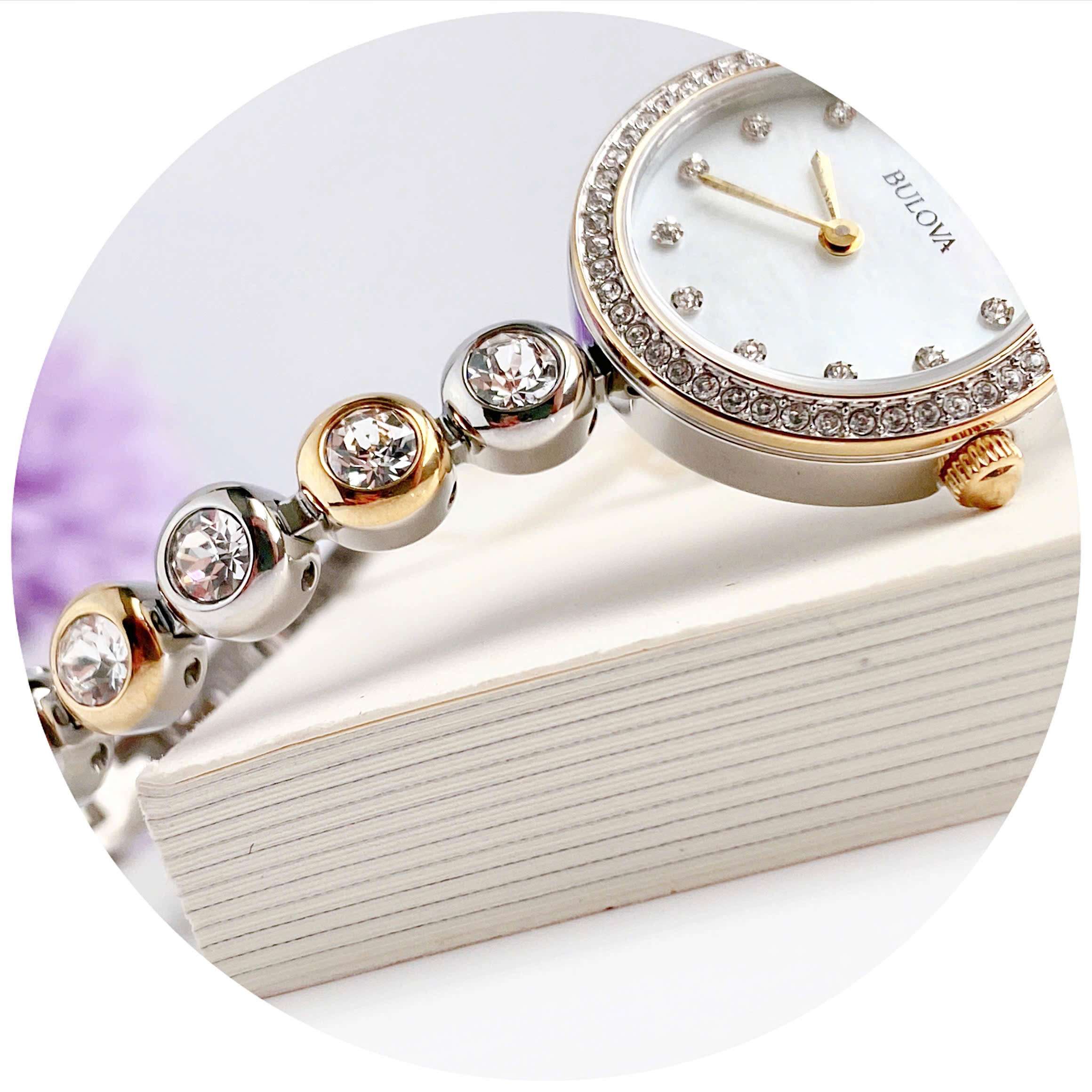 Đồng Hồ Nữ Bulova 98L299 Quartz Size 25 Crystal Demi Gold Bracelet
