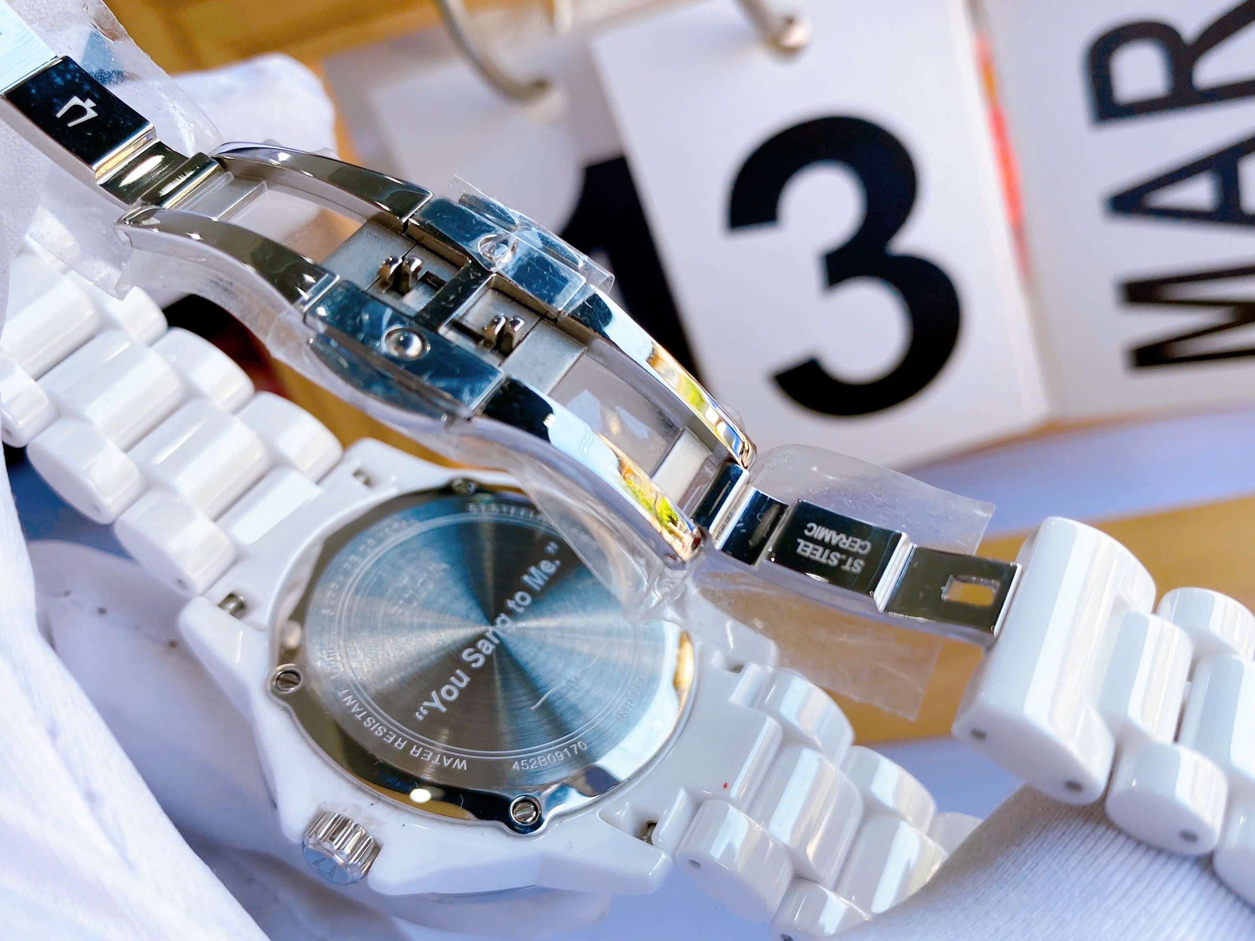 - *Vỏ:* Gốm trắng chống trầy (ceramic)