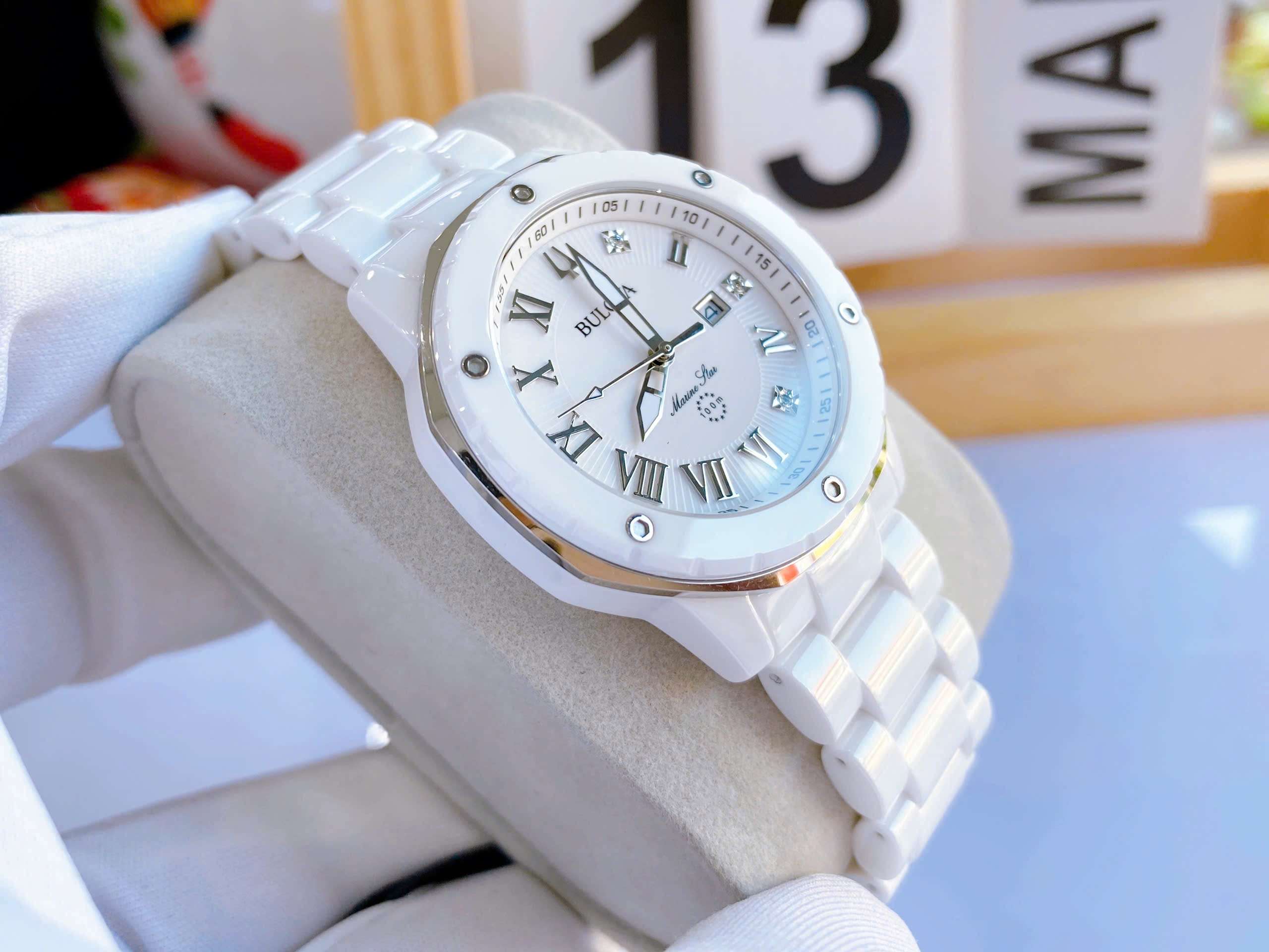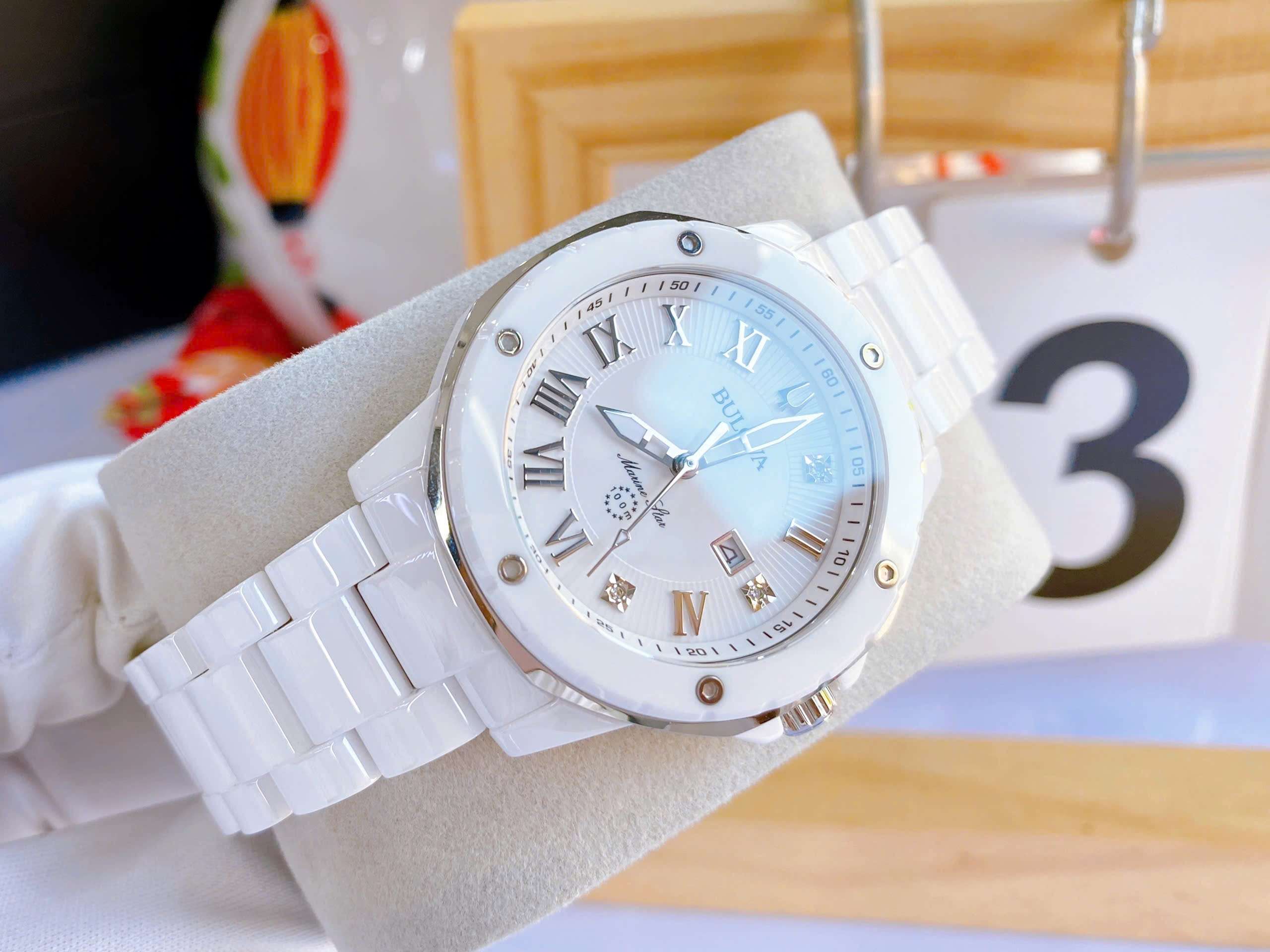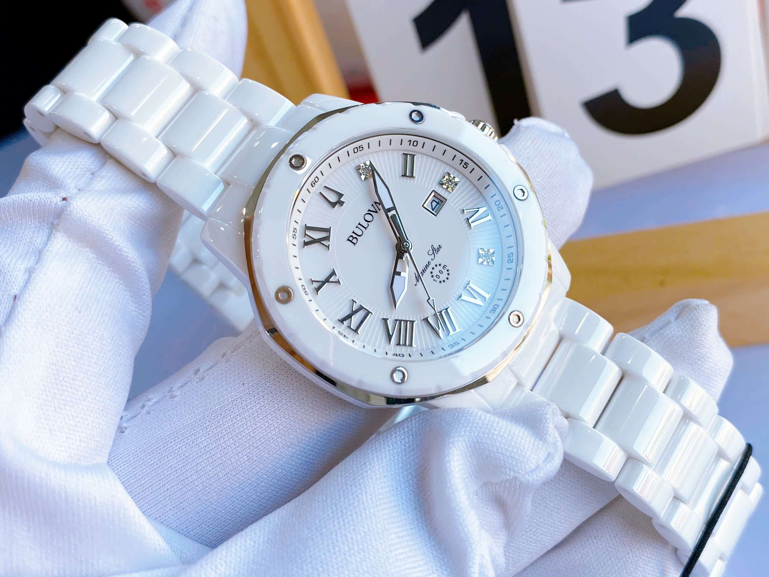 Đồng Hồ Nữ Bulova 98P222 Quartz Size 36 Marine Star White Ceramic Sapphire
