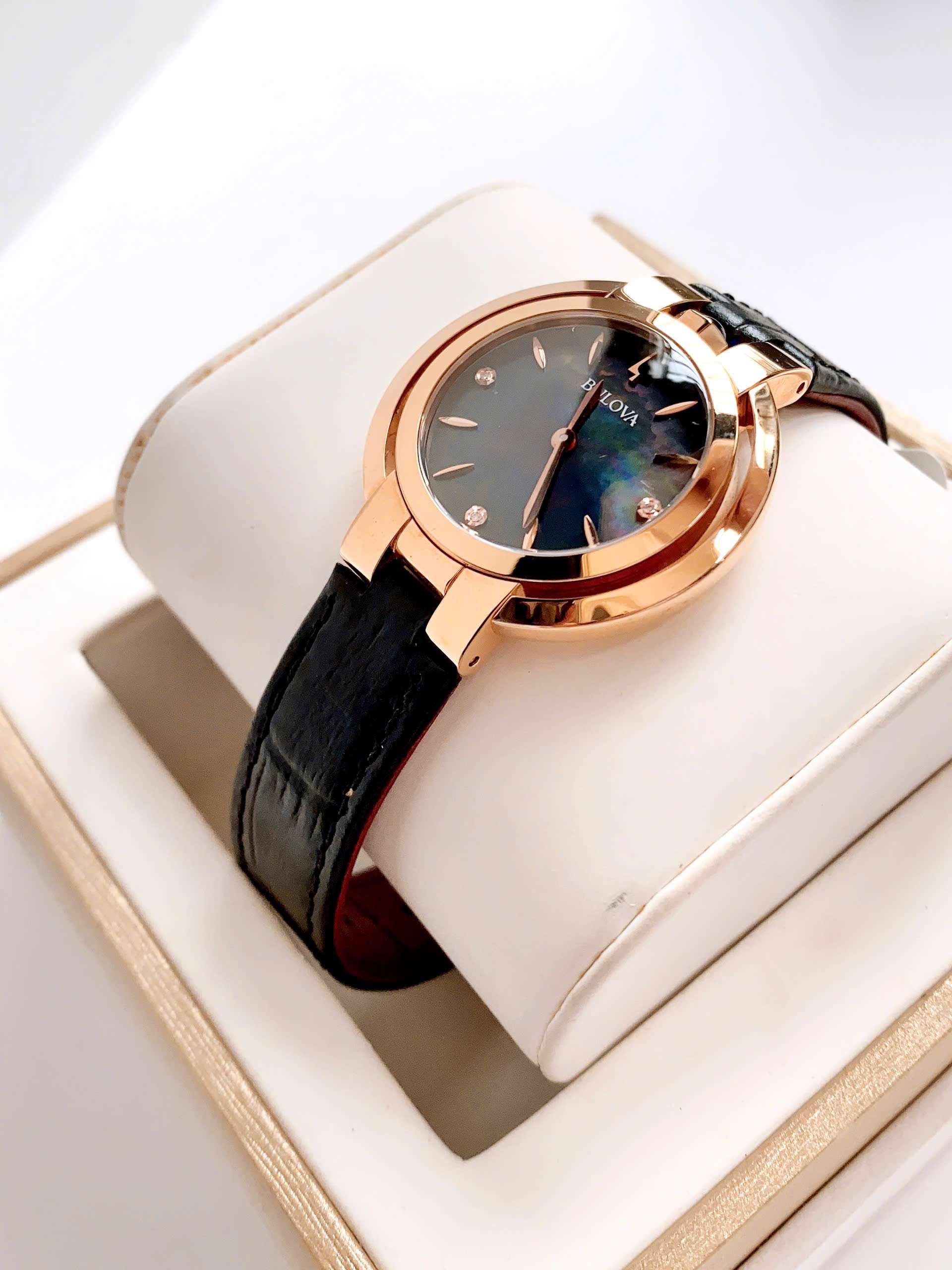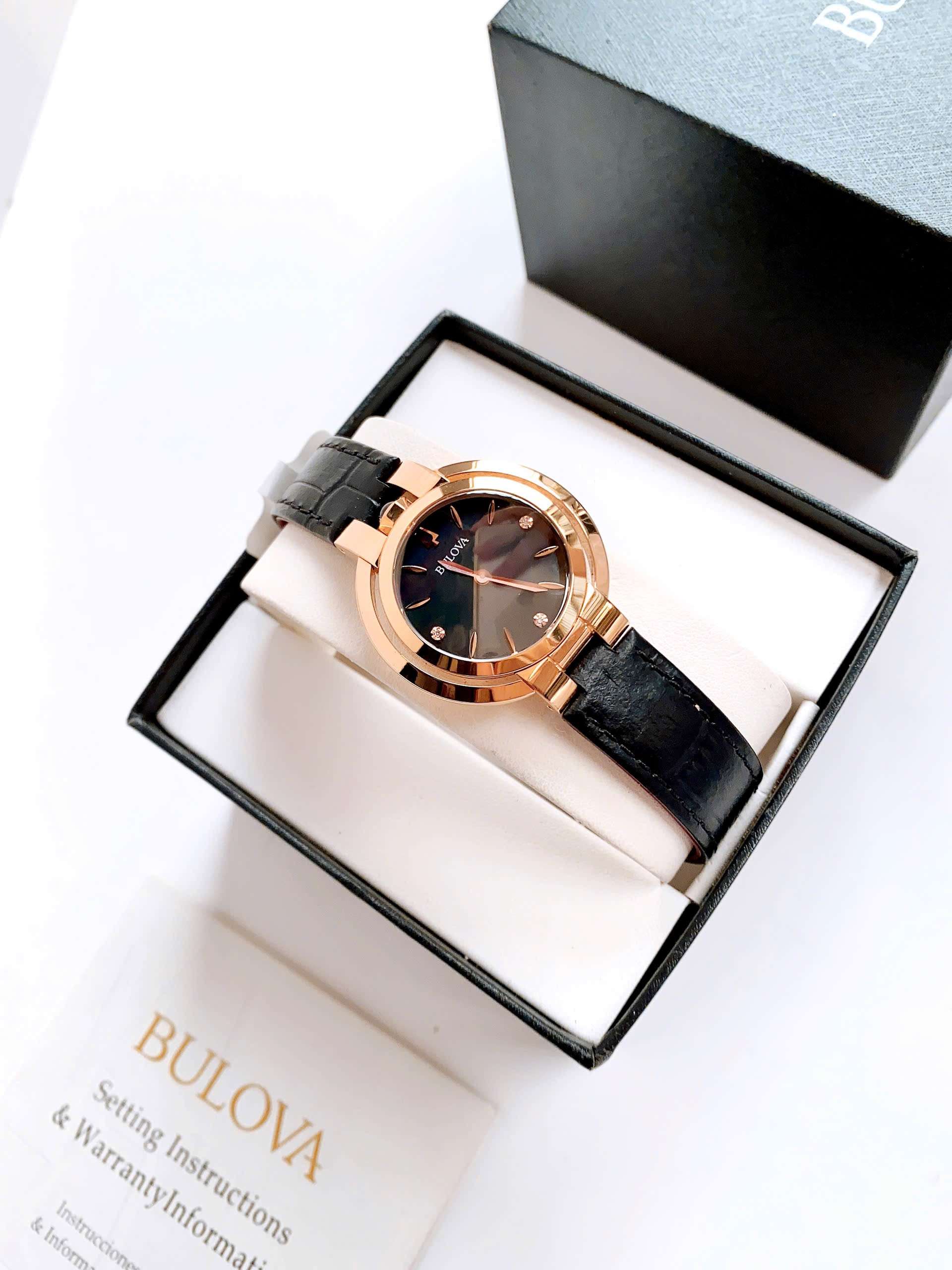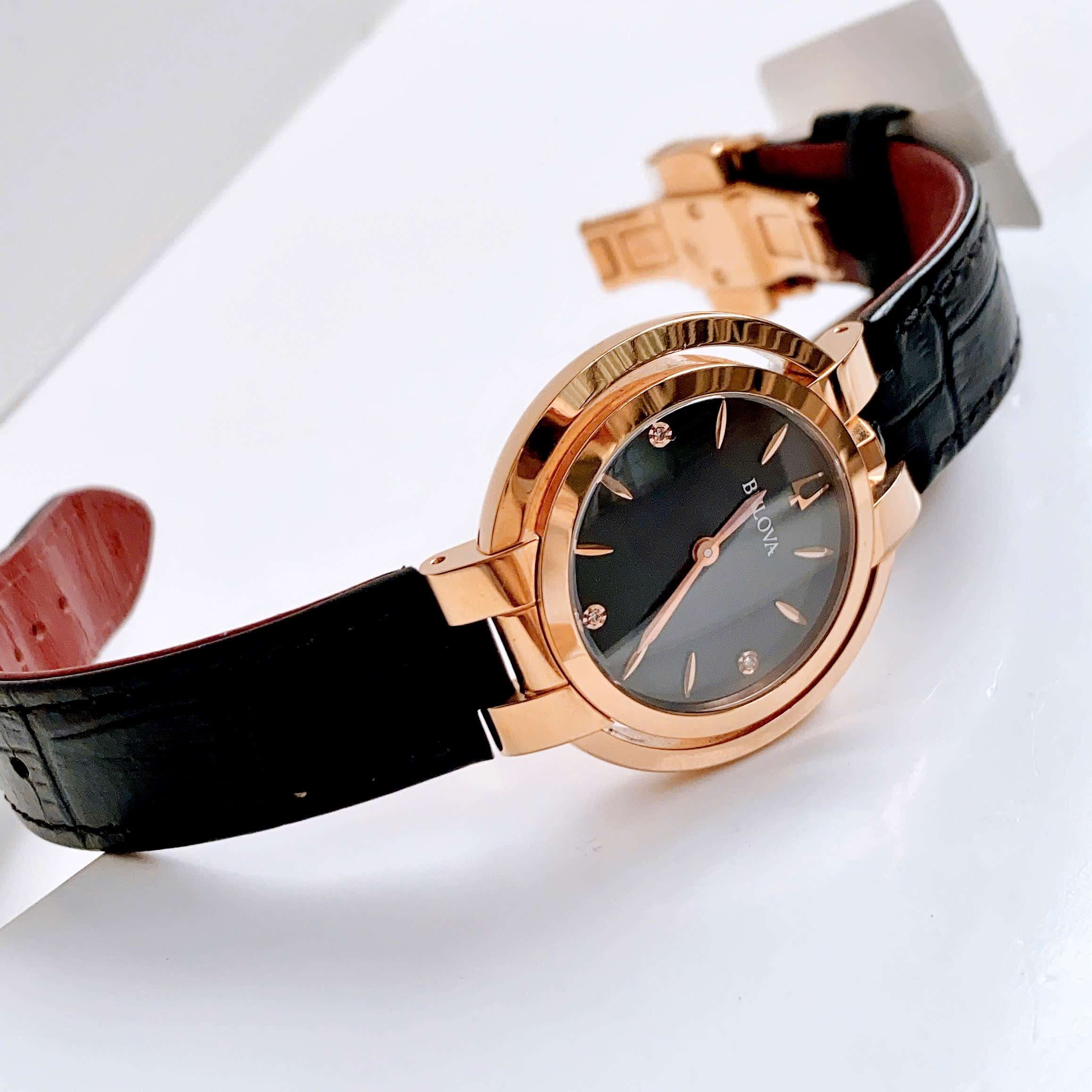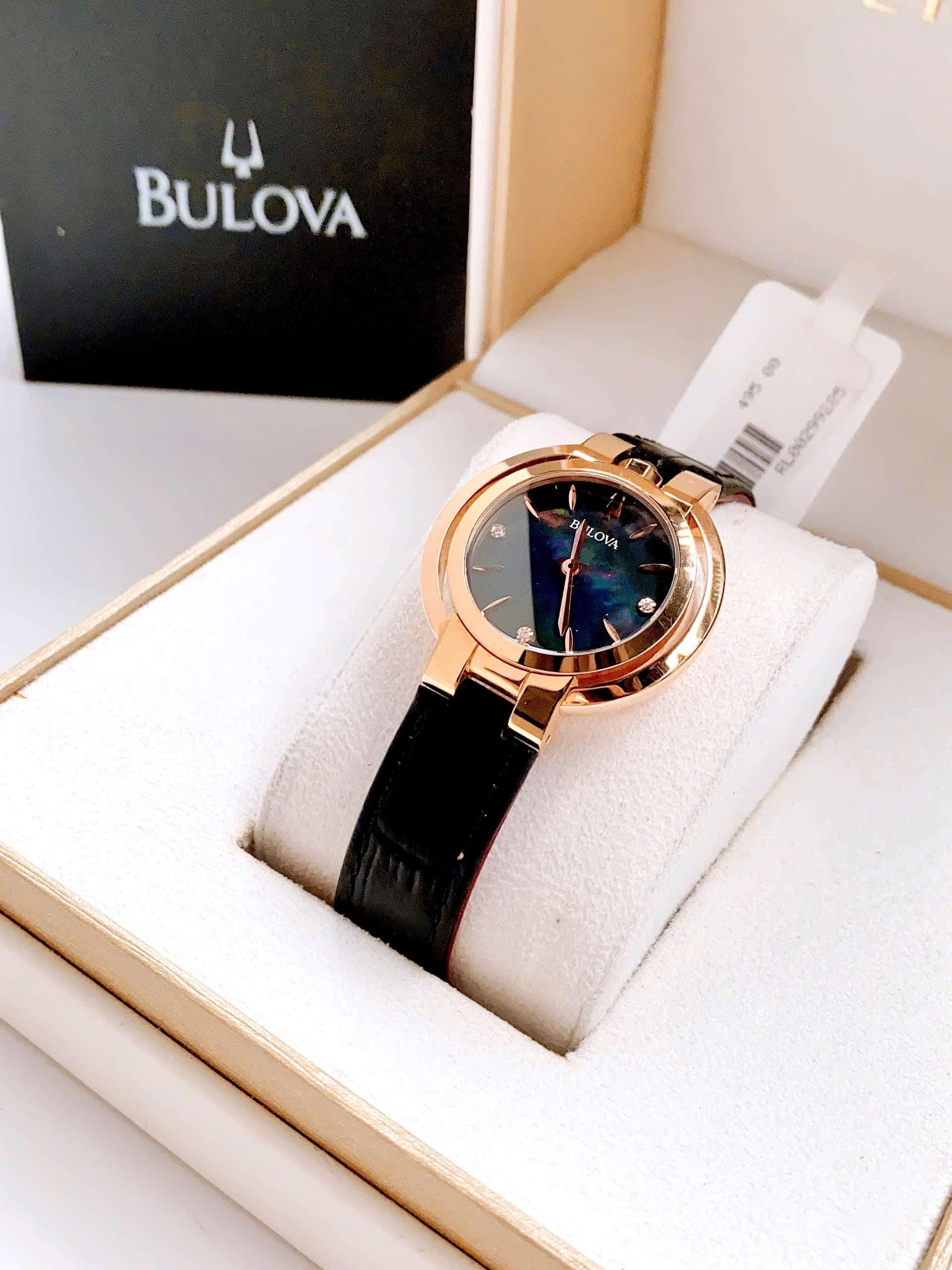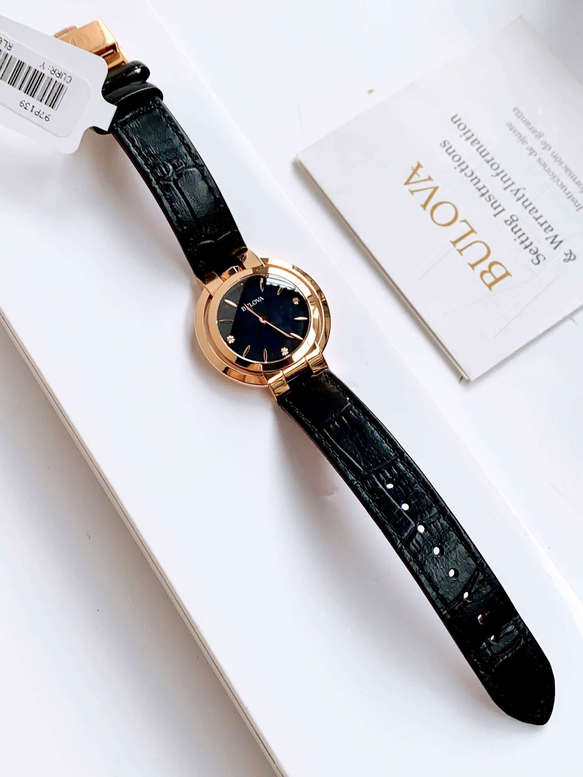 Đồng Hồ Nữ Bulova Rubaiyat 97P139 Quartz Size 35 Black Sapphire Rose Gold
