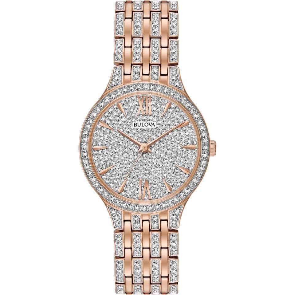 ĐỒNG HỒ NỮ CHÍNH HÃNG Bulova 98L235 Quartz Gold Swarovski Dial Rose Gold Case & Stainless Steel For Lady