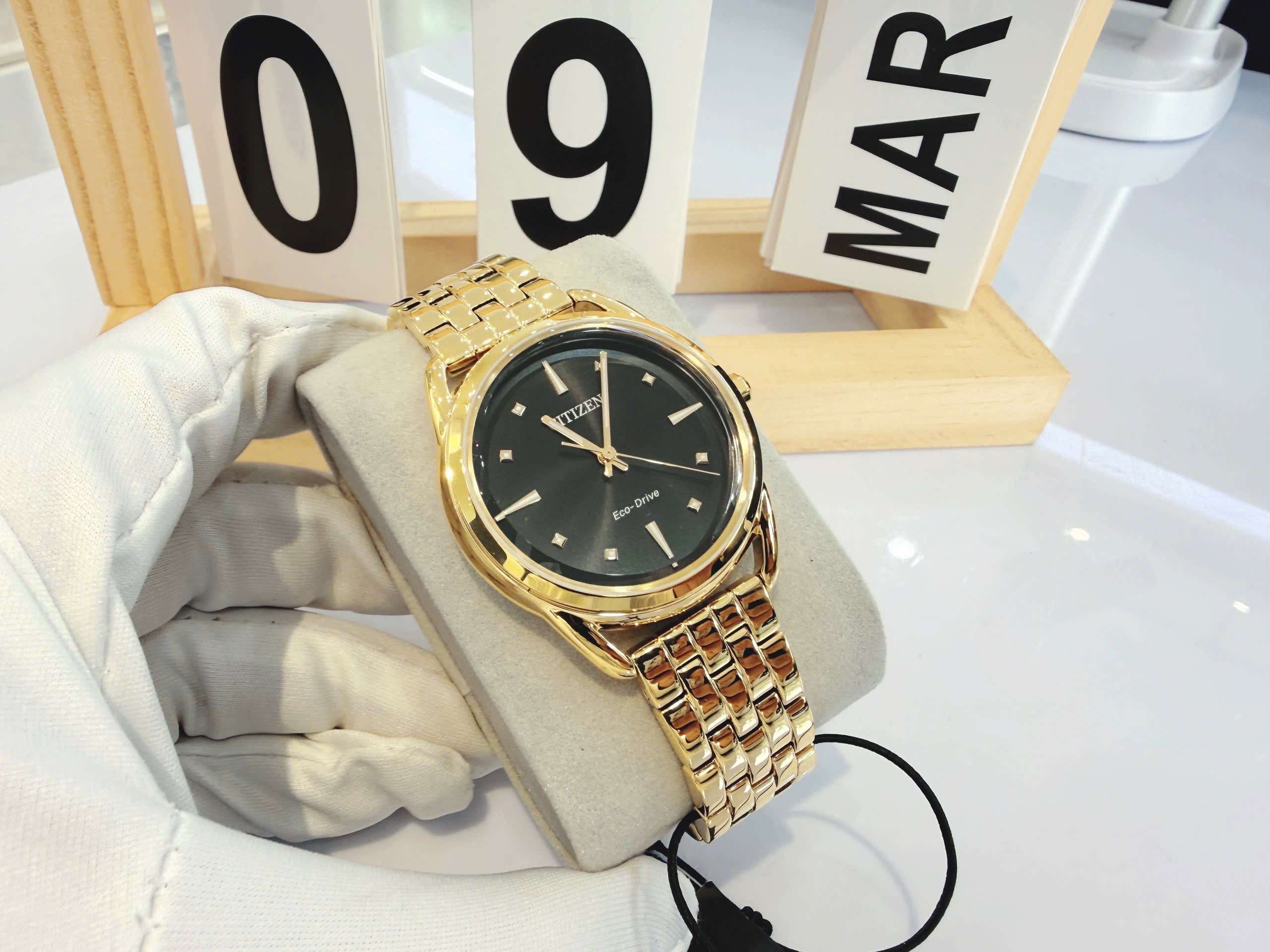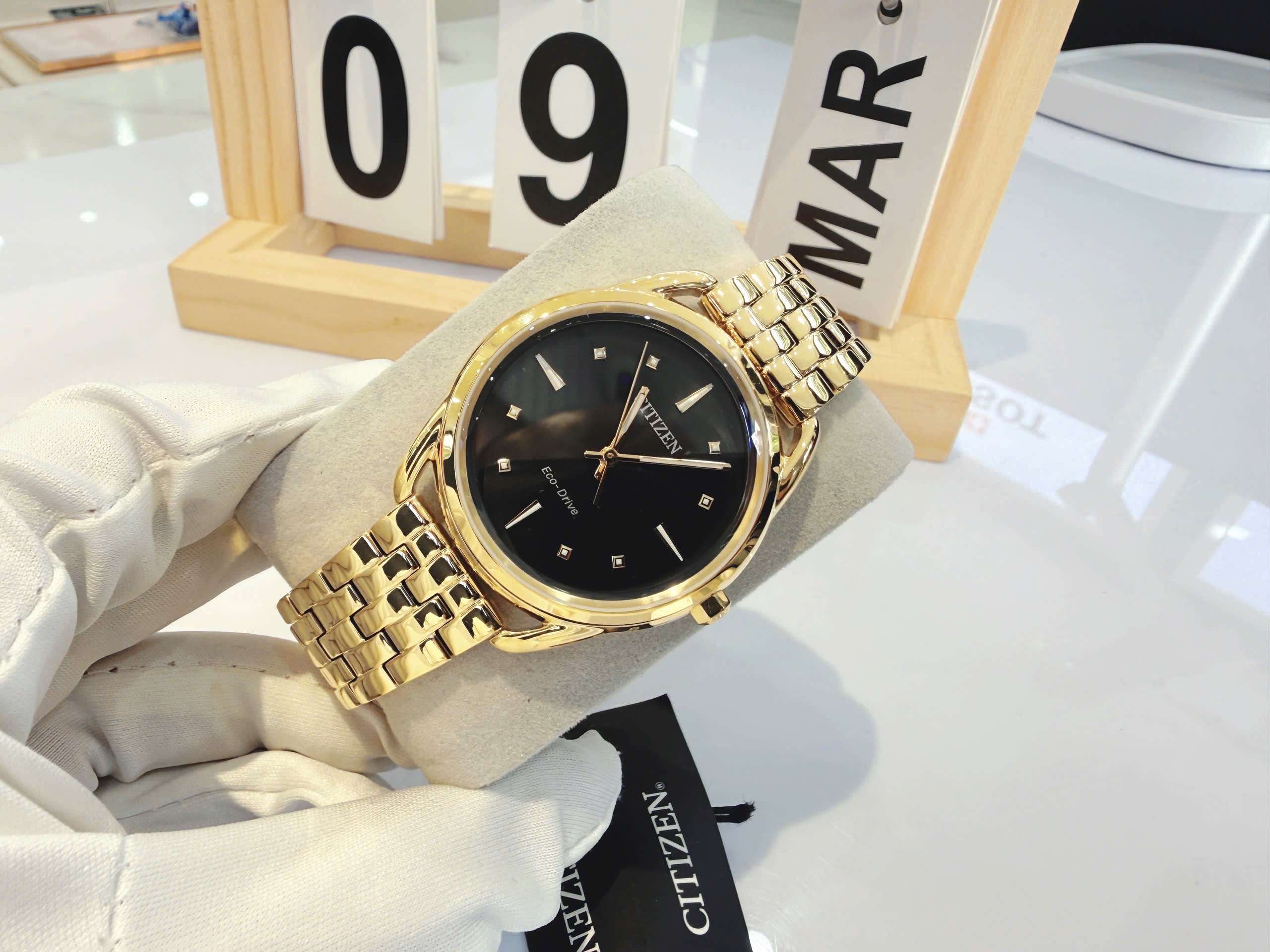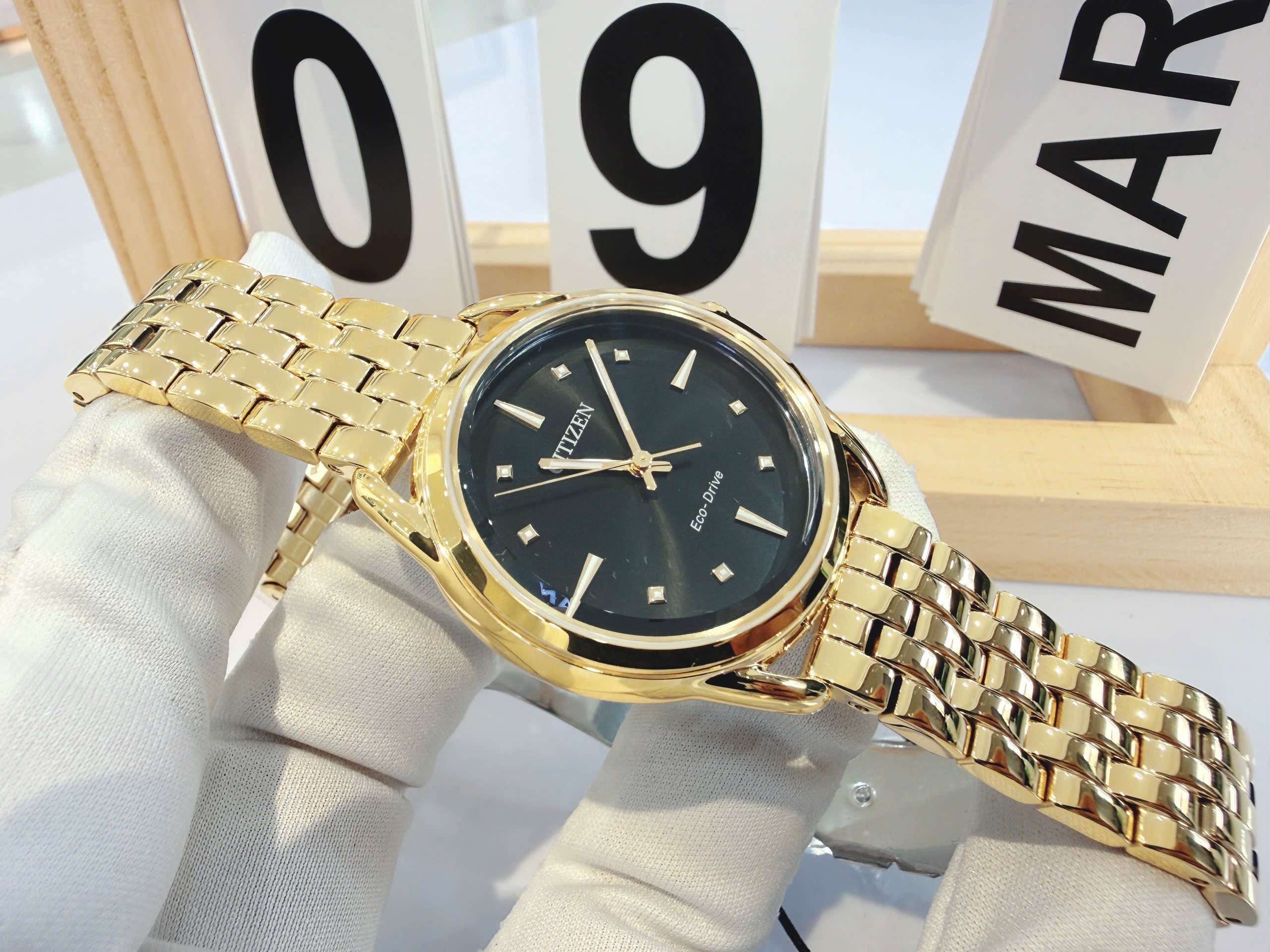 ĐỒNG HỒ NỮ CHÍNH HÃNG Citizen FE7092-50E Eco Drive Dress Classic Gold Black Dial