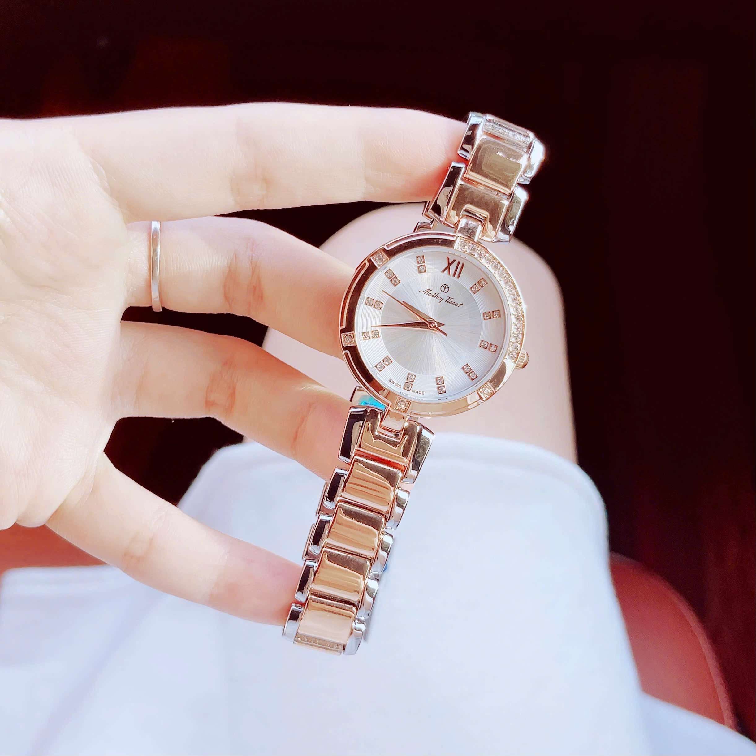 ĐỒNG HỒ NỮ CHÍNH HÃNG Mathey Tissot D2583RI Quartz Classic White Dial Swarovski Demi Gold Stainless Steel For Lady
