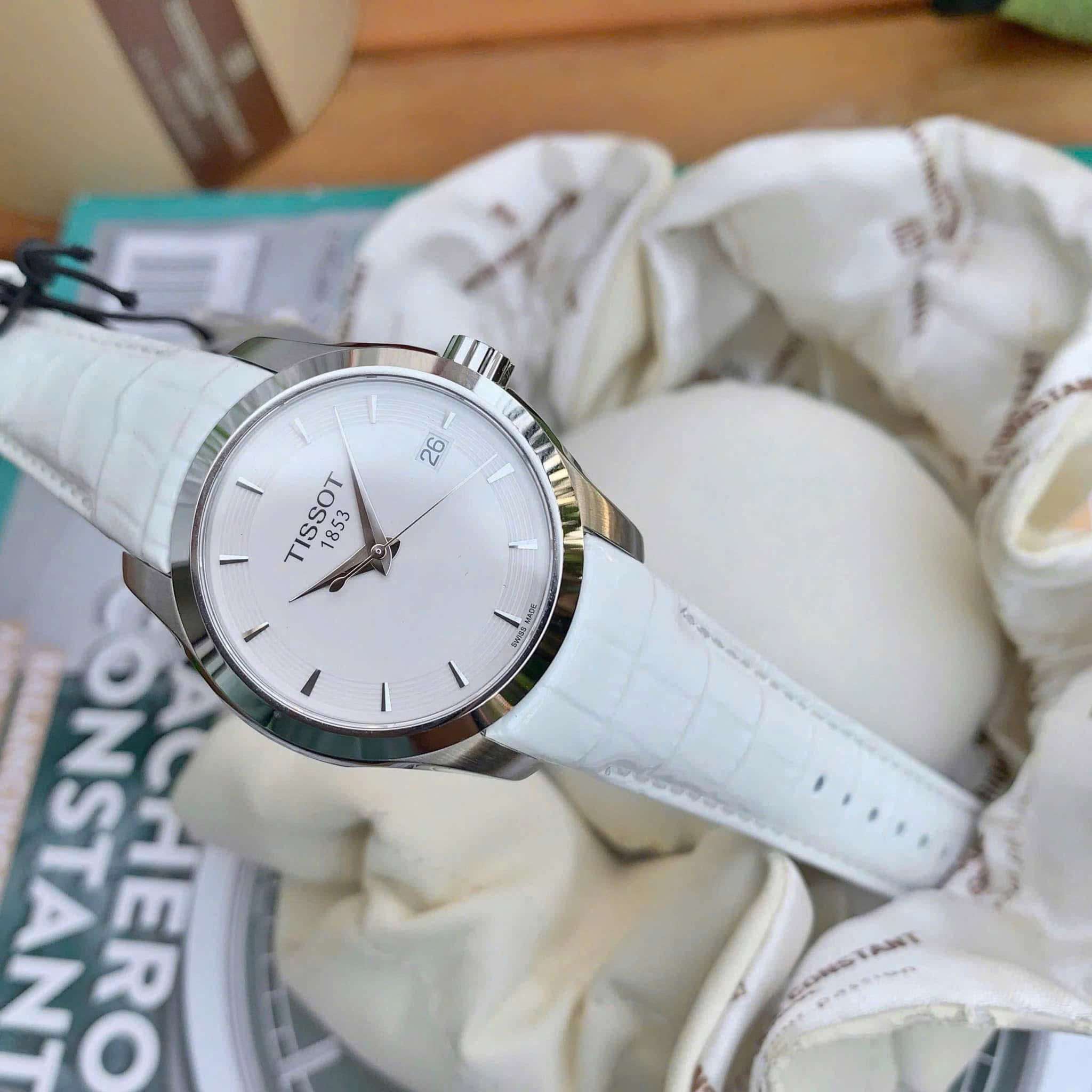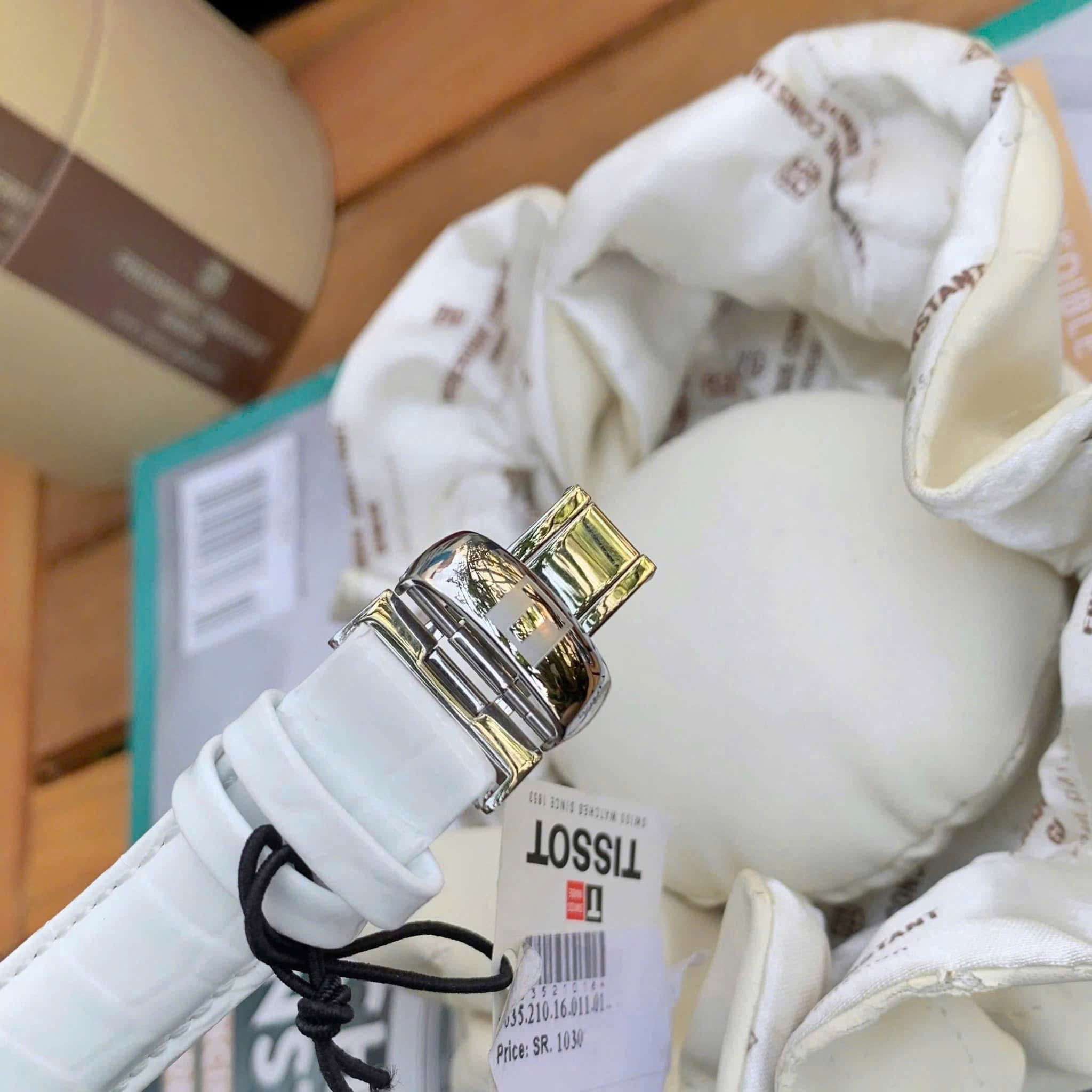 Tissot T035.210.16.011.00 là một mẫu đồng hồ nữ với thiết kế sang trọng và tinh tế, tông màu trắng làm chủ đạo.