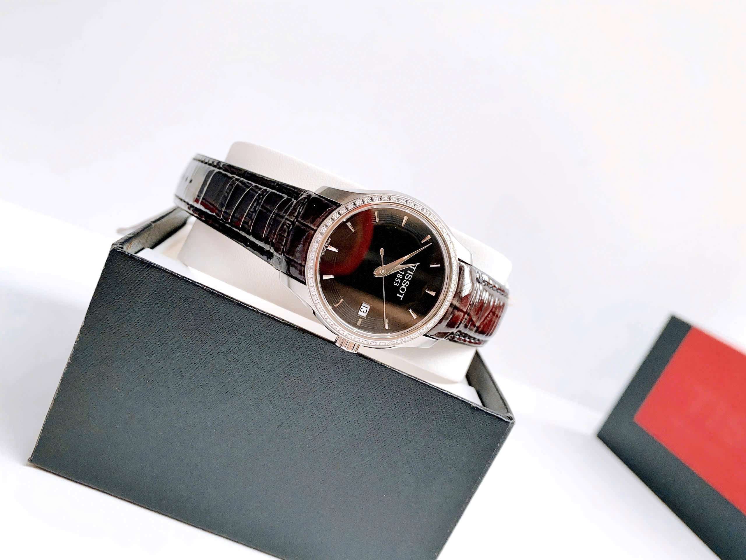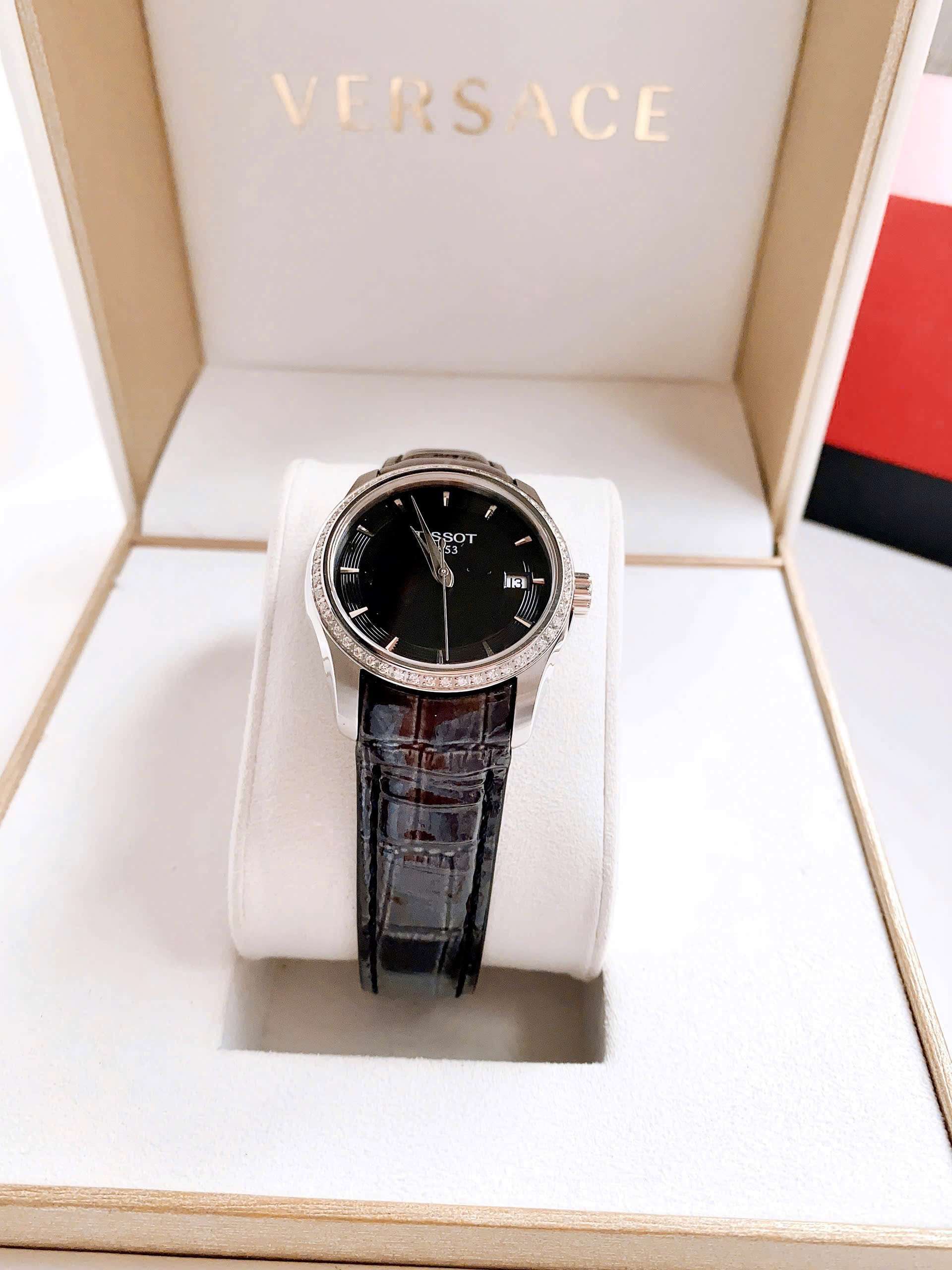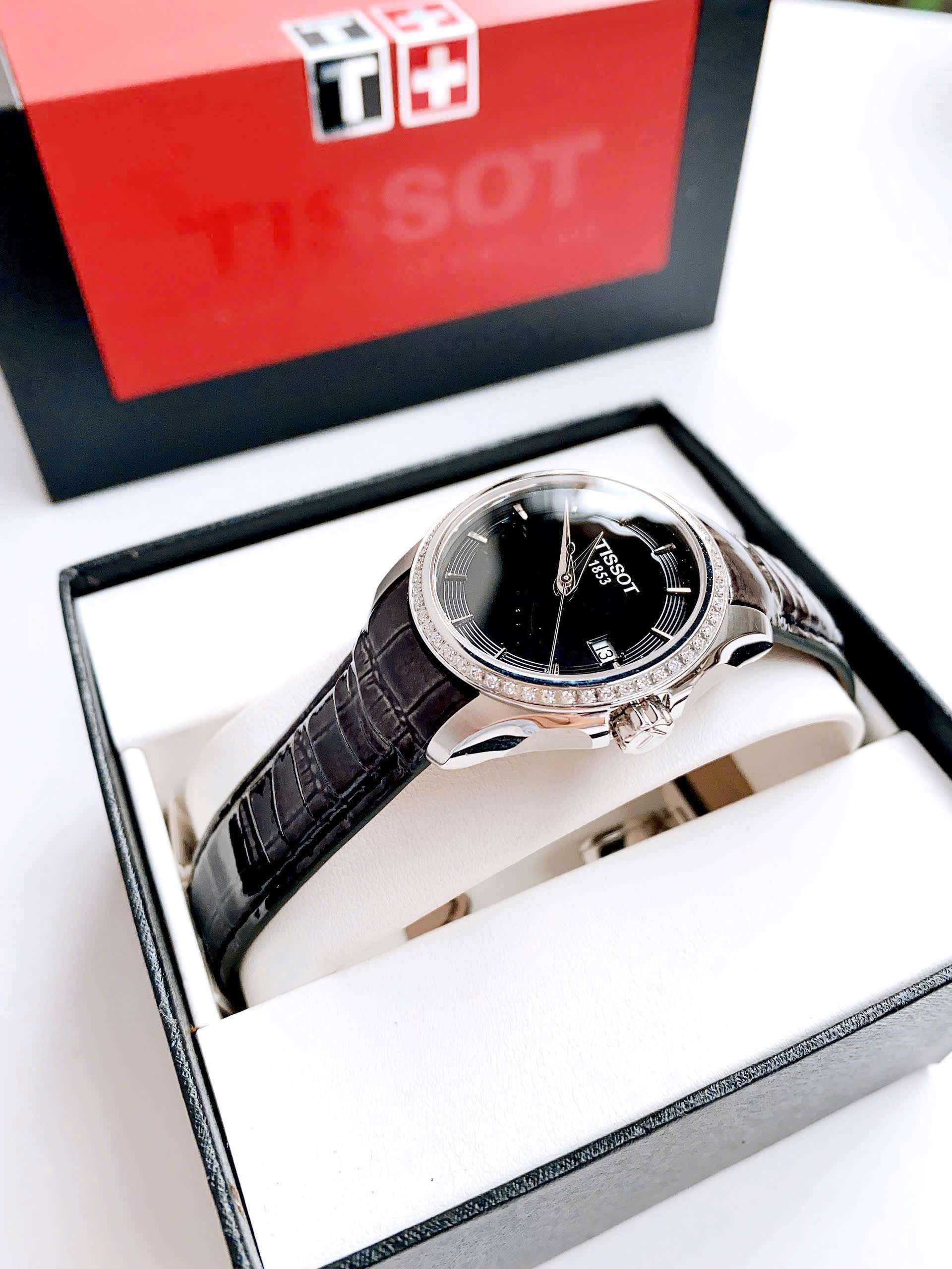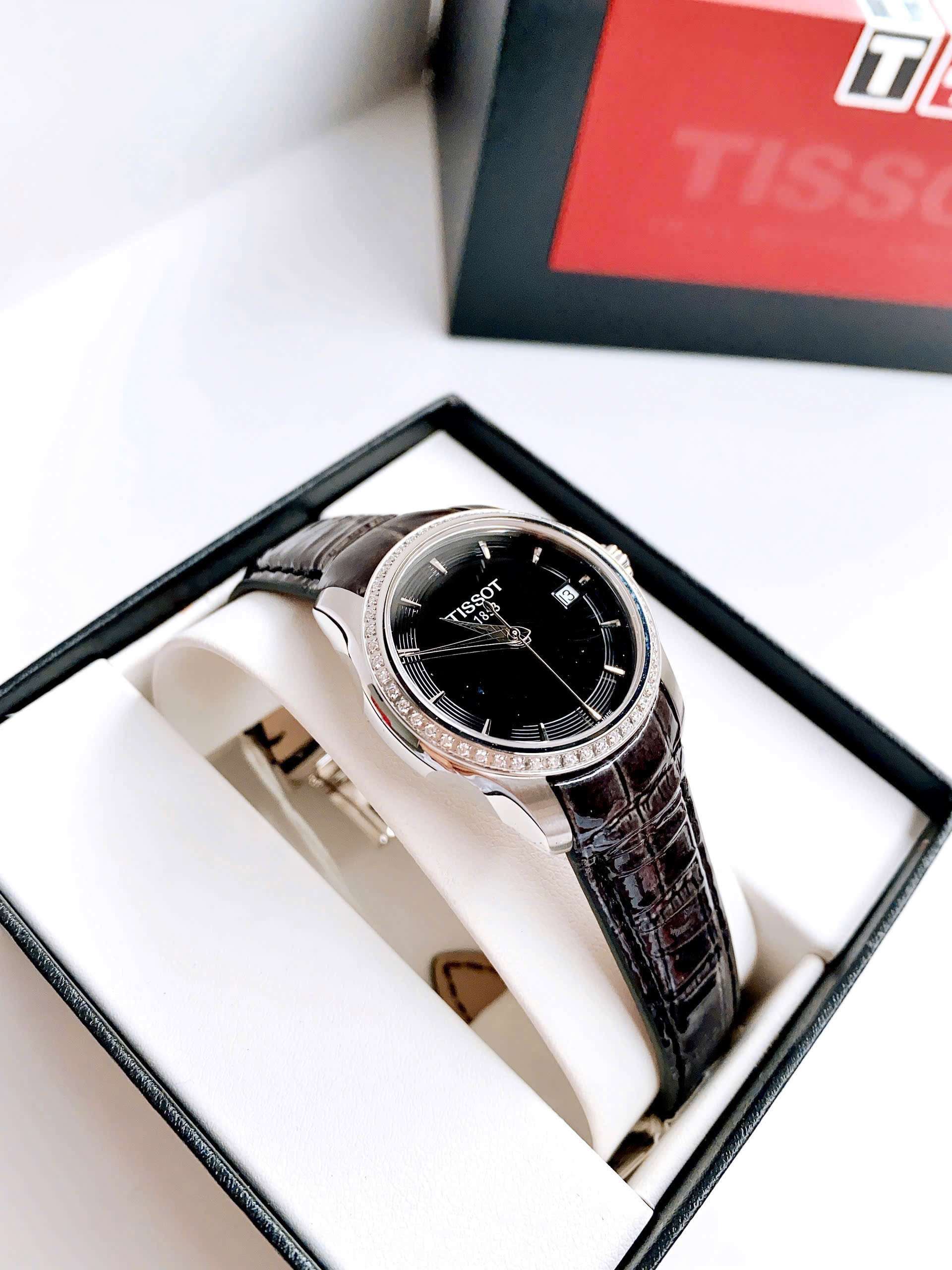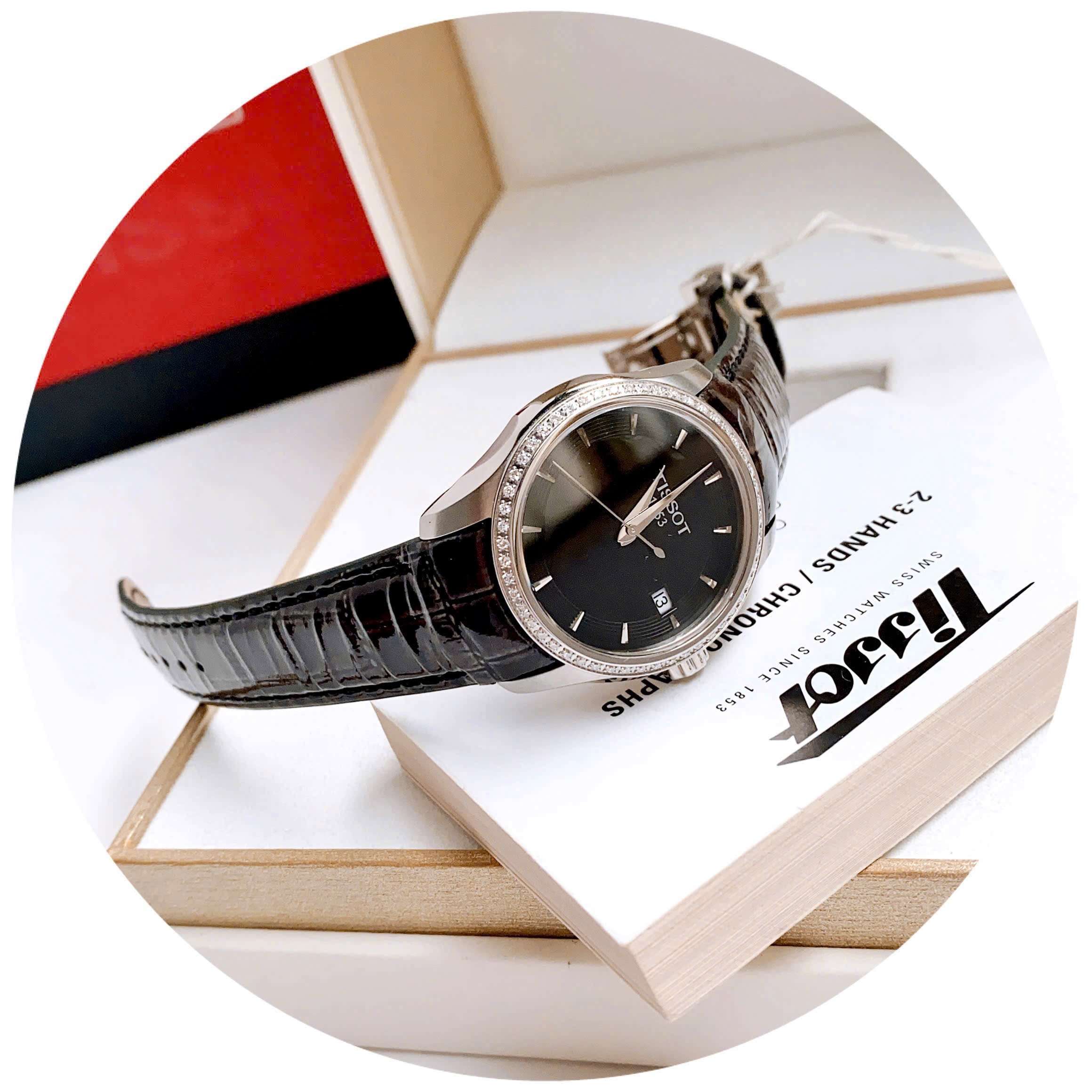 Tissot Couturier Black Dial Diamond Ladies Leather Watch T035.210.66.051.00 - Full Vành Kim Cương Cực Hiếm