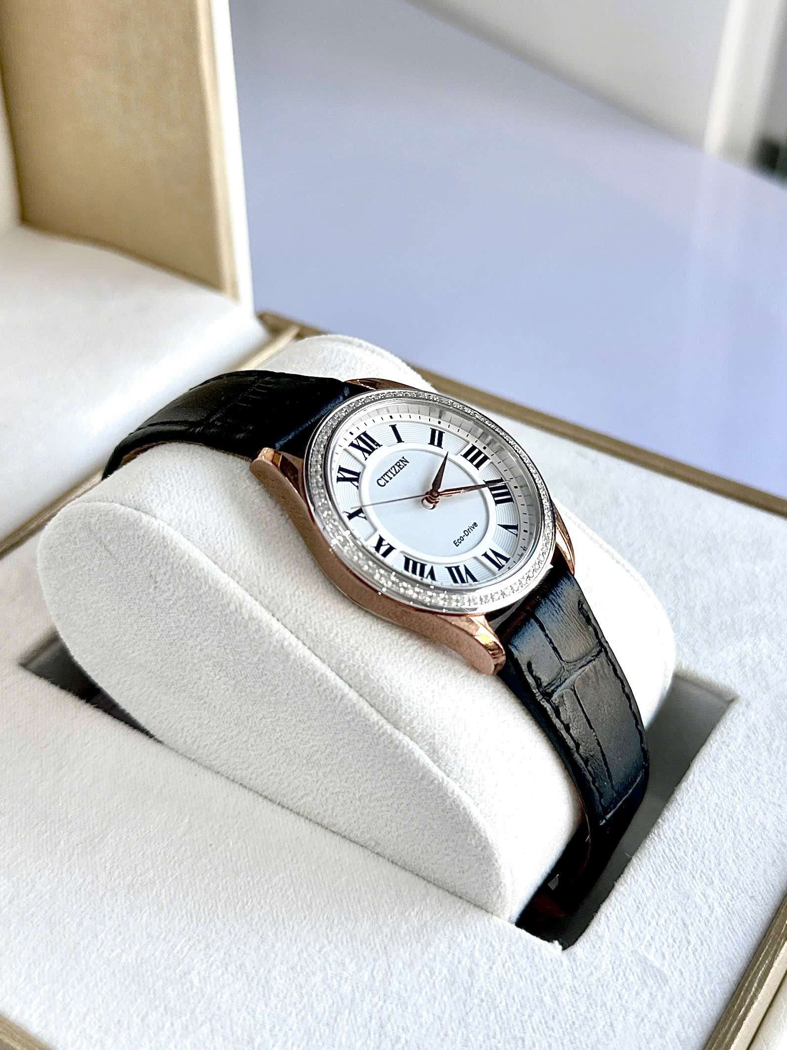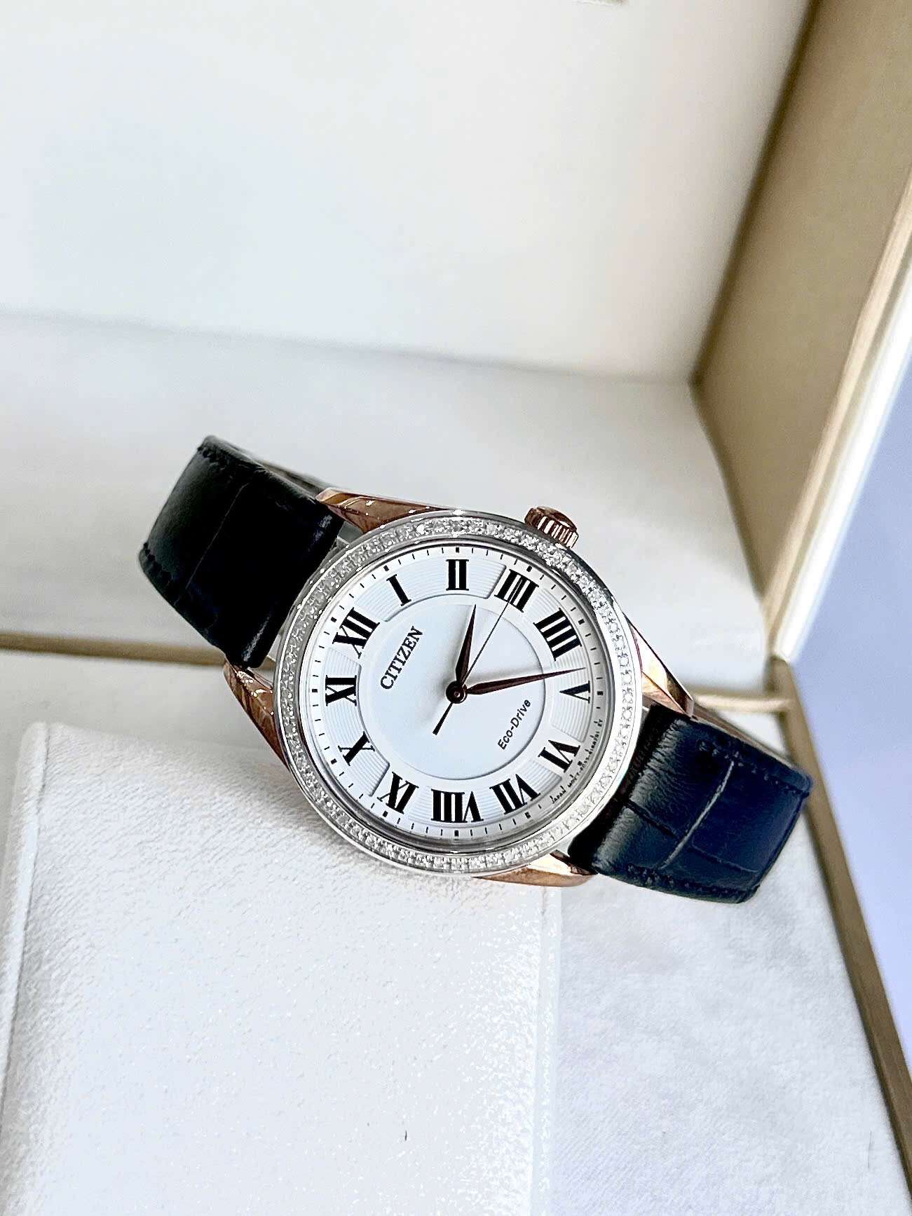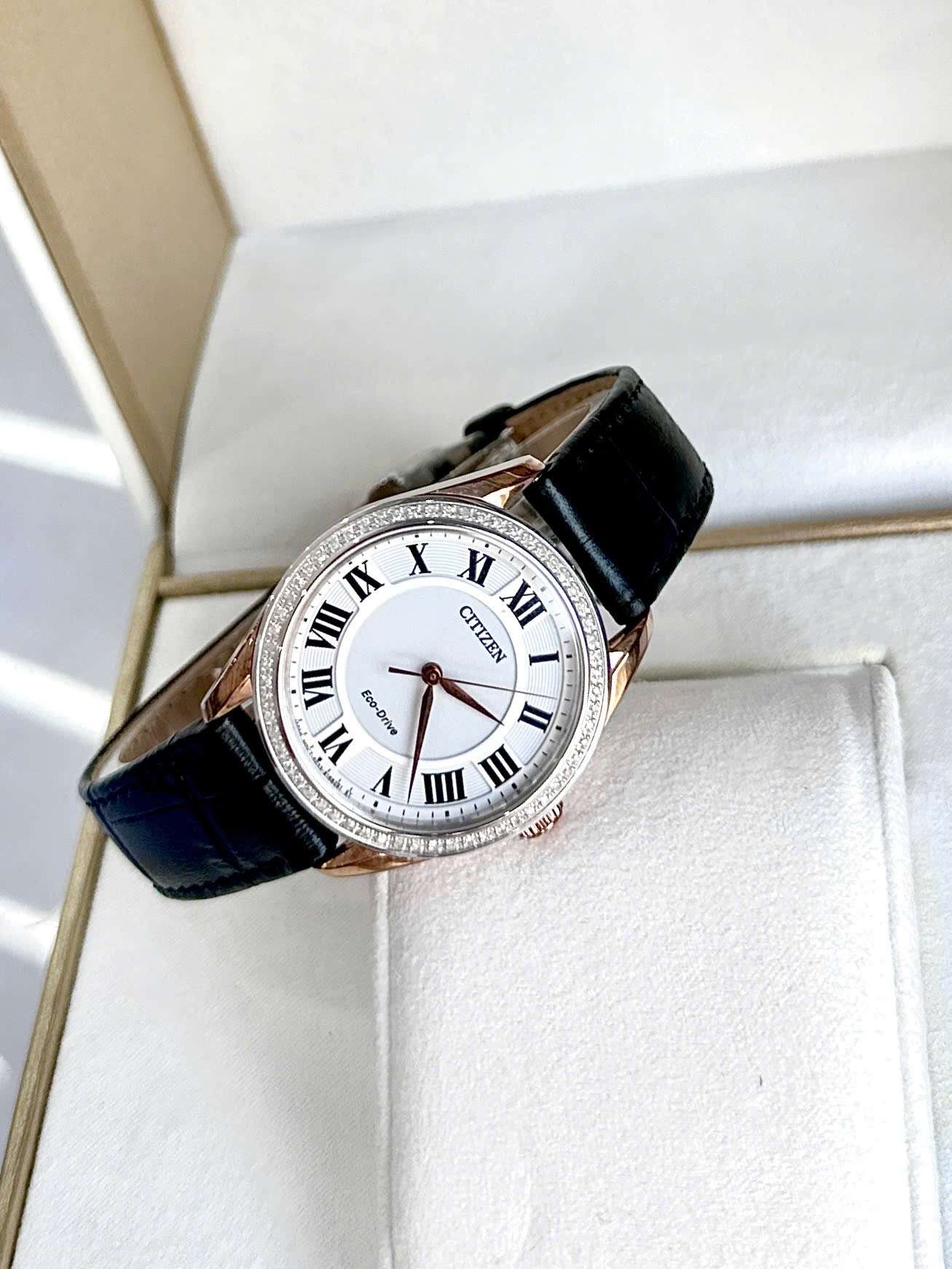 Đồng Hồ Nữ Citizen Arezzo EM0883-05A Eco Drive Size 32 Diamond Rose Gold