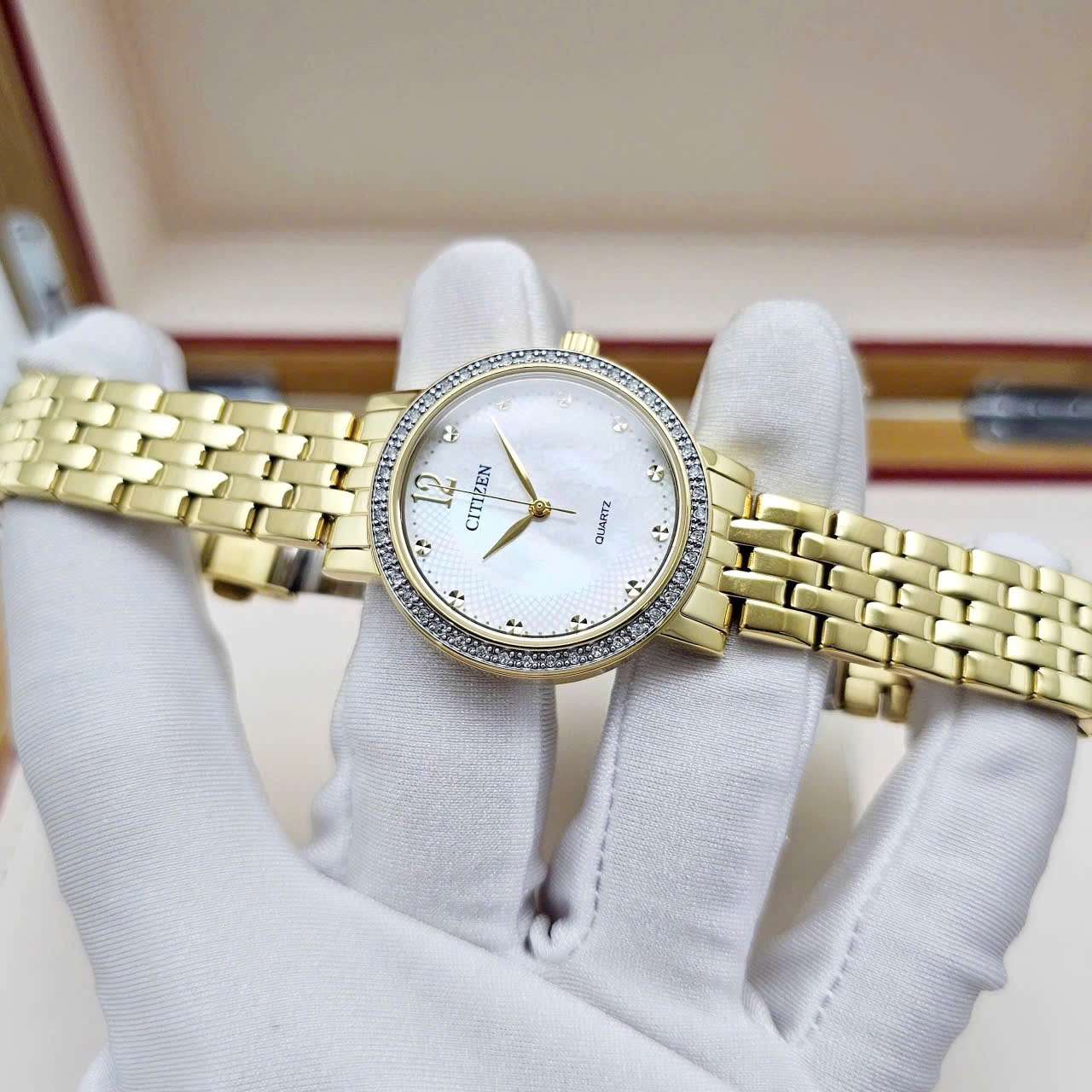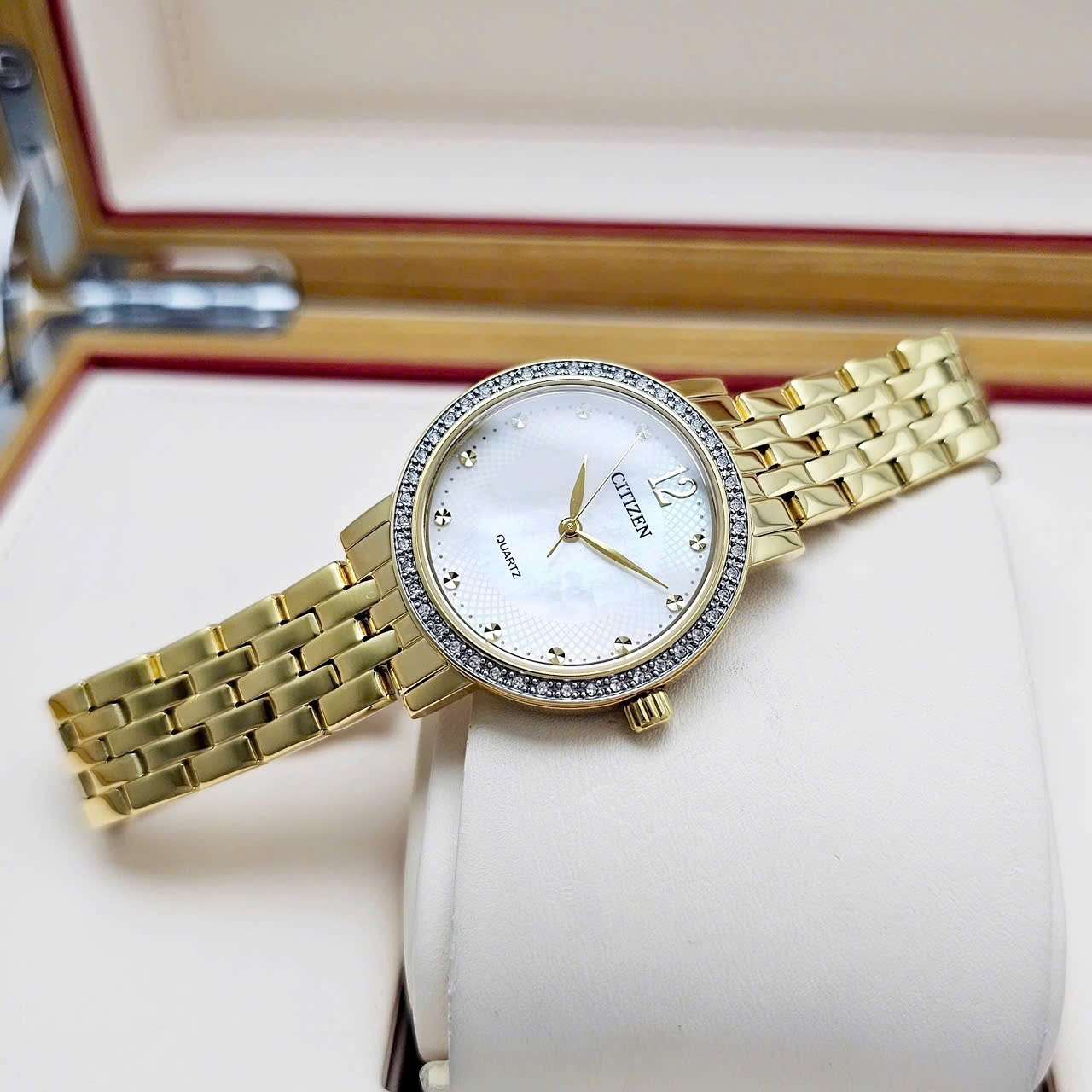 Đồng Hồ Nữ Citizen EL3102-50D Quartz Size 31.2 Đá Swarovski Gold Case