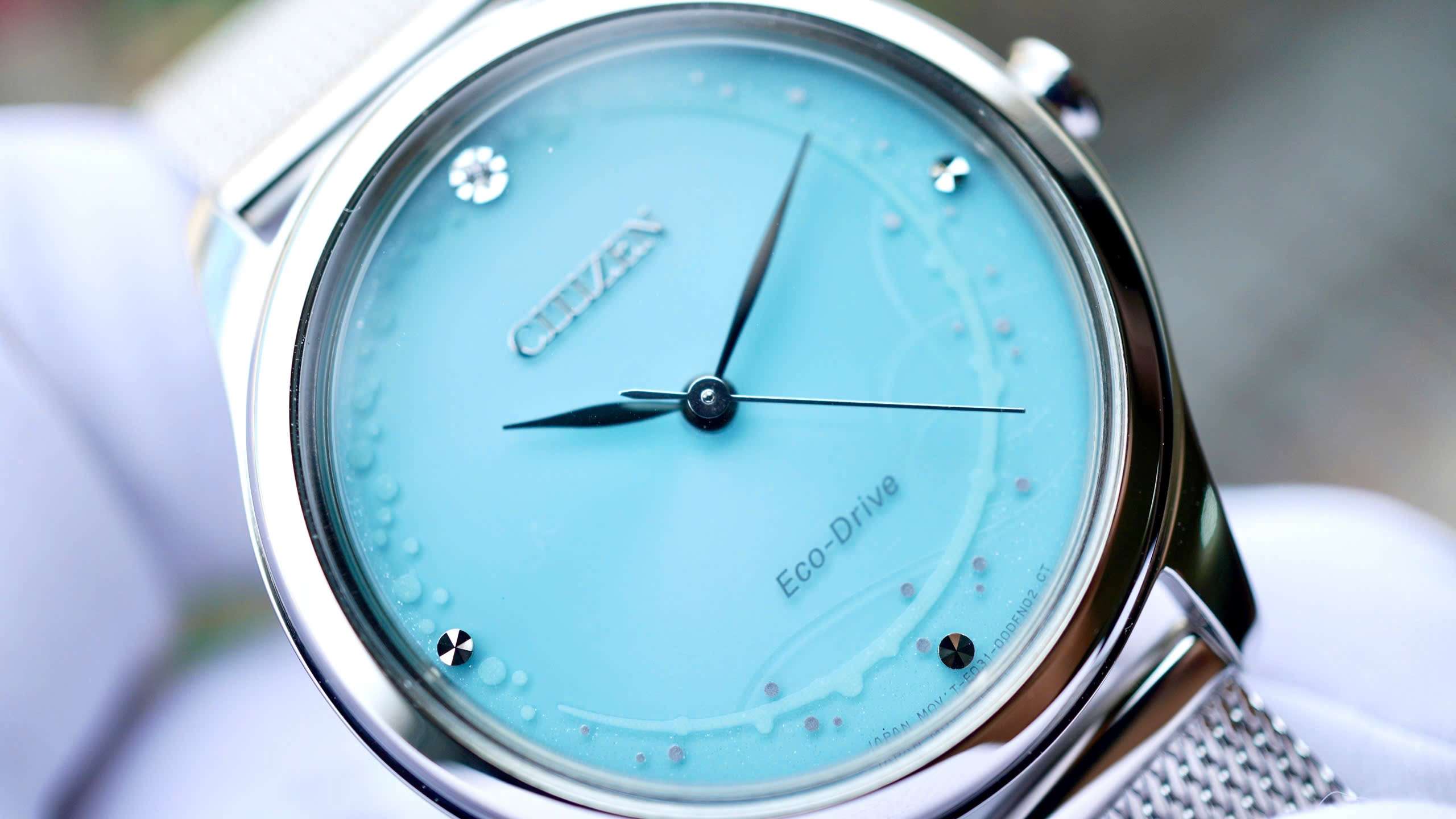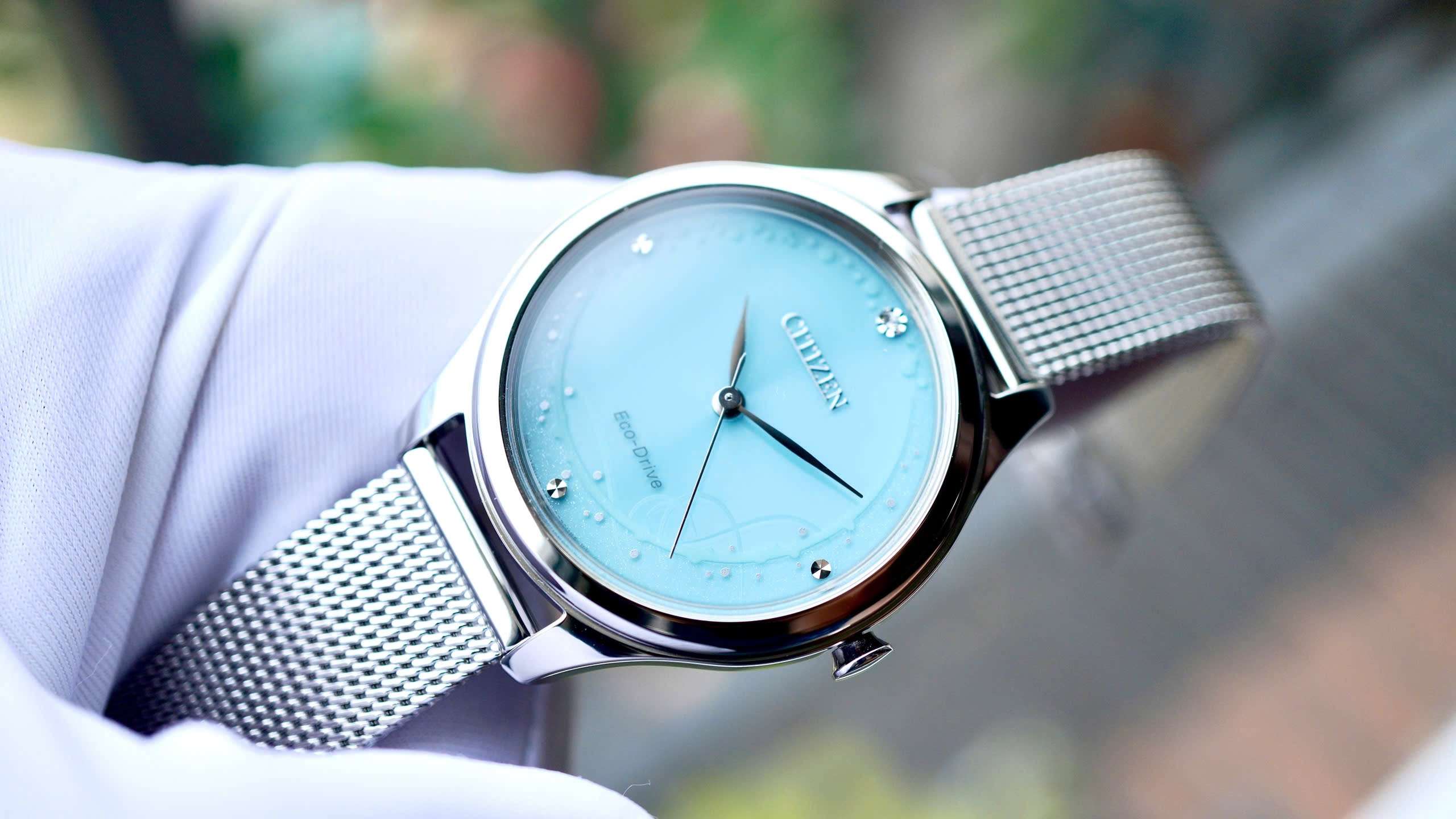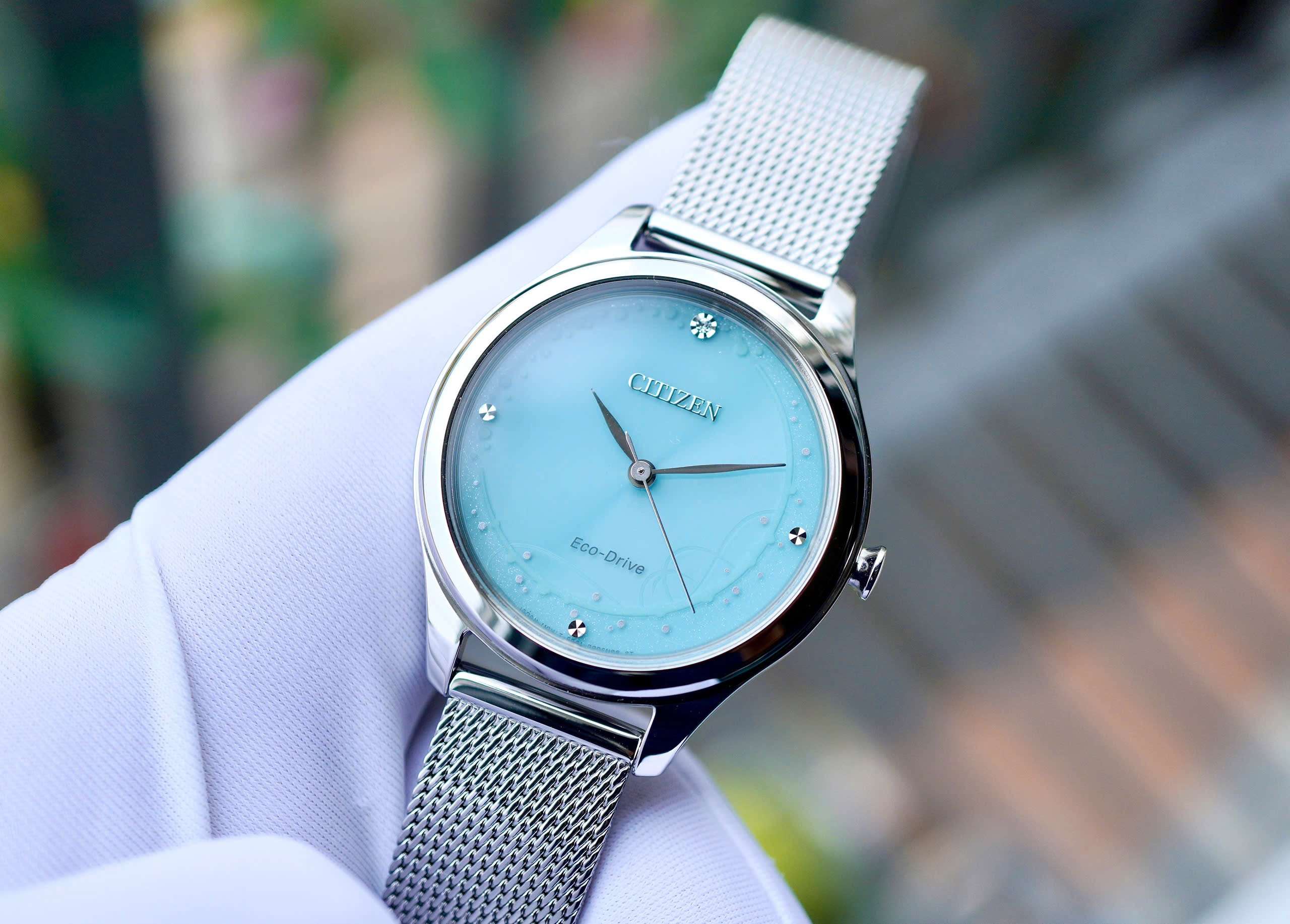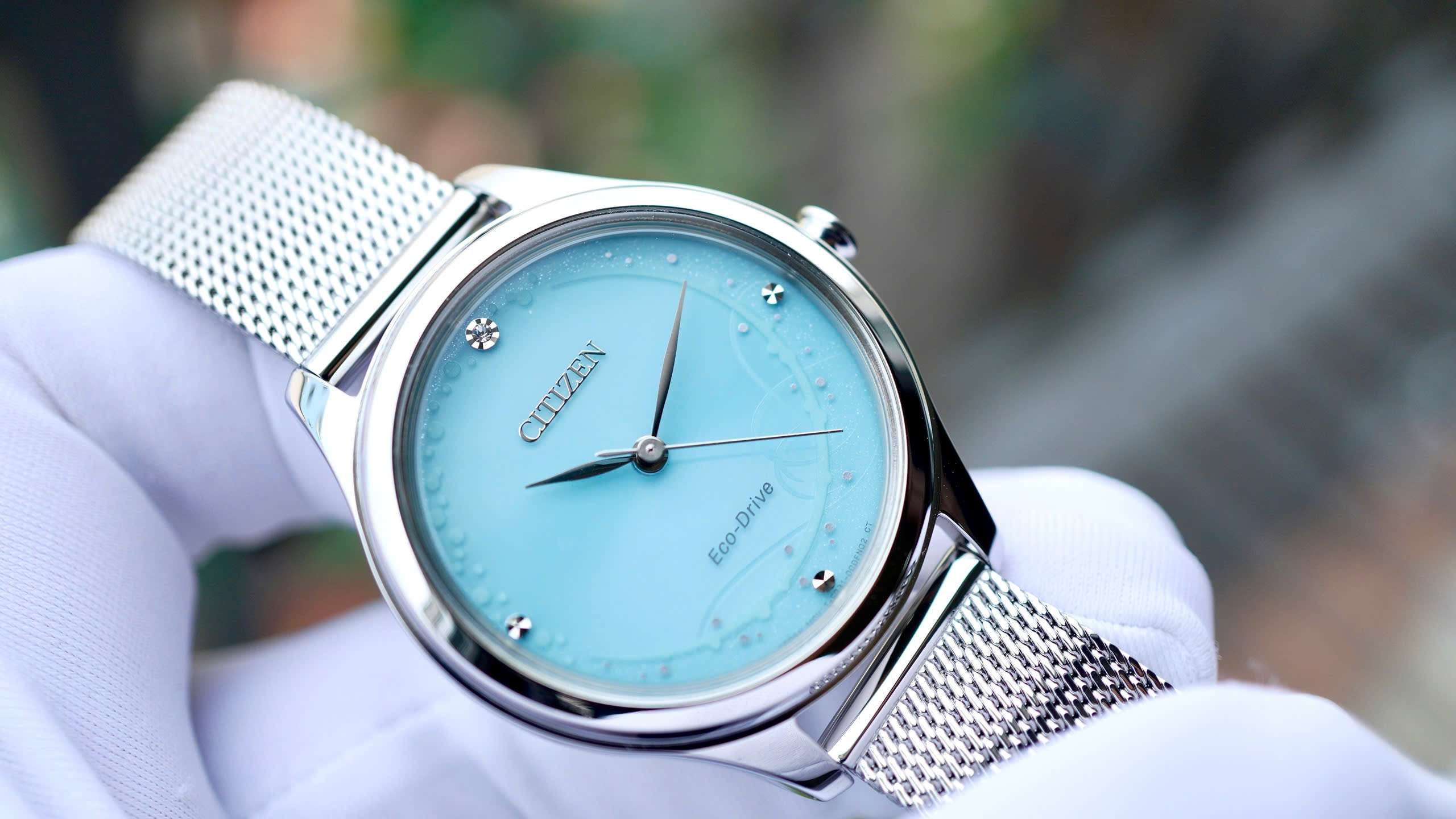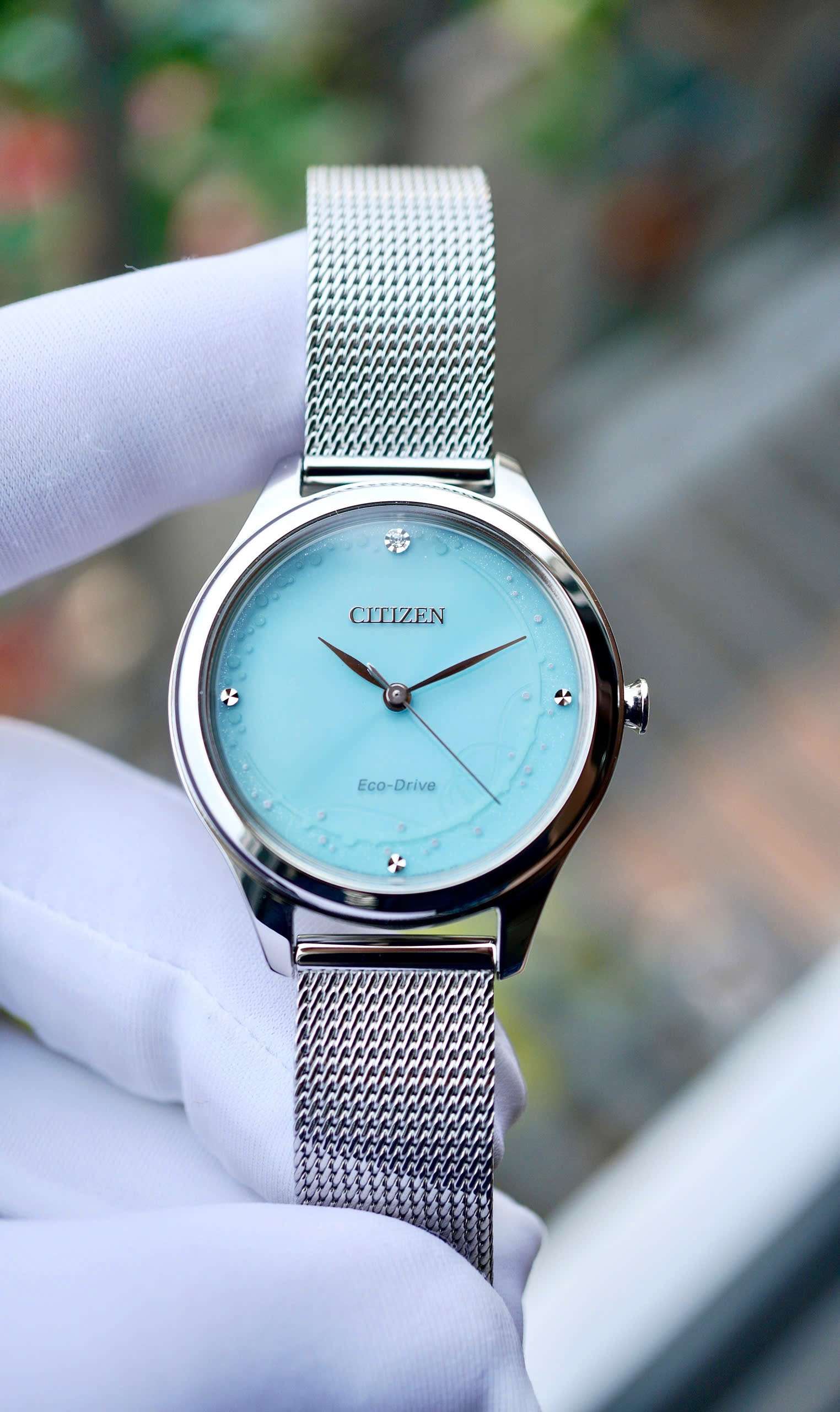 Đồng Hồ Nữ Citizen EM0501-89M Eco Drive Size 32 Ice Blue Sunburst Dial Mesh