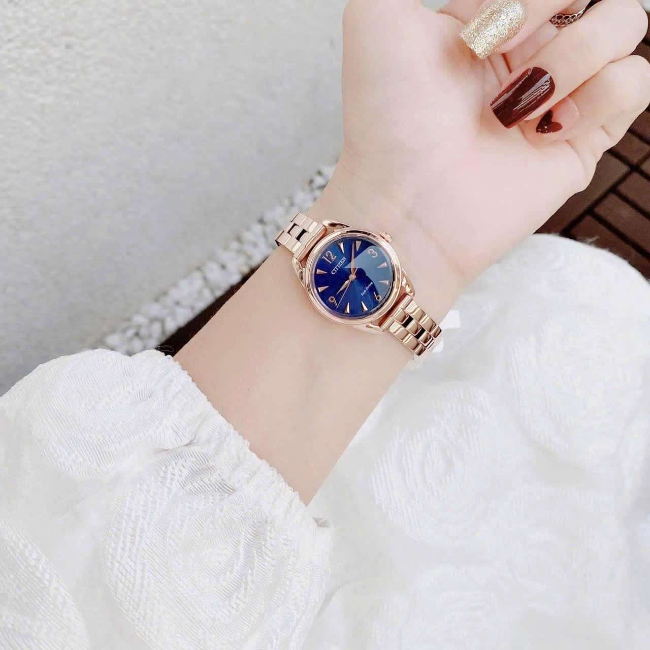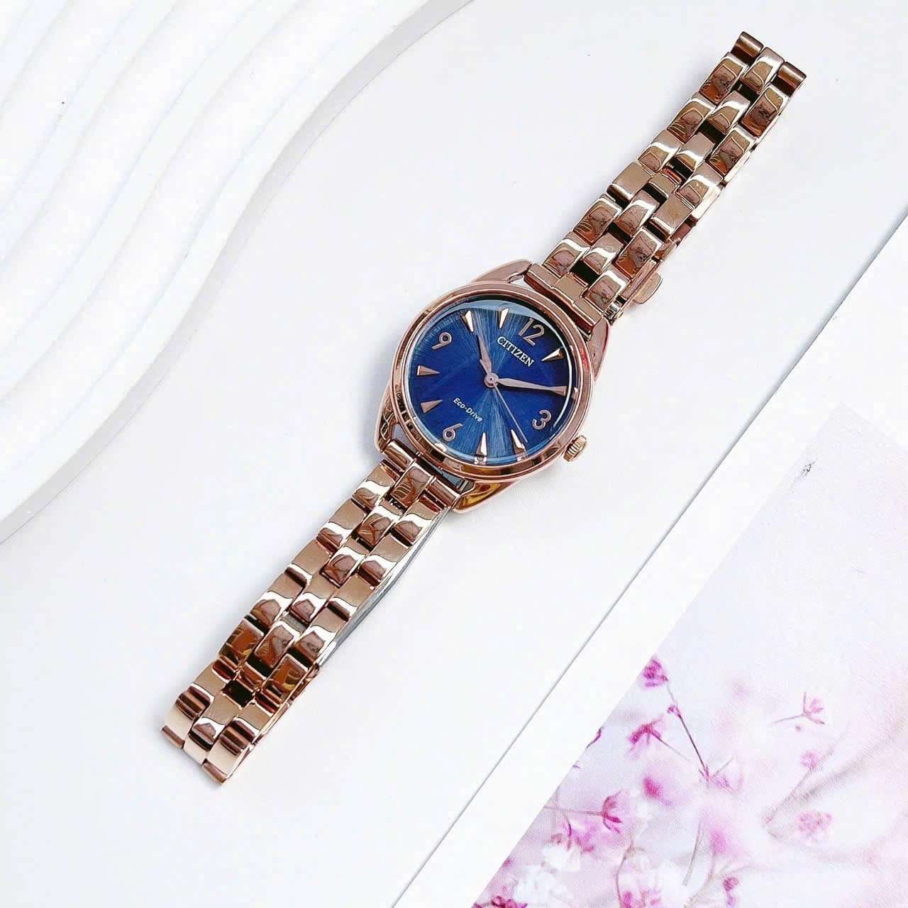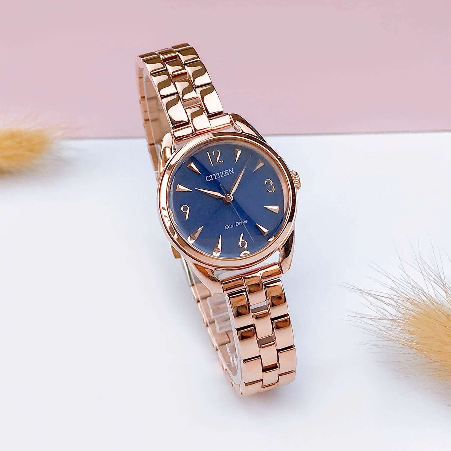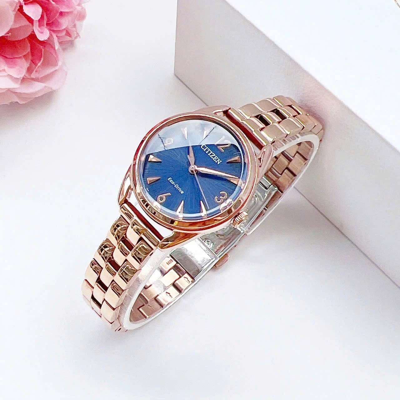 Đồng Hồ Nữ Citizen EM0688-78L Eco Drive Size 27 Blue Dial Rose Gold Tone