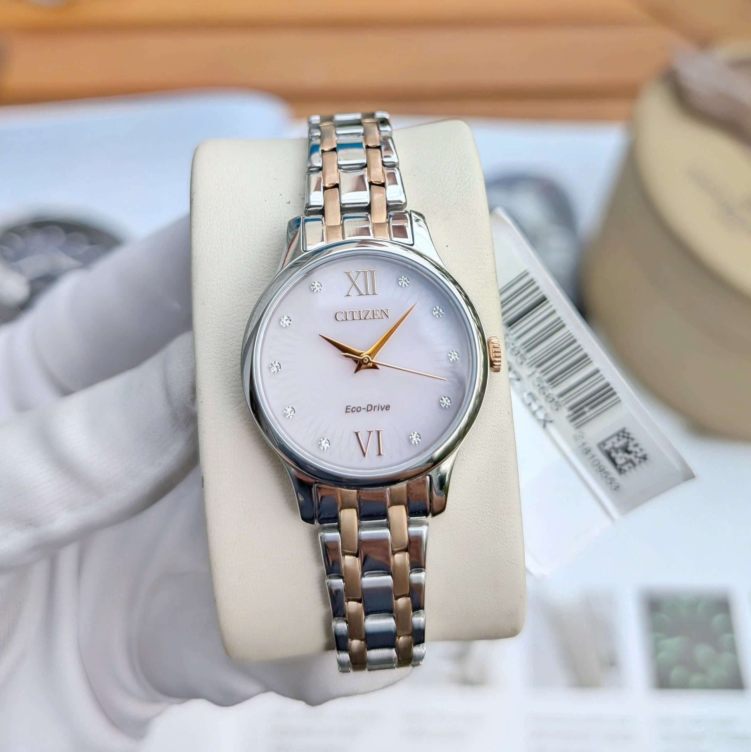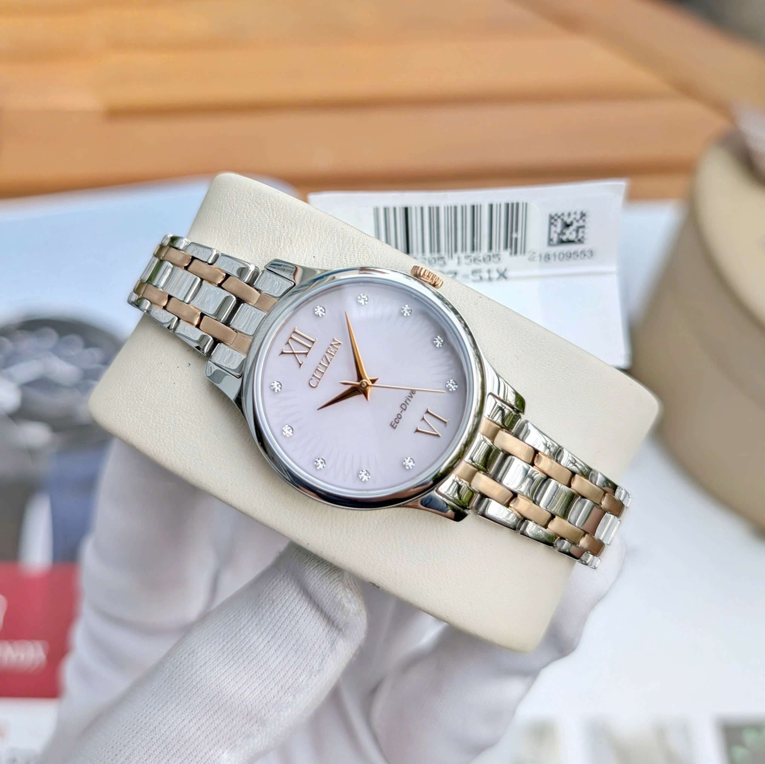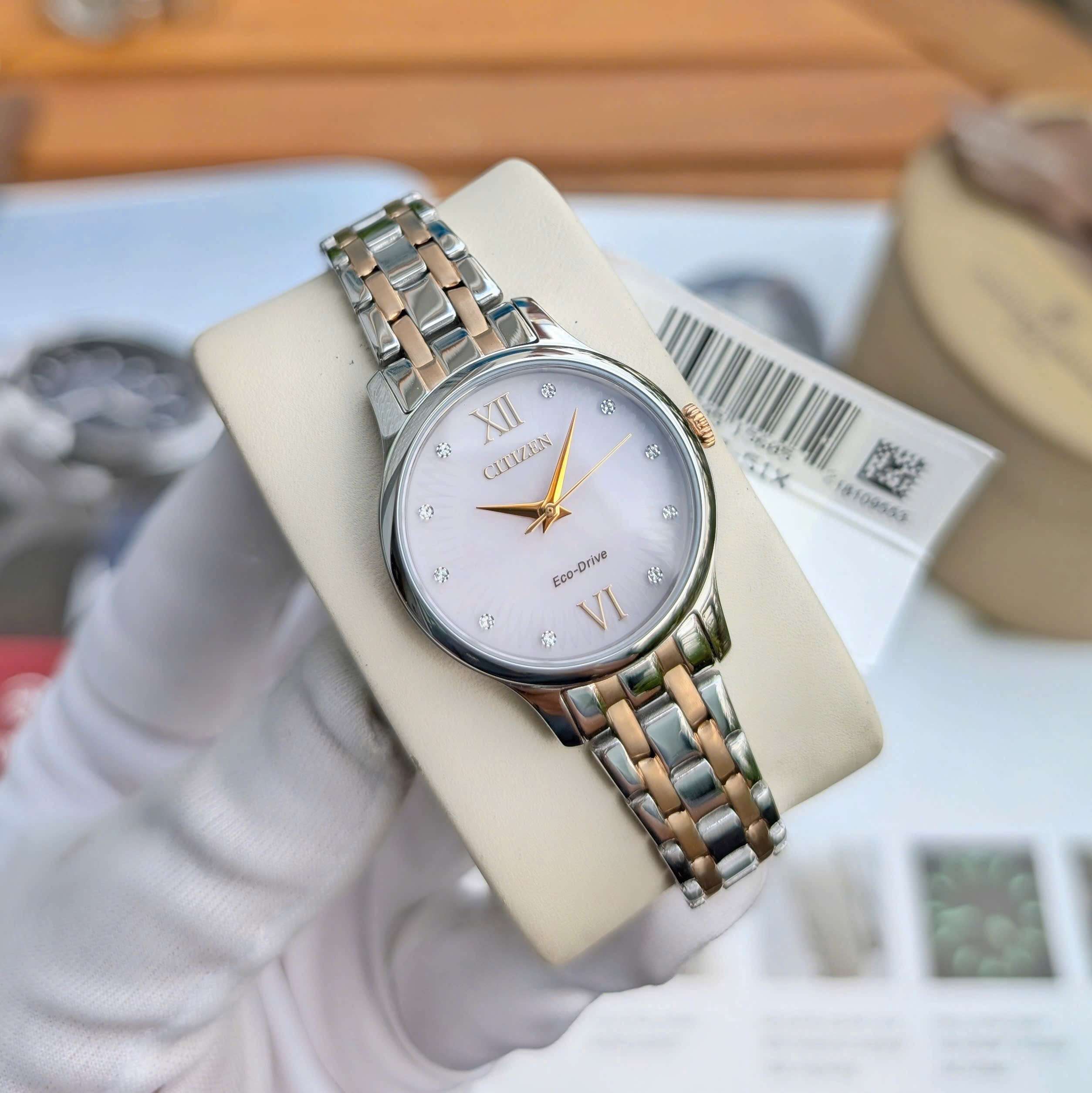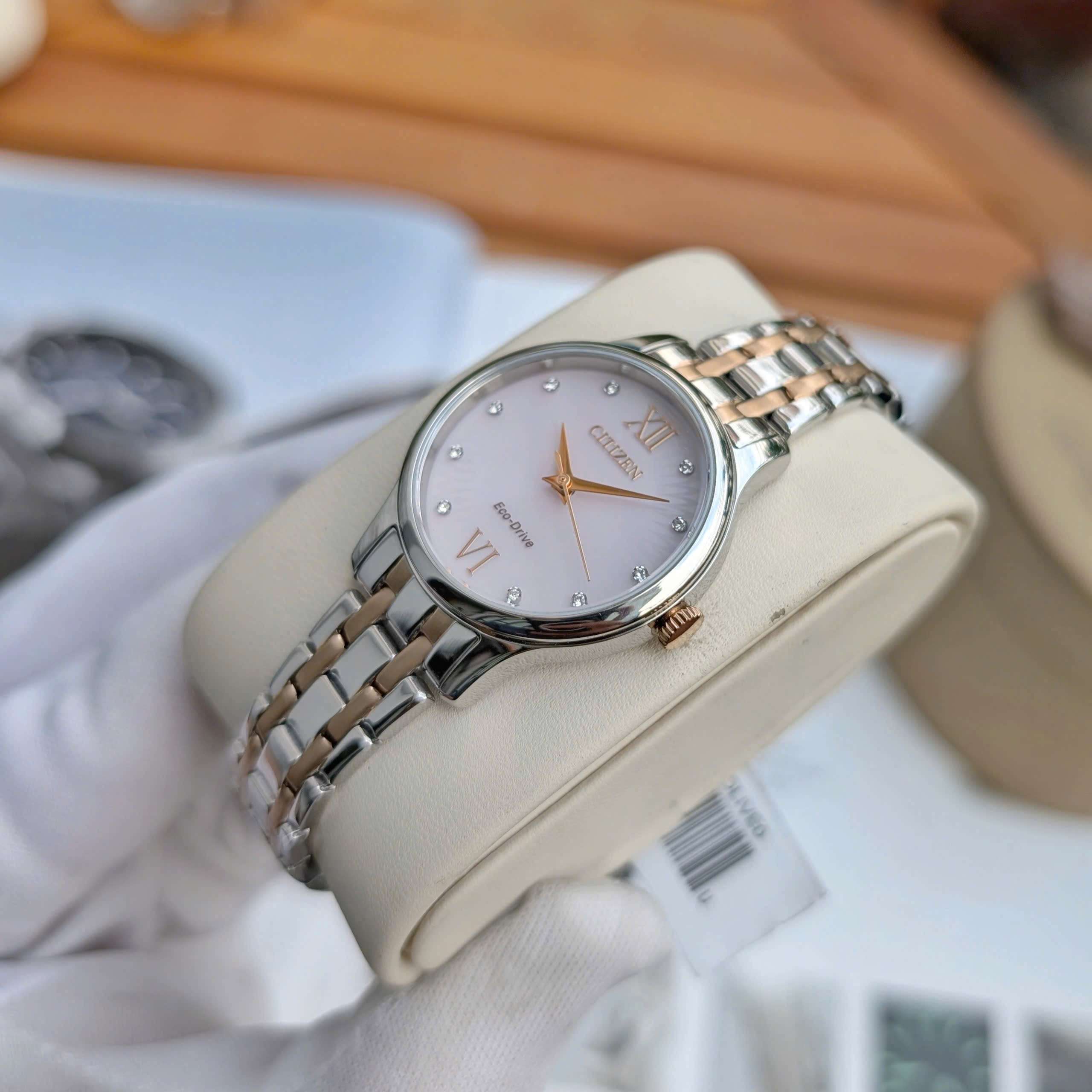 Đồng Hồ Nữ Citizen EM0897-51X Eco Drive Size 30 Diamond Demi Rose Gold
