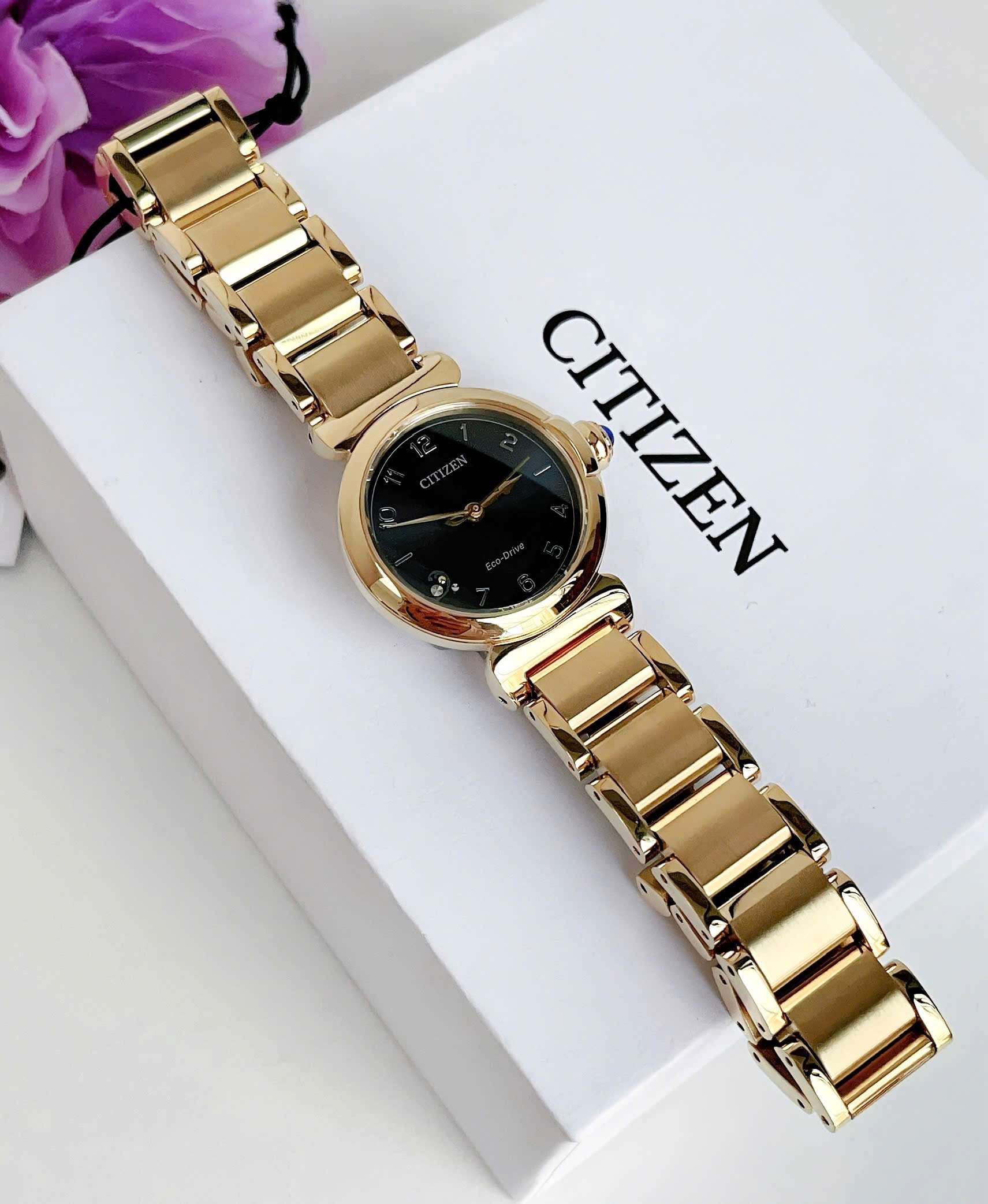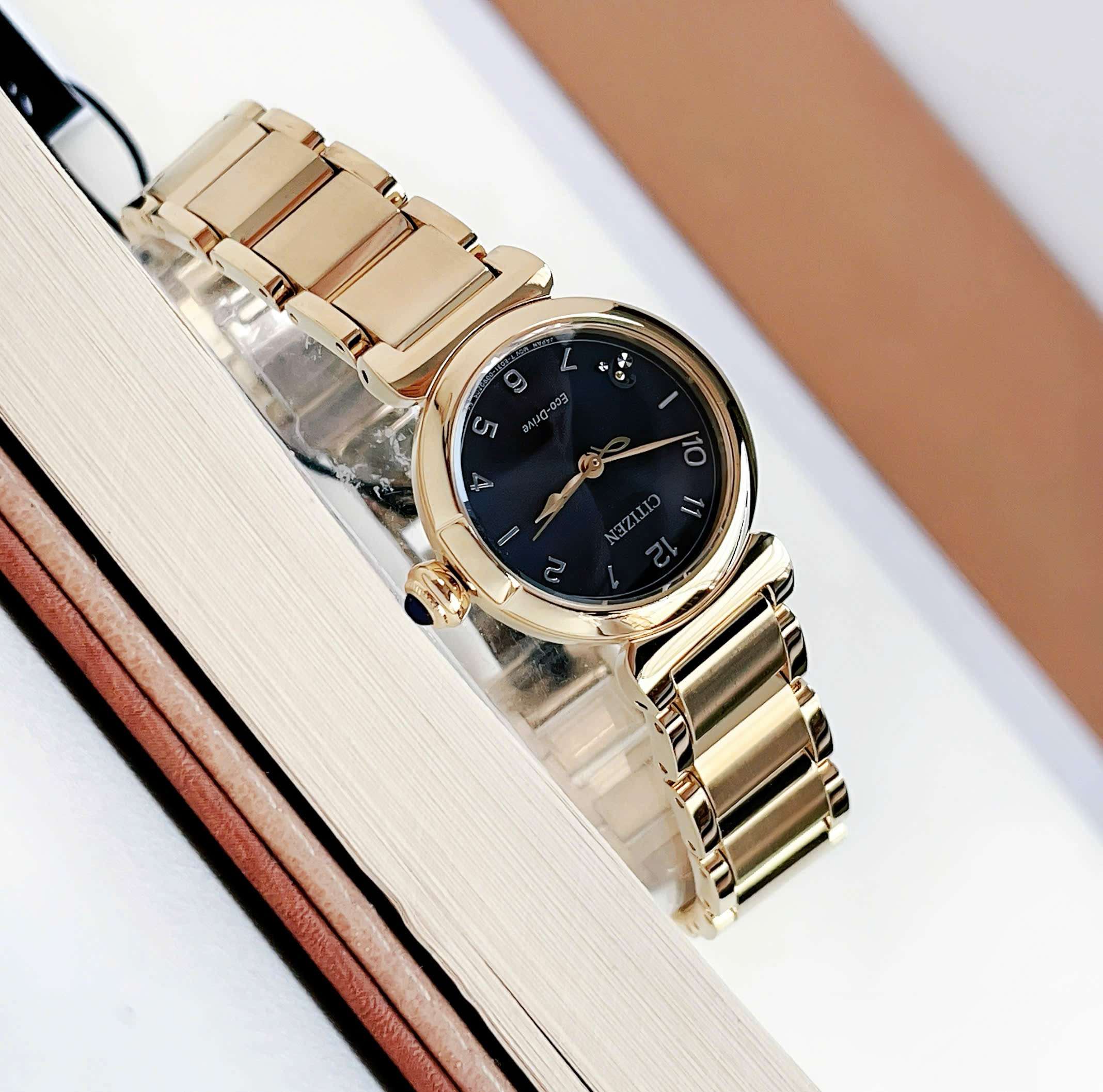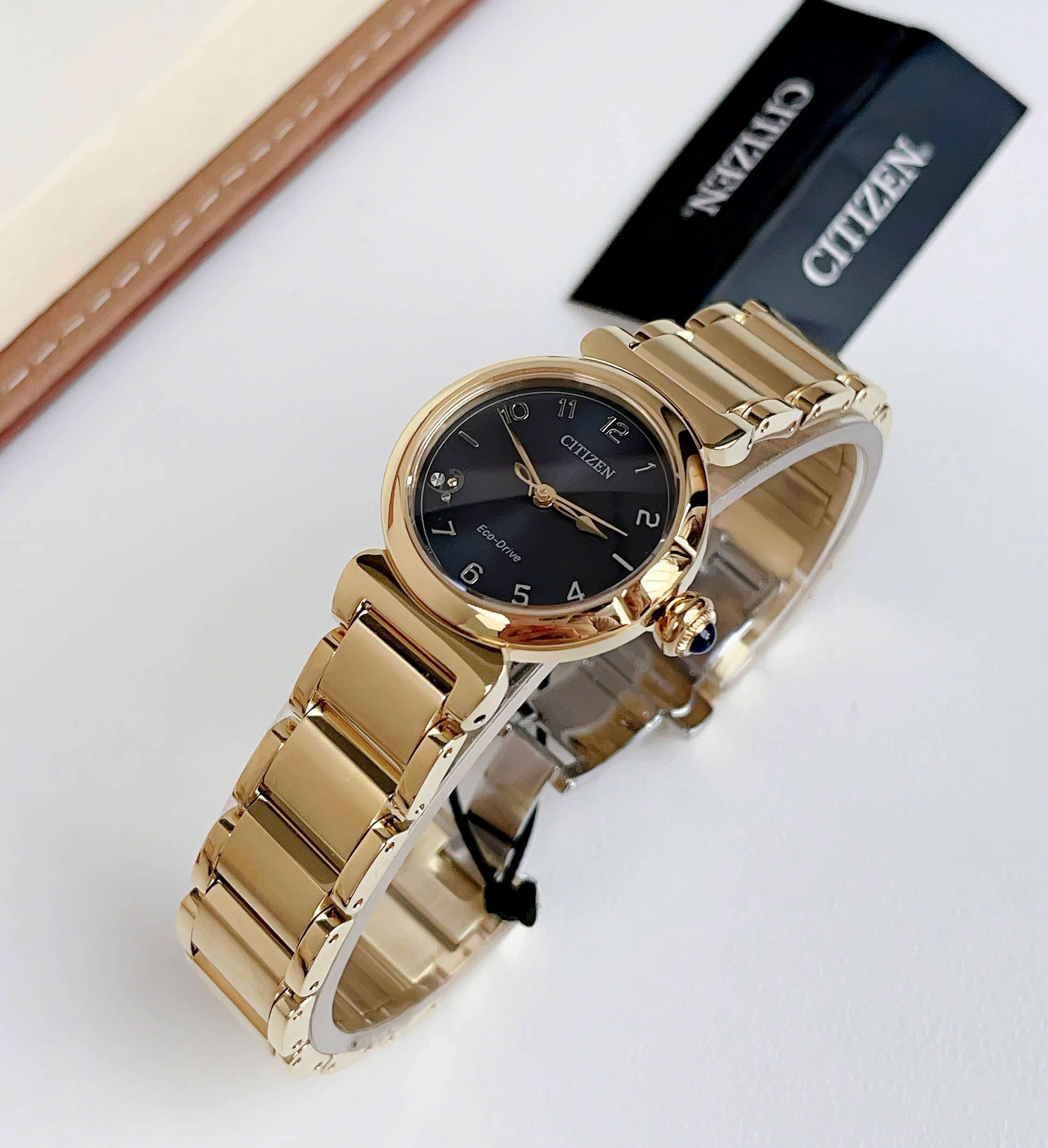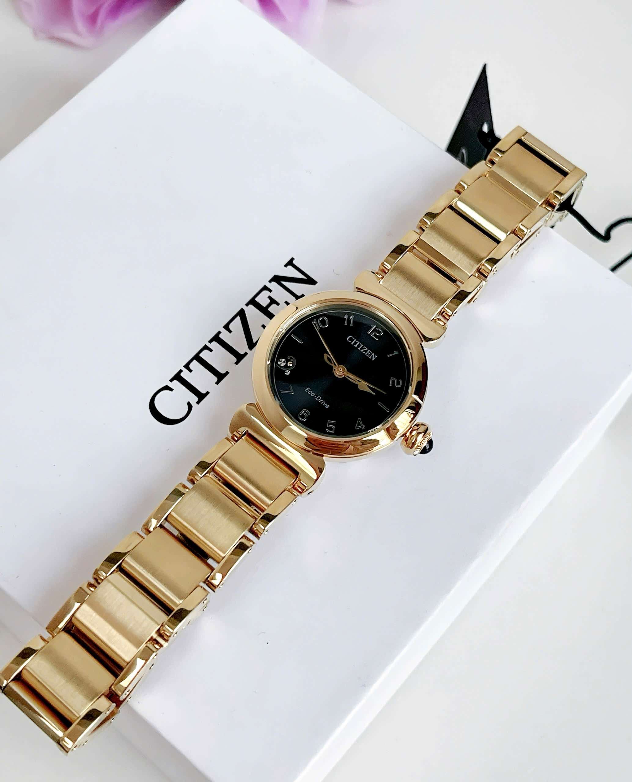 Đồng Hồ Nữ Citizen EM1132-88H Eco Drive Size 26 L Mae Gold Black Sapphire Dial