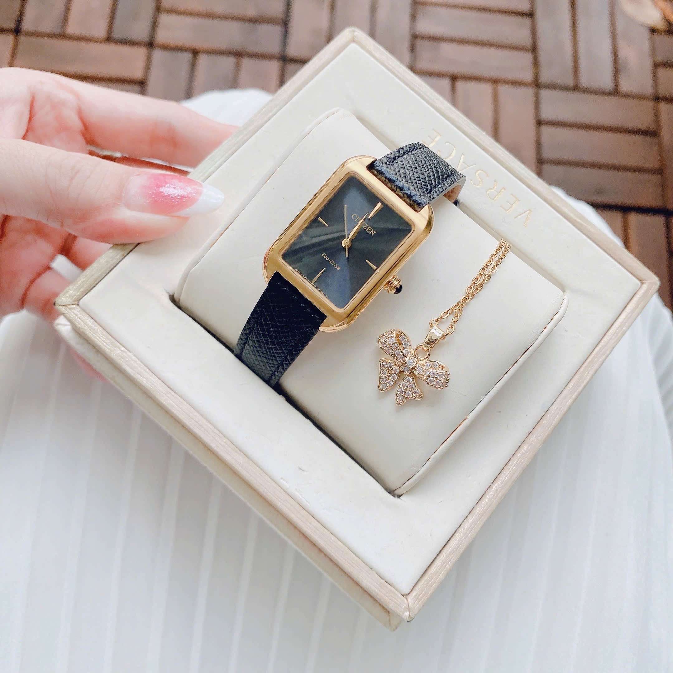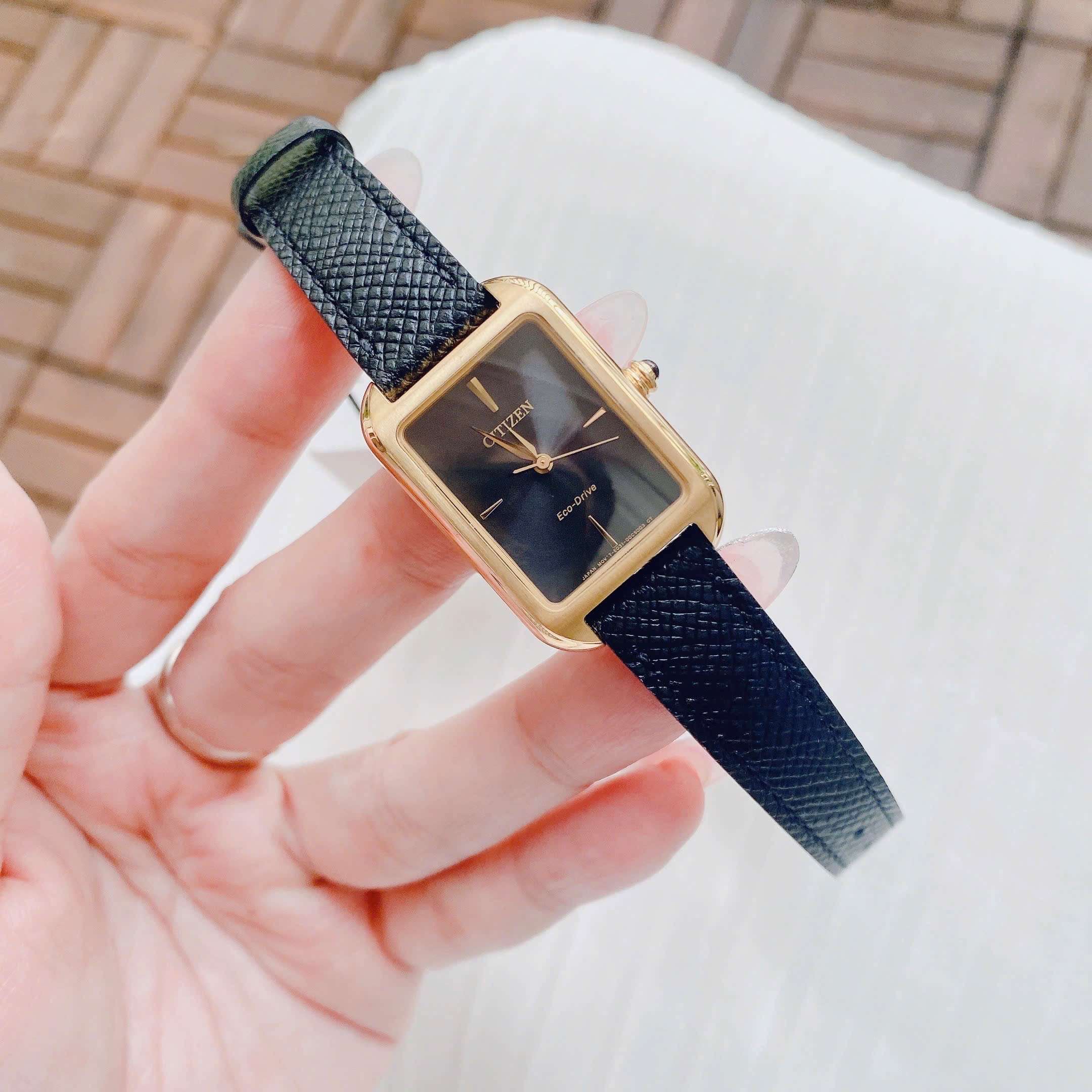 Đồng Hồ Nữ Citizen EM1192-01E Eco Drive Size 23.5x35 Mặt Chữ Nhật Dây Da Vân Cá