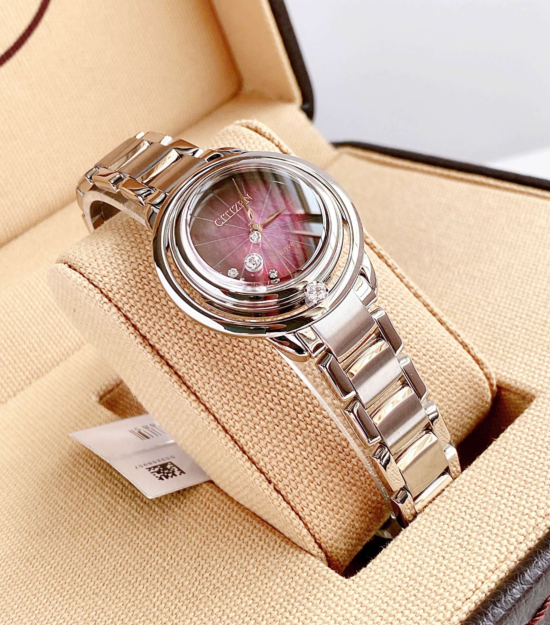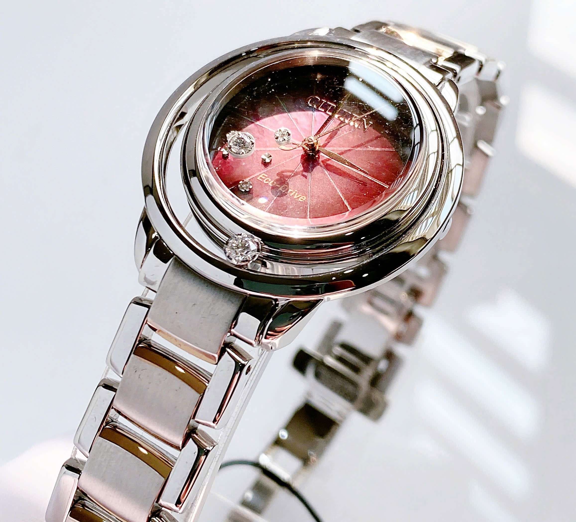 Đồng Hồ Nữ Citizen EW5529-55W Eco Drive Size 32 Red Sunrise Solitare Diamond
