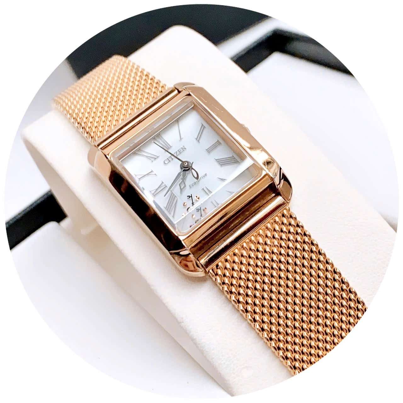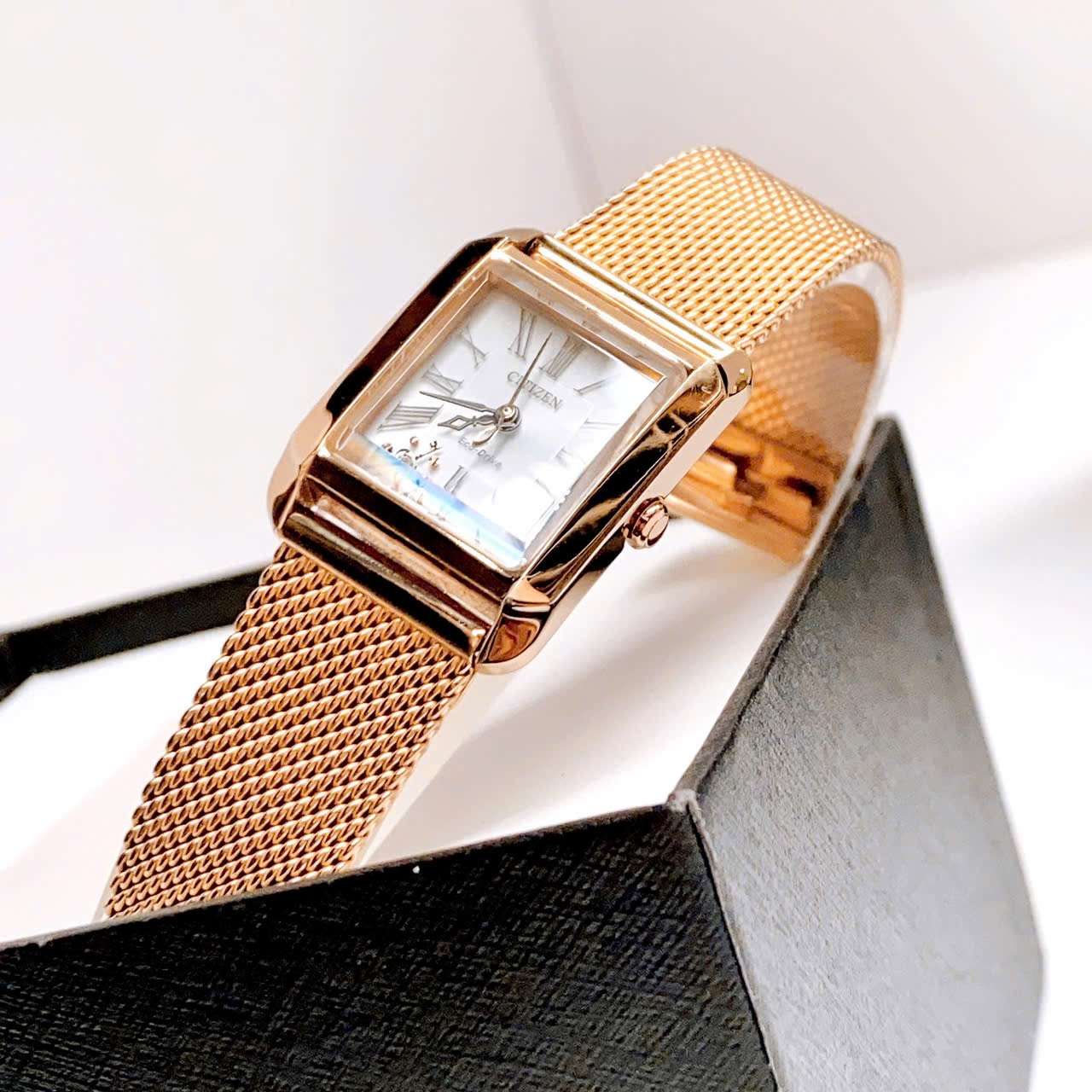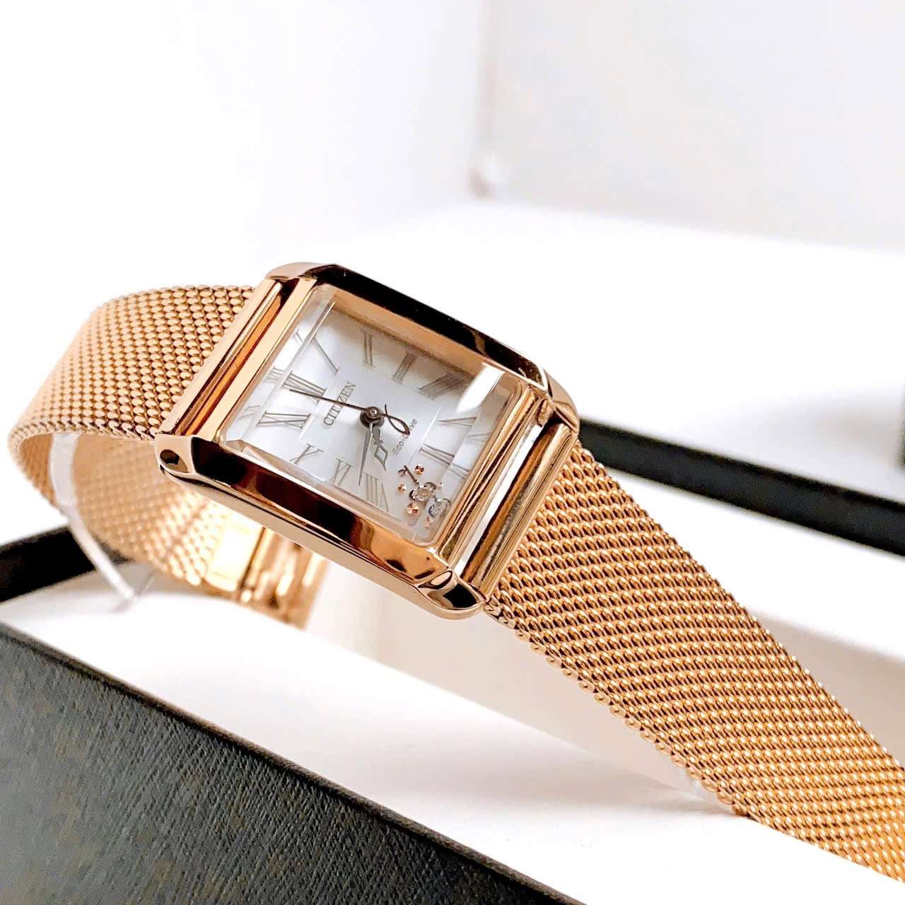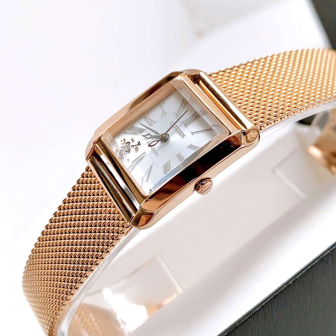 Đồng Hồ Nữ Citizen EW5593-81D Eco Drive Size 22 Rose Gold Mesh Mặt Vuông