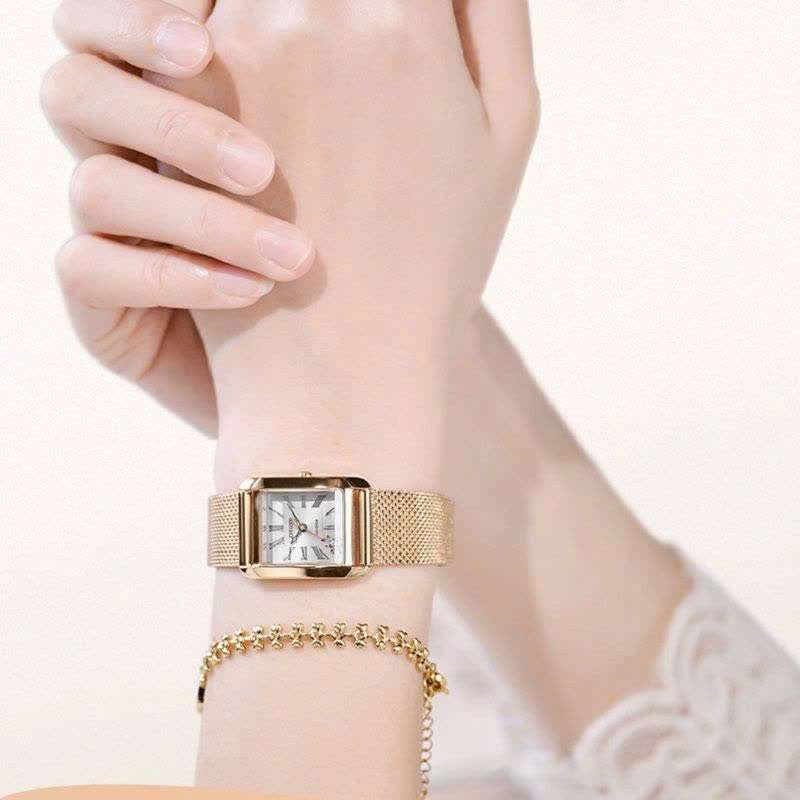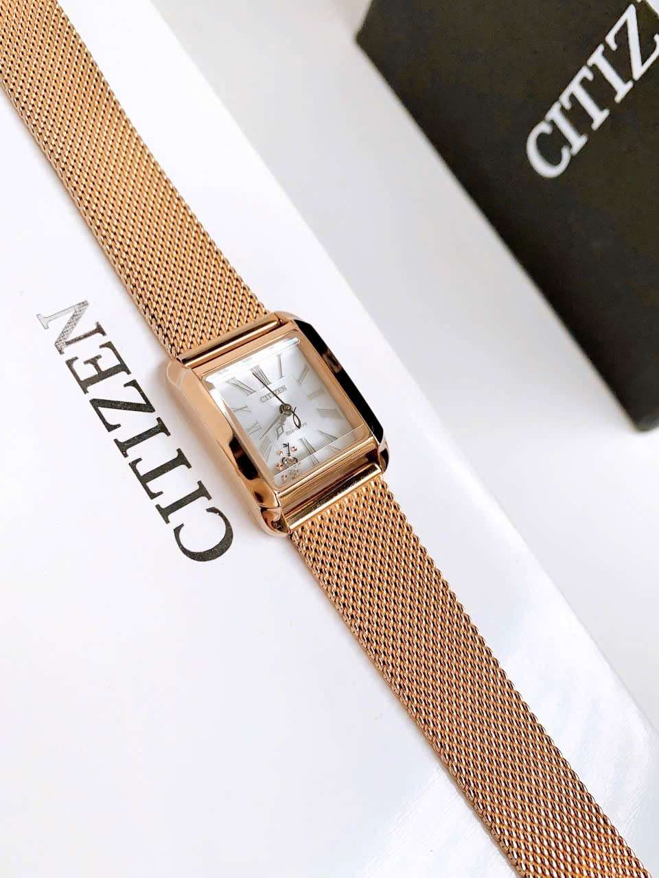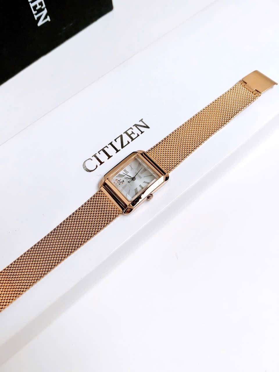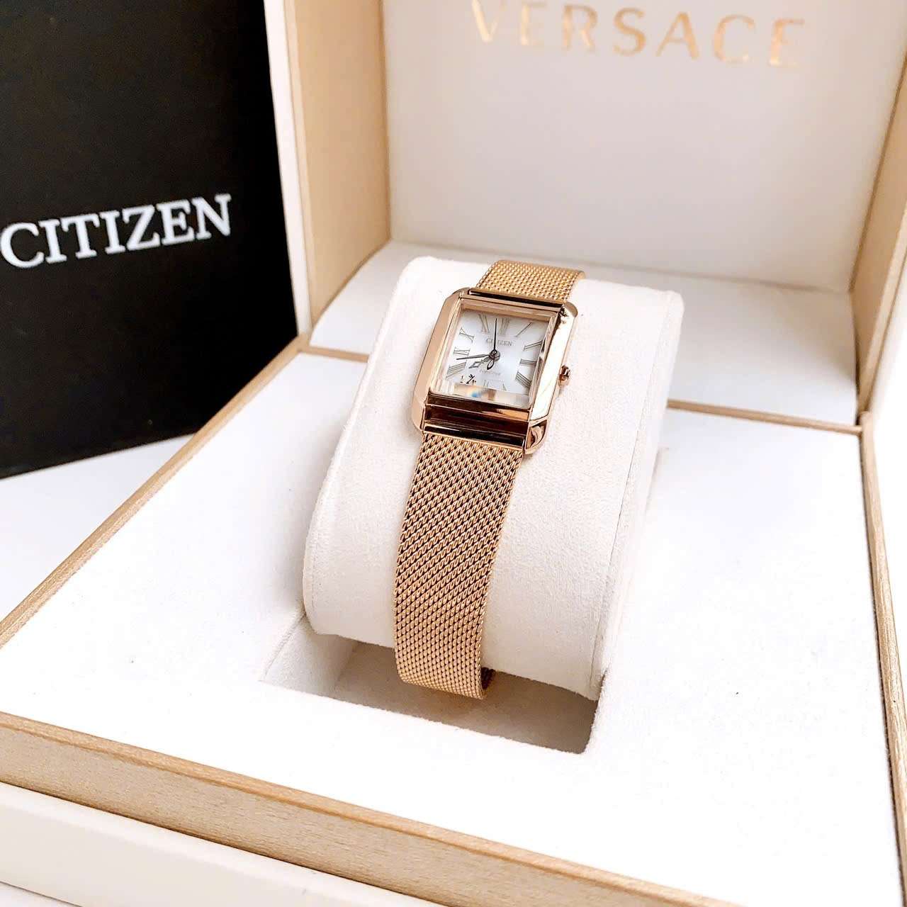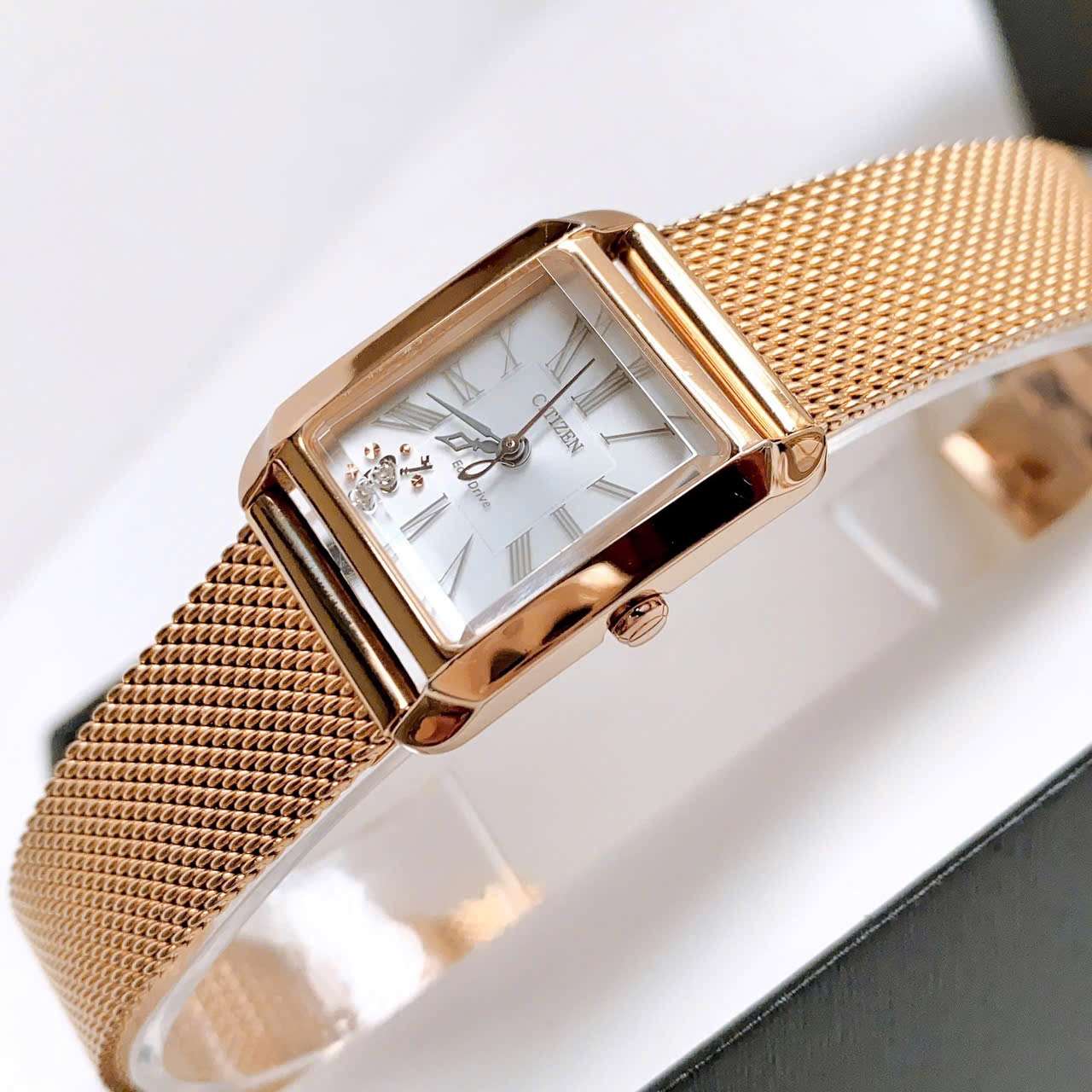 Đồng Hồ Nữ Citizen EW5593-81D Eco Drive Size 22 Rose Gold Mesh Mặt Vuông